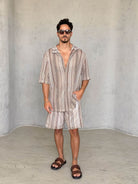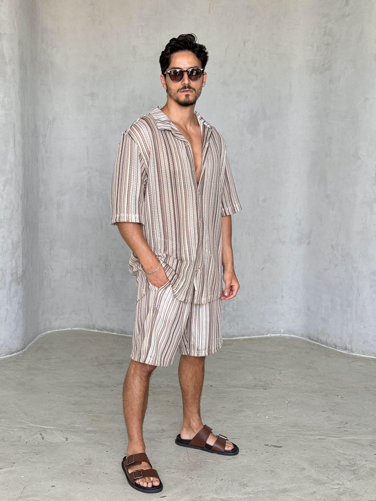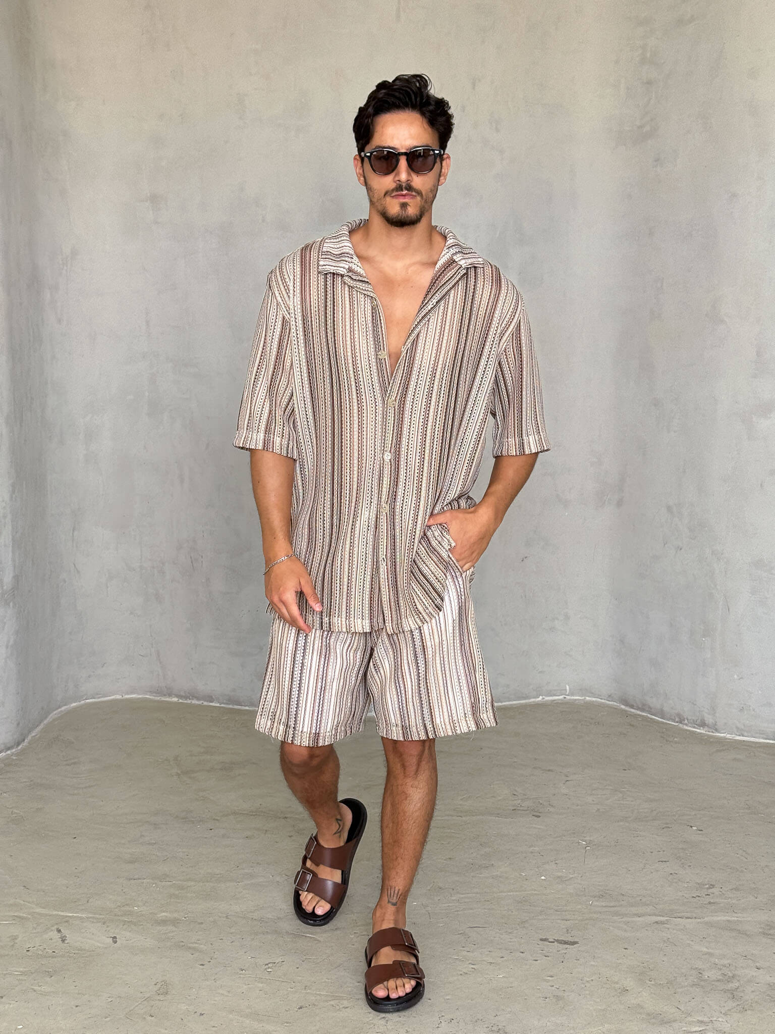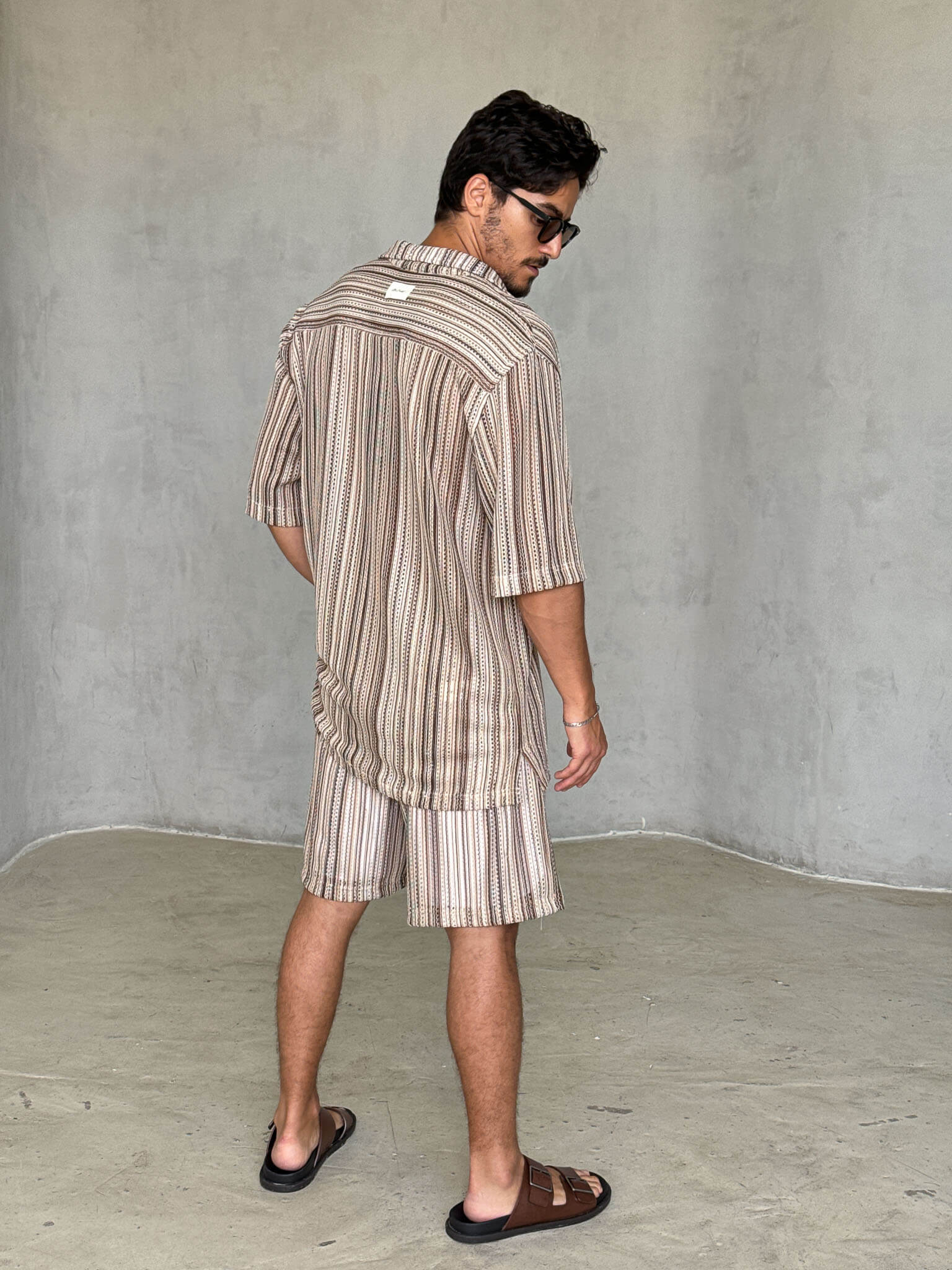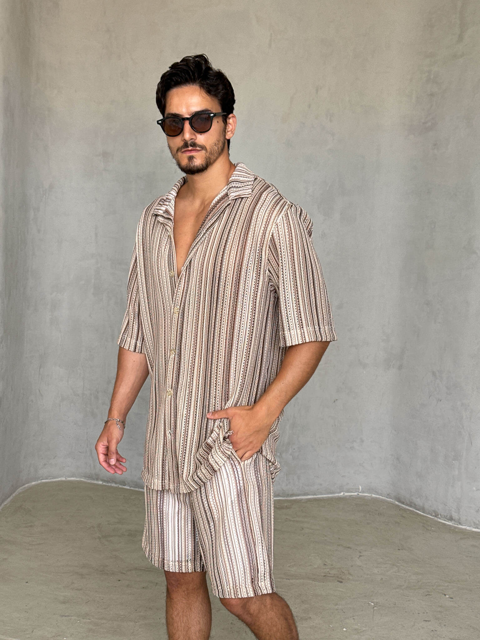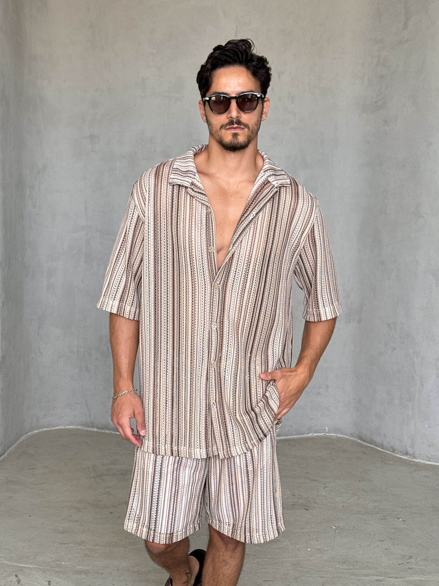 מכופתרת קצרה עשויה מבד קליל ונעים, עיצוב אופנתי עם טקסטורה ,