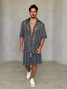 מכופתרת קצרה עשויה מבד קליל ונעים, עיצוב אופנתי עם טקסטורה ,