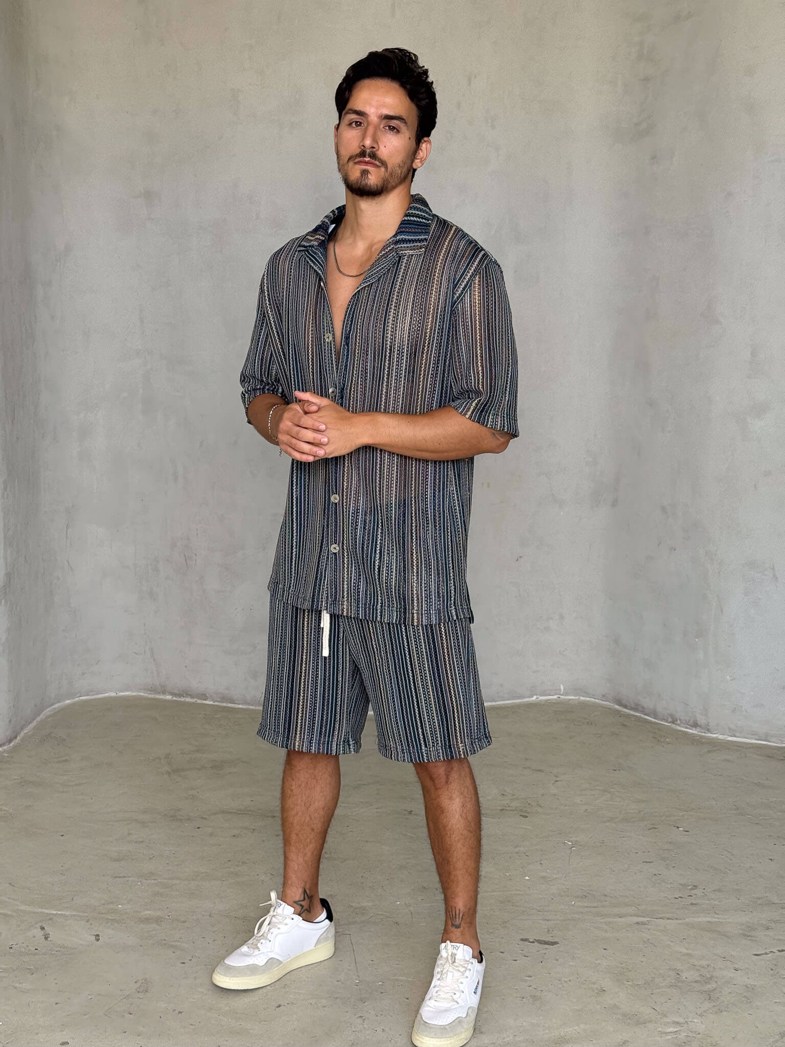 דוגמן בגובה 1.79 משקל 77 לובש מידה L