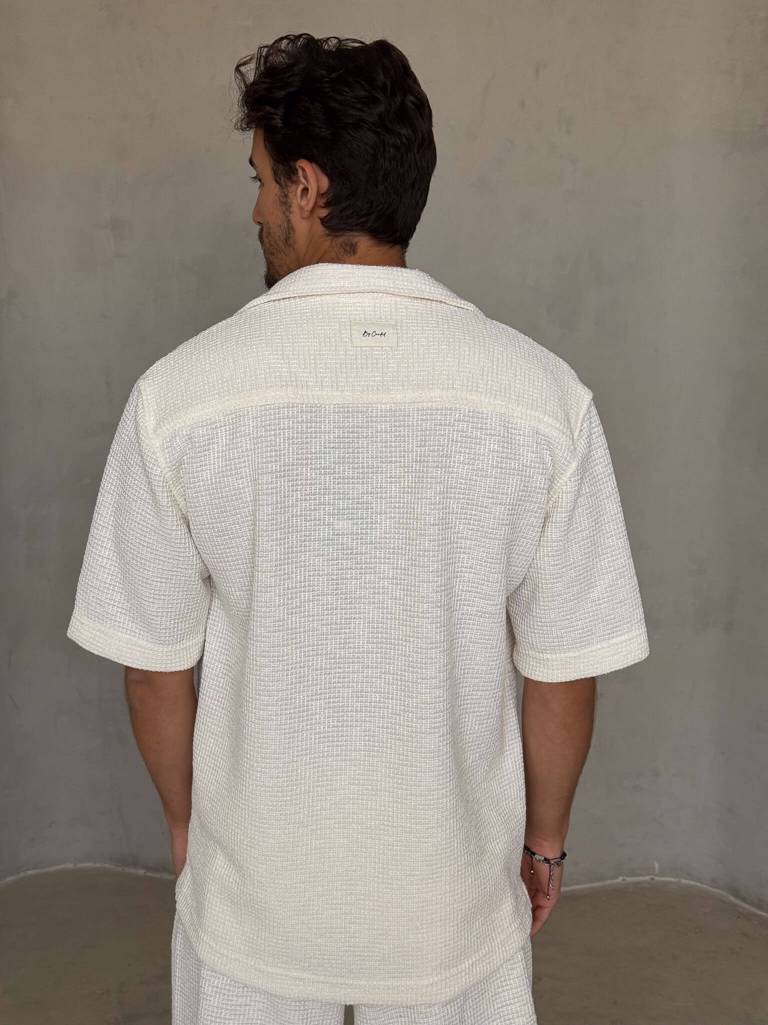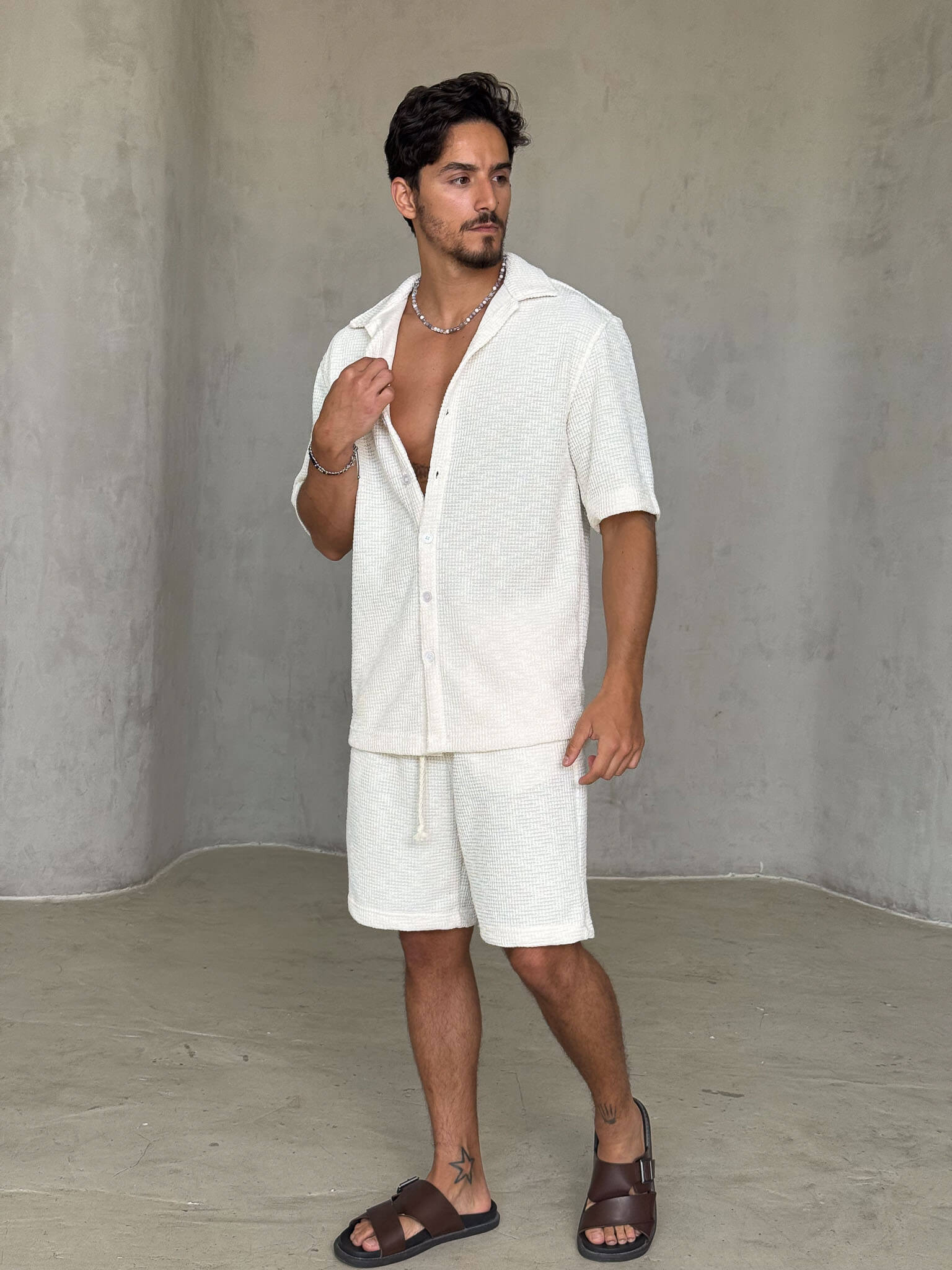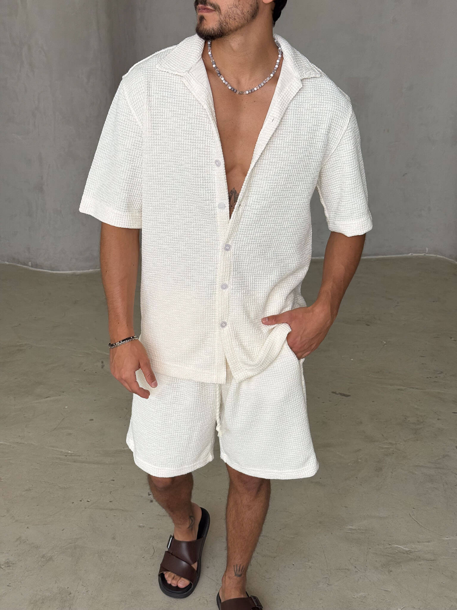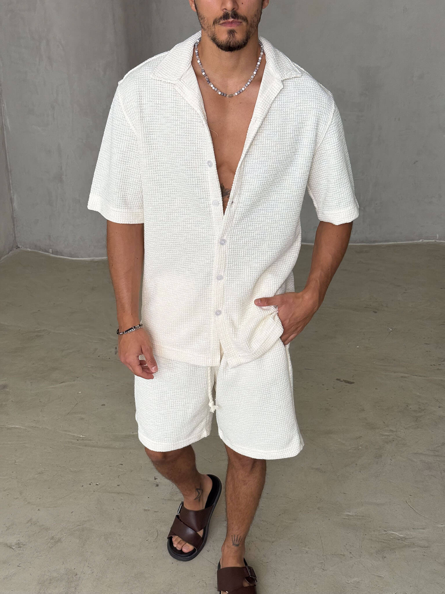 מכופתרת קצרה עשויה מבד קליל ונעים, עיצוב אופנתי עם טקסטורה ,
