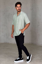 חולצת מכופתרת קצרה בגזרה רחבה, משדרת קלילות וסטייל לא מתאמץ.