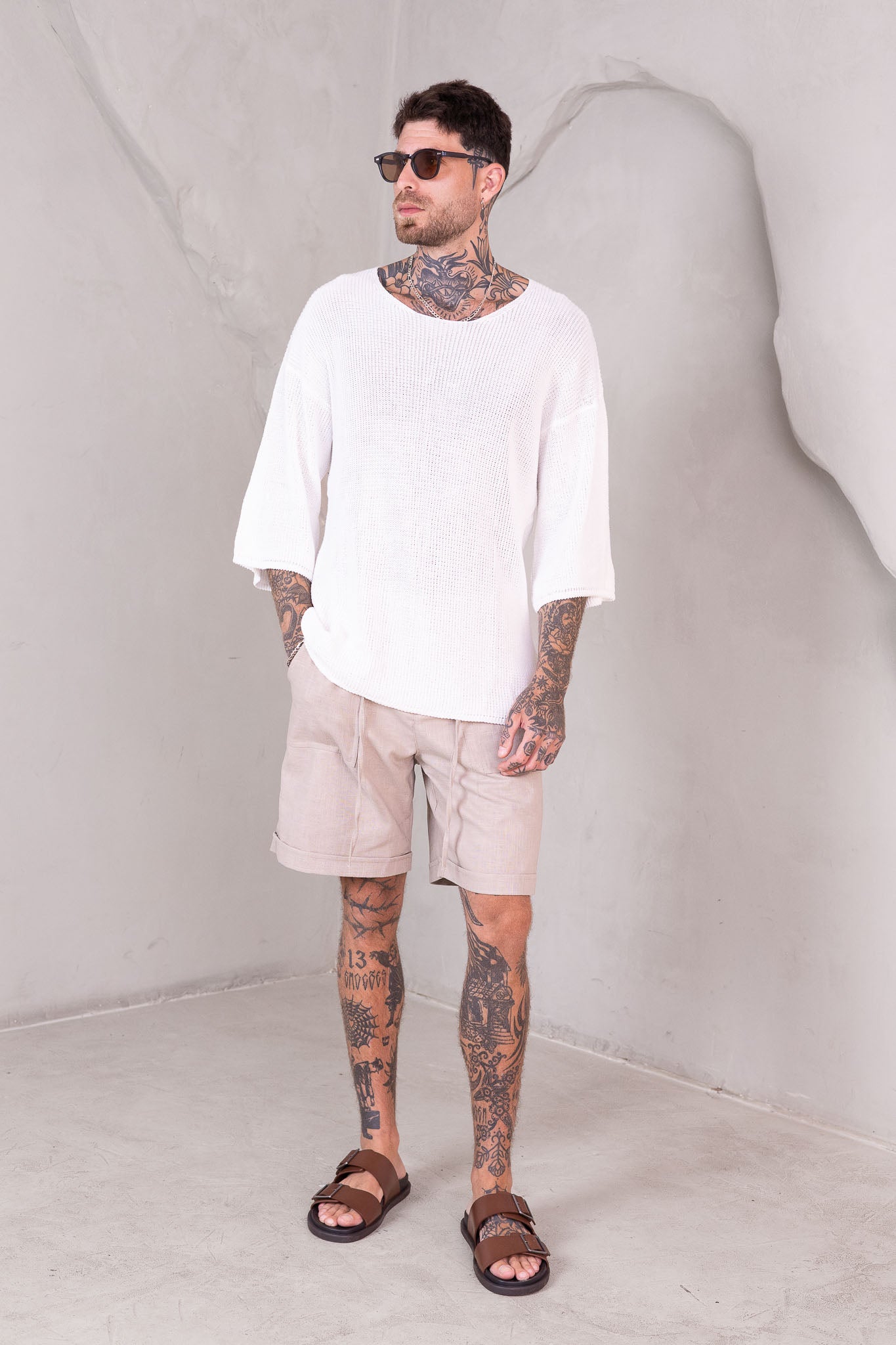 הדוגמן בגובה 1.79 שוקל 77 לובש מידה M