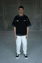דוגמן בגובה 1.84 משקל 70 לובש מידה L חולצת קצרה, עם עיצוב פשוט שמספק מראה אלגנטי ונעים.