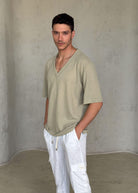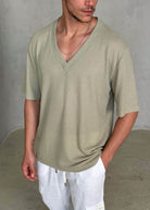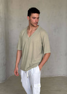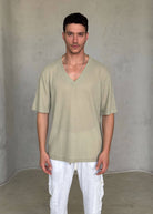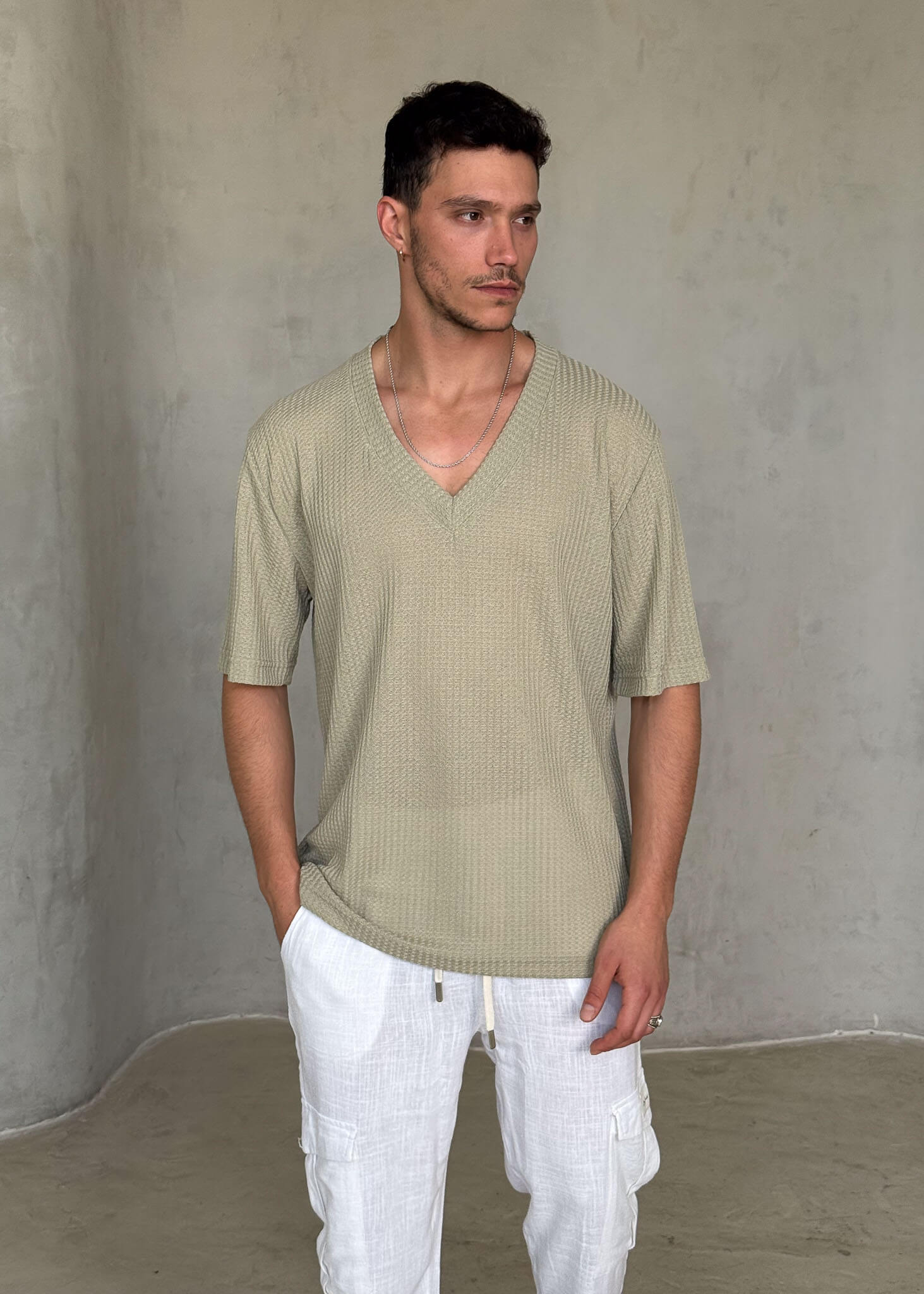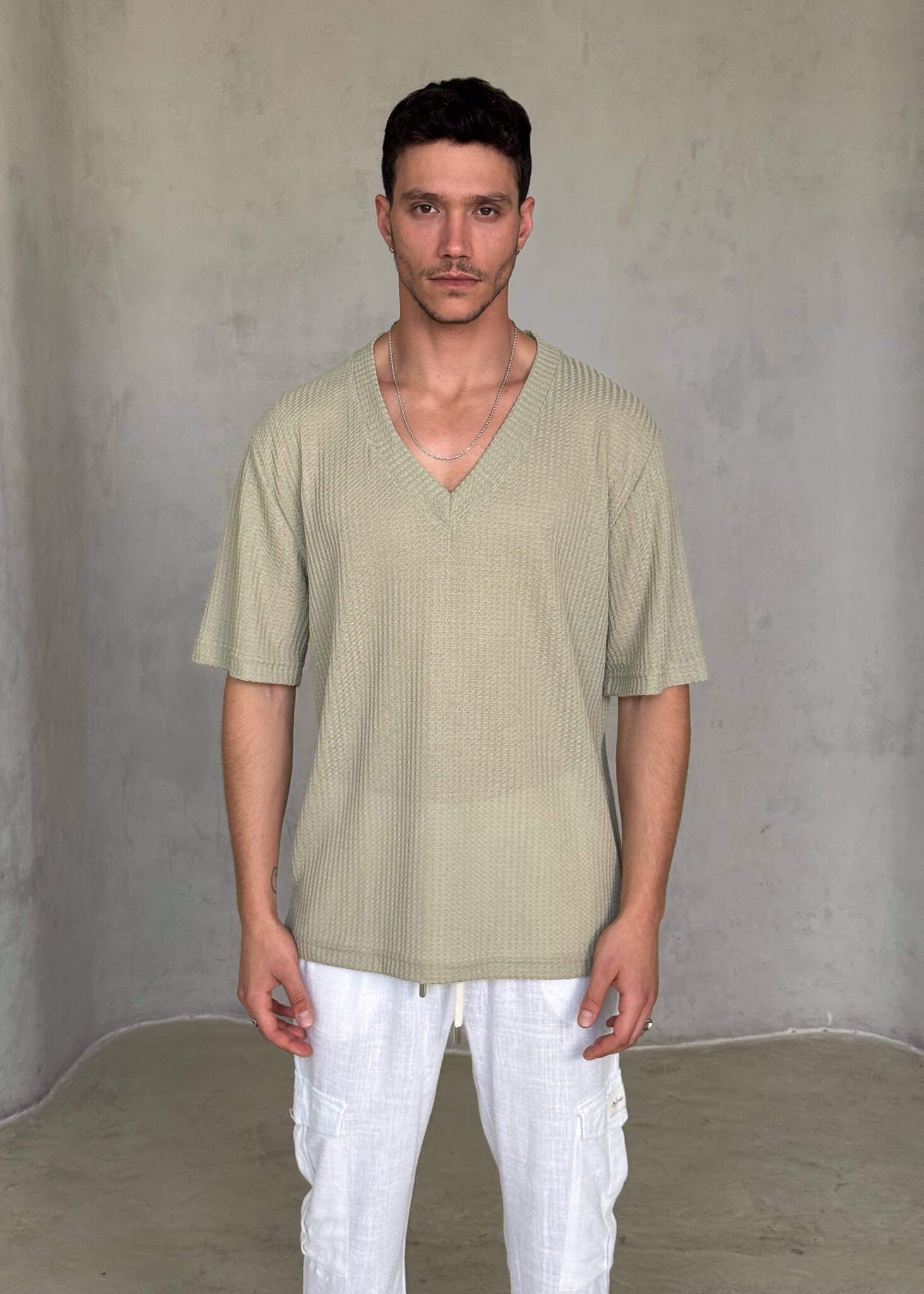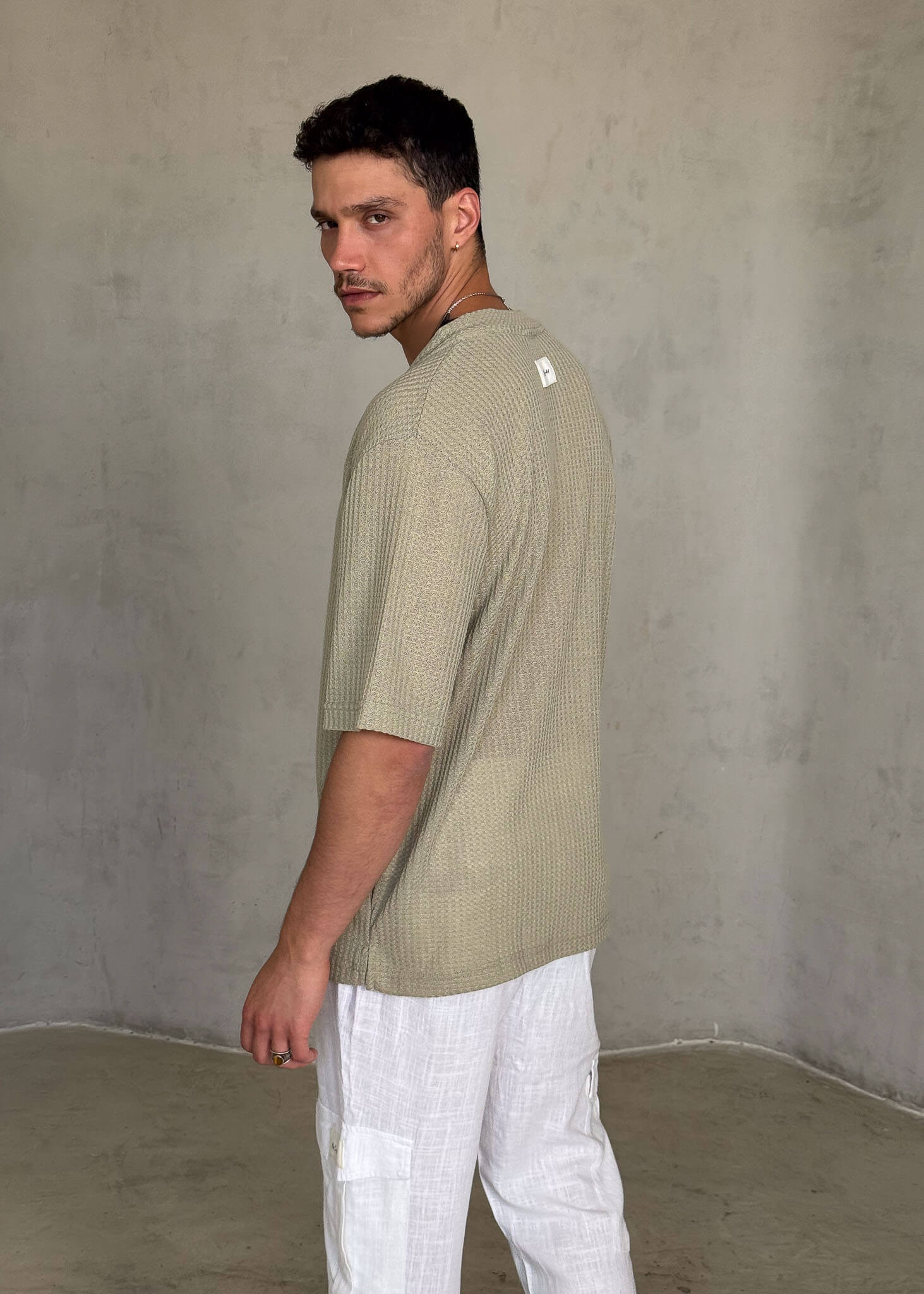 חולצת קצרה אוברסייז, עם עיצוב פשוט ואוורירי שמספק מראה קליל ונעים.