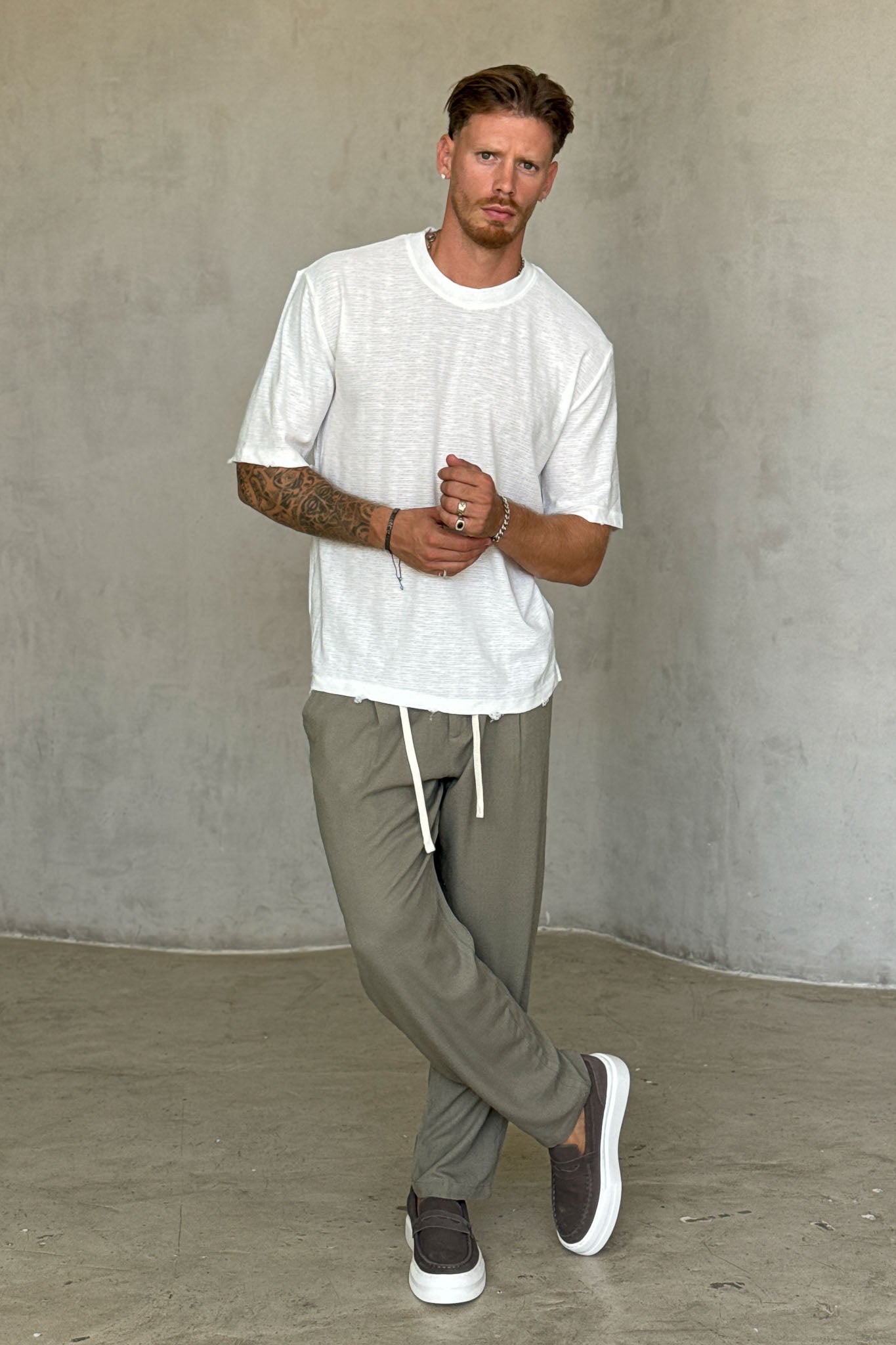 מידות הדוגמן: גובה 1.87, משקל 84 ק"ג, לובש מידה L
