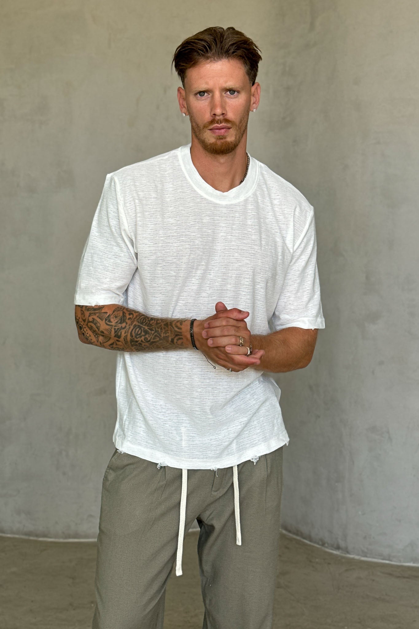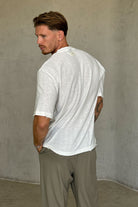 חולצה קצרה בגזרת אוברסייז שמעניקה מראה משוחרר ונינוח, ומתאימה כמעט לכל הופעה. עשויה מבד סריג פשתן נעים ונושם, שמוסיף טאץ’ אלגנטי גם ללוק יומיומי.