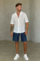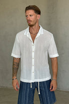 חולצת מכופתרת קצרה בגזרת סופר אוברסייז – משוחררת, נושמת ועם לוק מדויק.