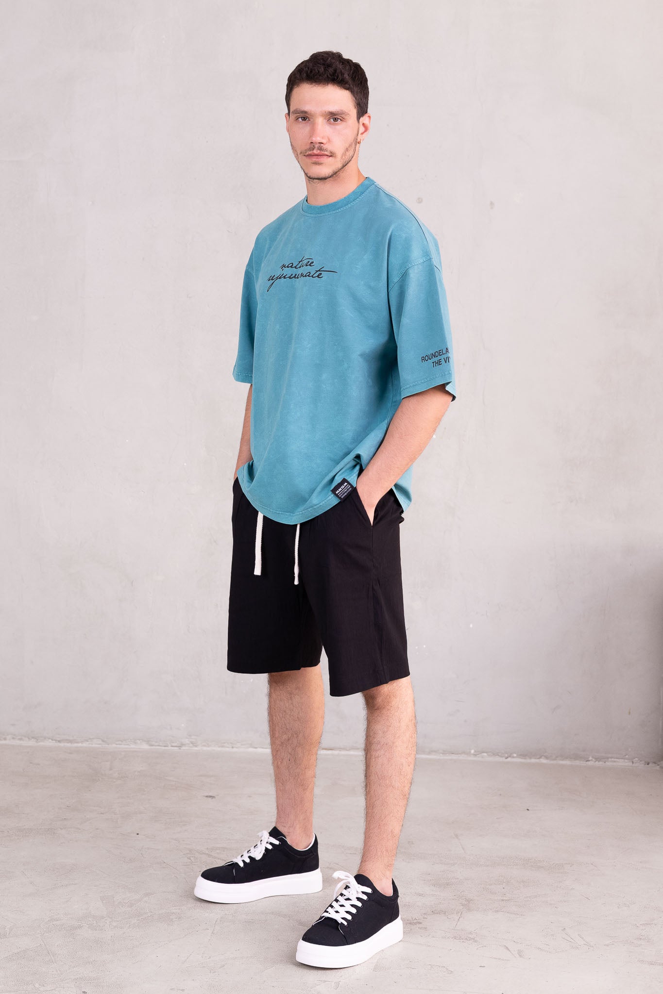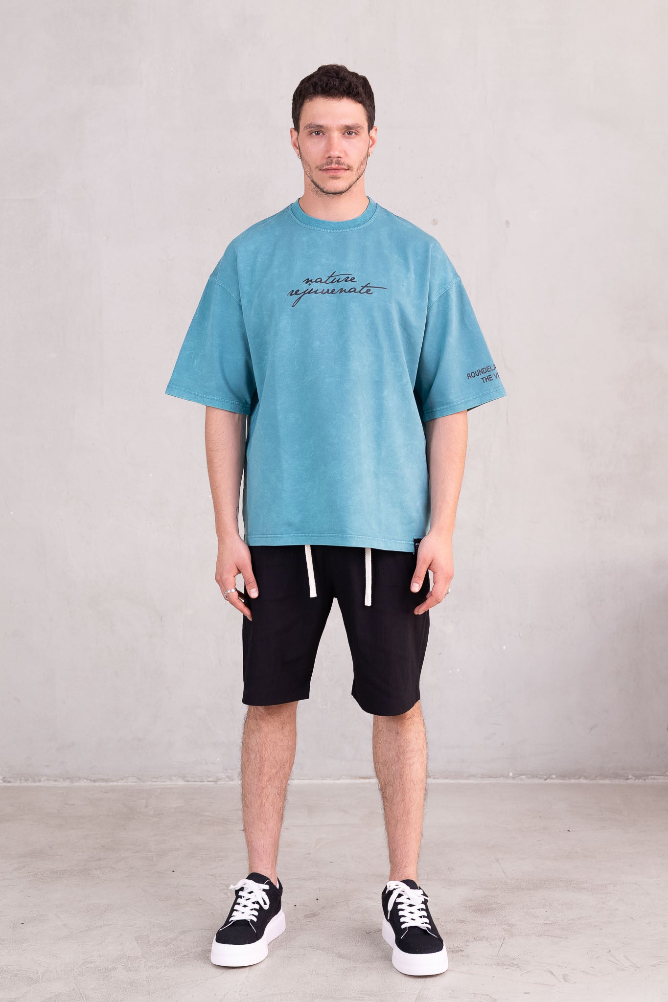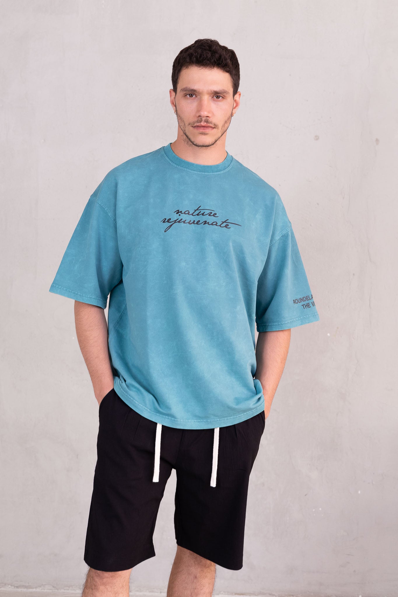 חולצה קצרה אוברסייז -Roundelay (טורקיז)