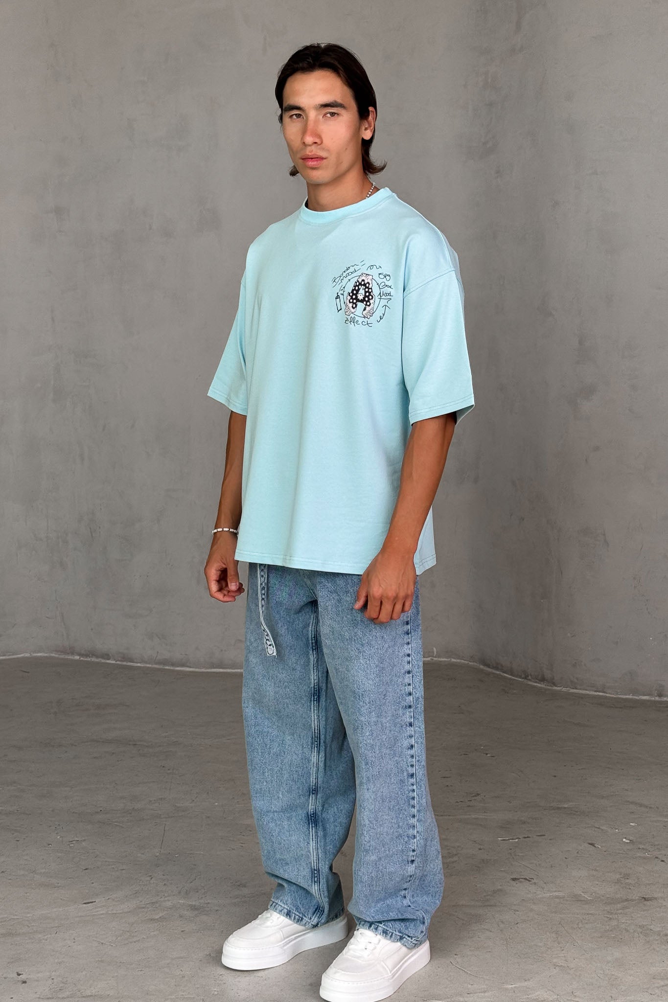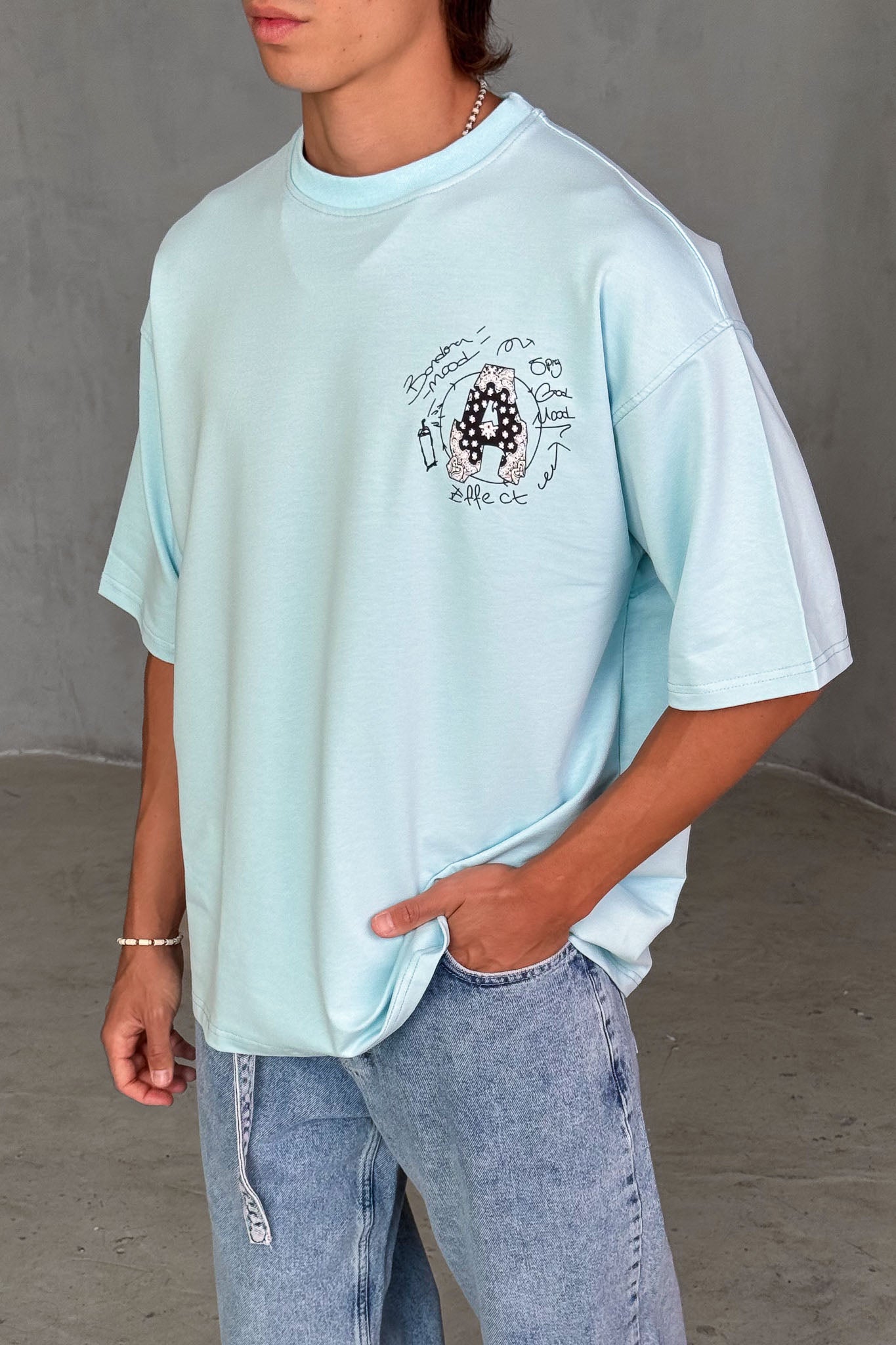 חולצת אוברסייז פרינט - Effect (תכלת)