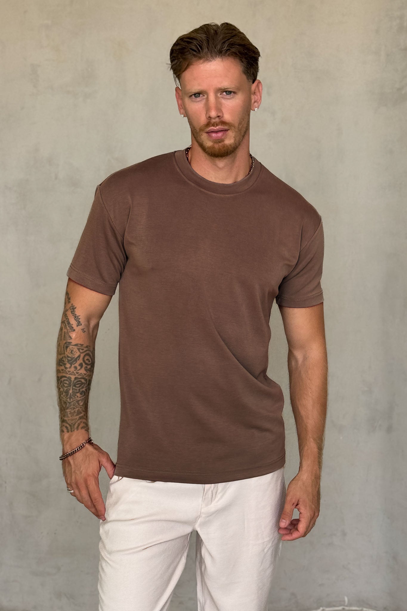 חולצת בייסיק קלאסית מבד נעים ורך שנצמד לגוף בצורה מושלמת. מתאימה לכל מראה יומיומי – מהליכה בעיר ועד ערב רגוע. הגזרה הפשוטה והנקייה מאפשרת שילוב קל עם כל פריט בארון, והיא חובה לכל מי שאוהב לוק מינימליסטי אך מלא סטייל.