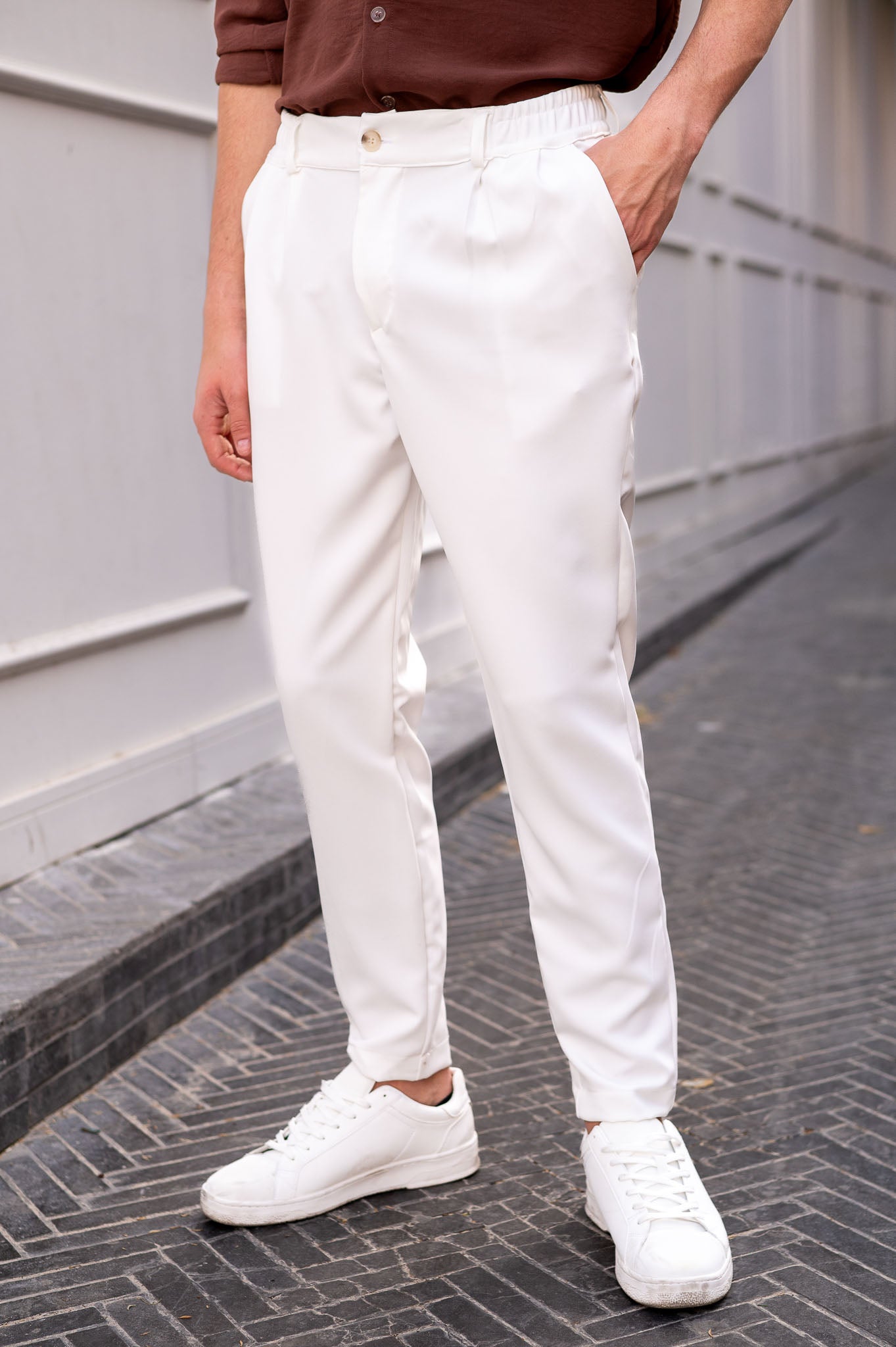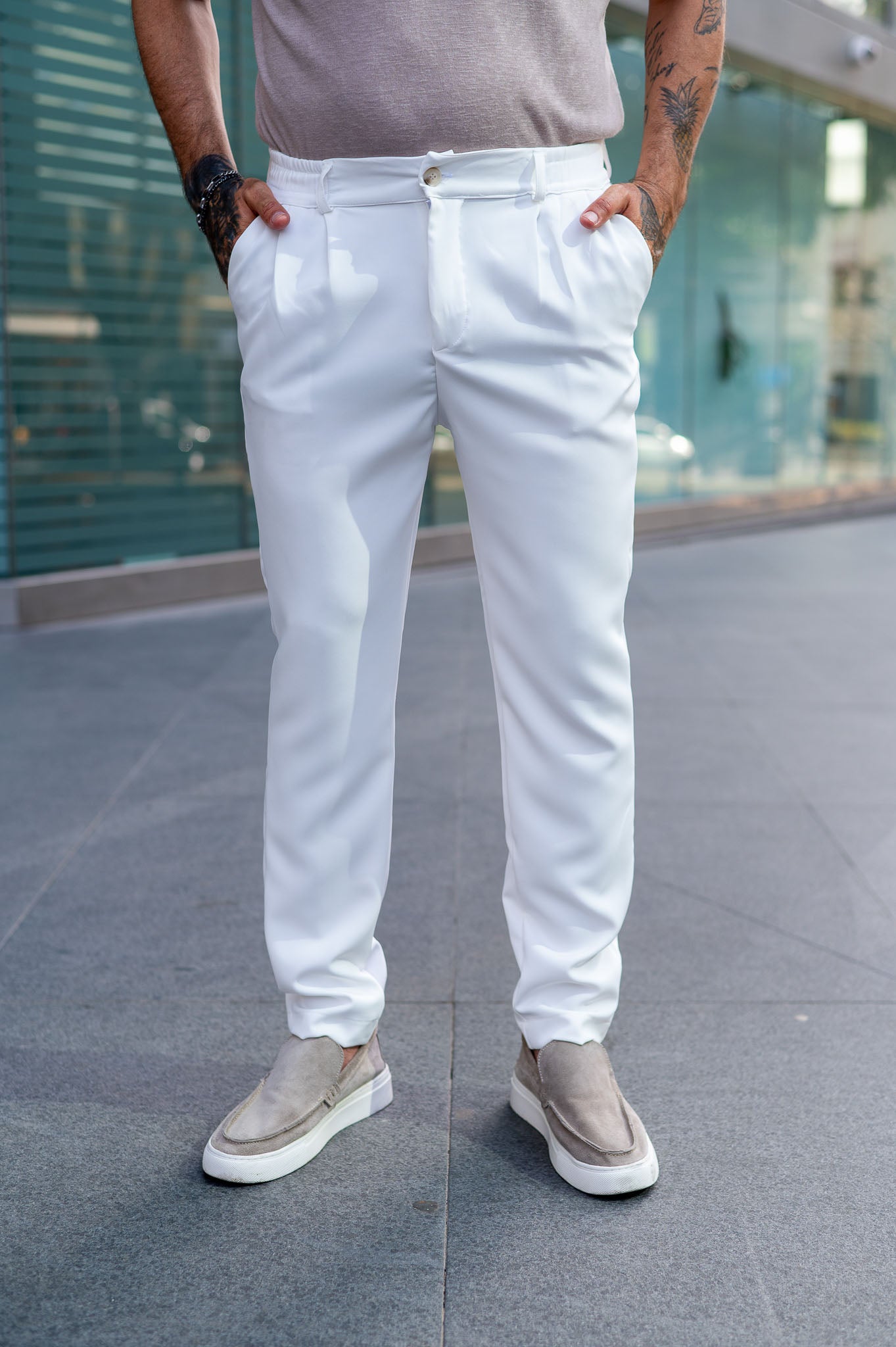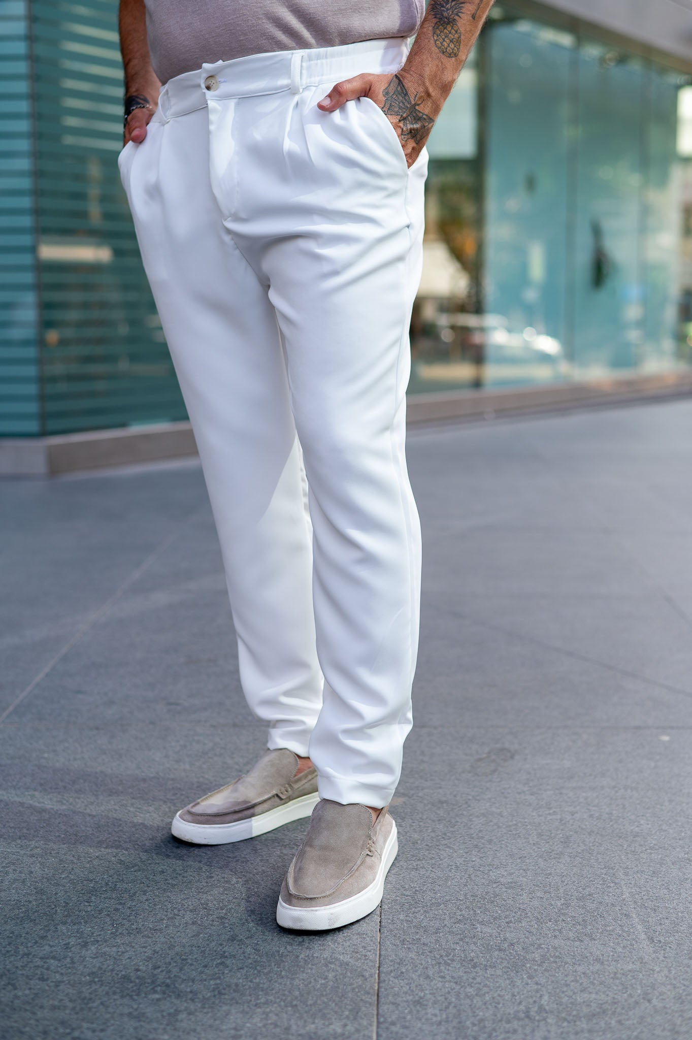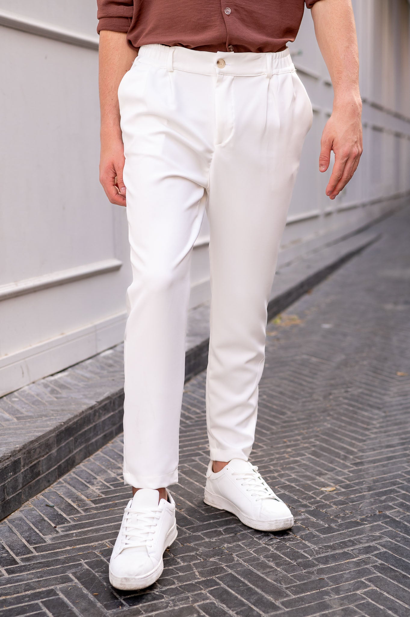 מכנס ספורט אלגנט בגזרת רגולר - Hack (לבן)