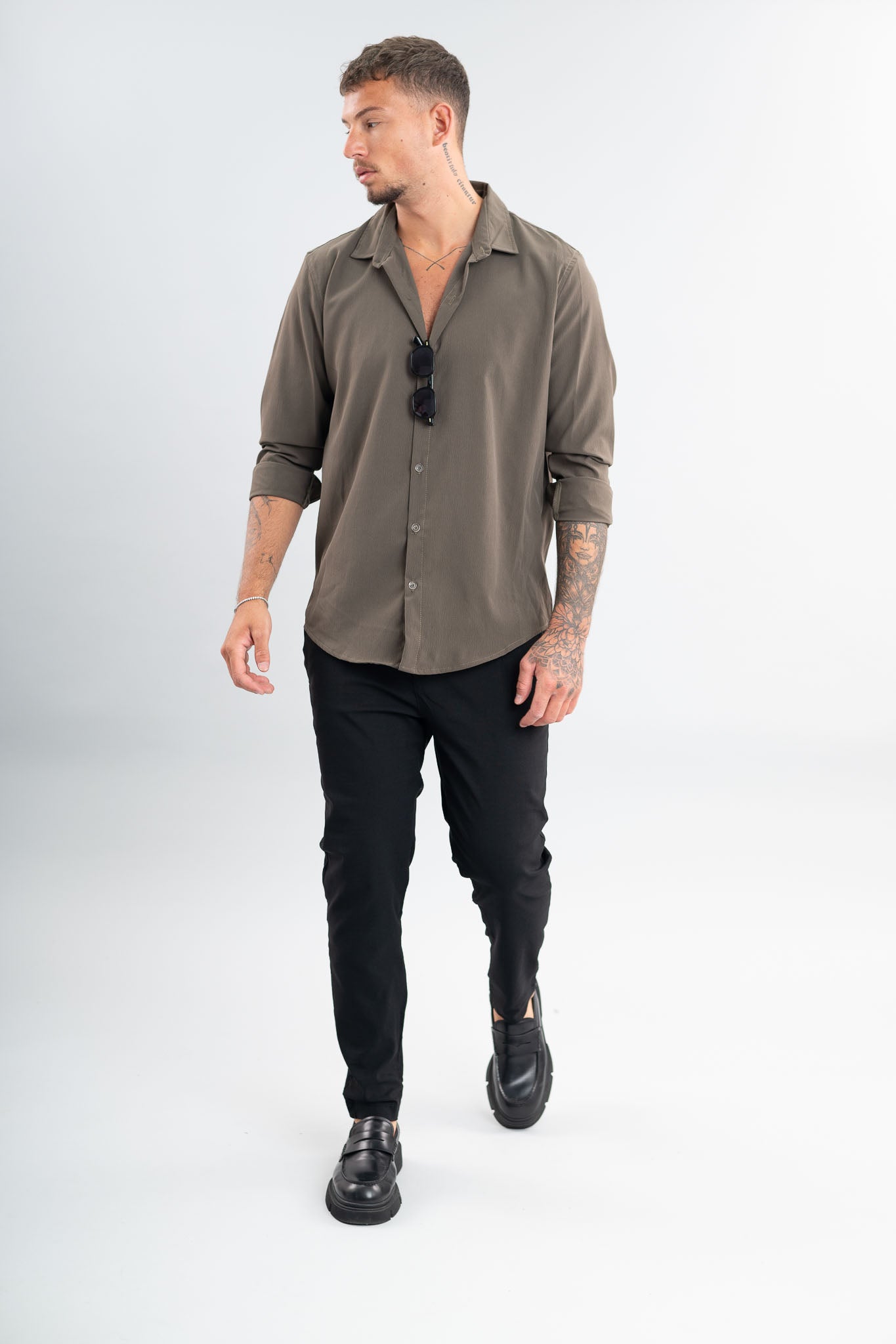 מכופתרת ארוכה בגזרת SLIM מבד פוליאסטר בשילוב עם לייקרה שנותן תחושת נעימות על הגוף