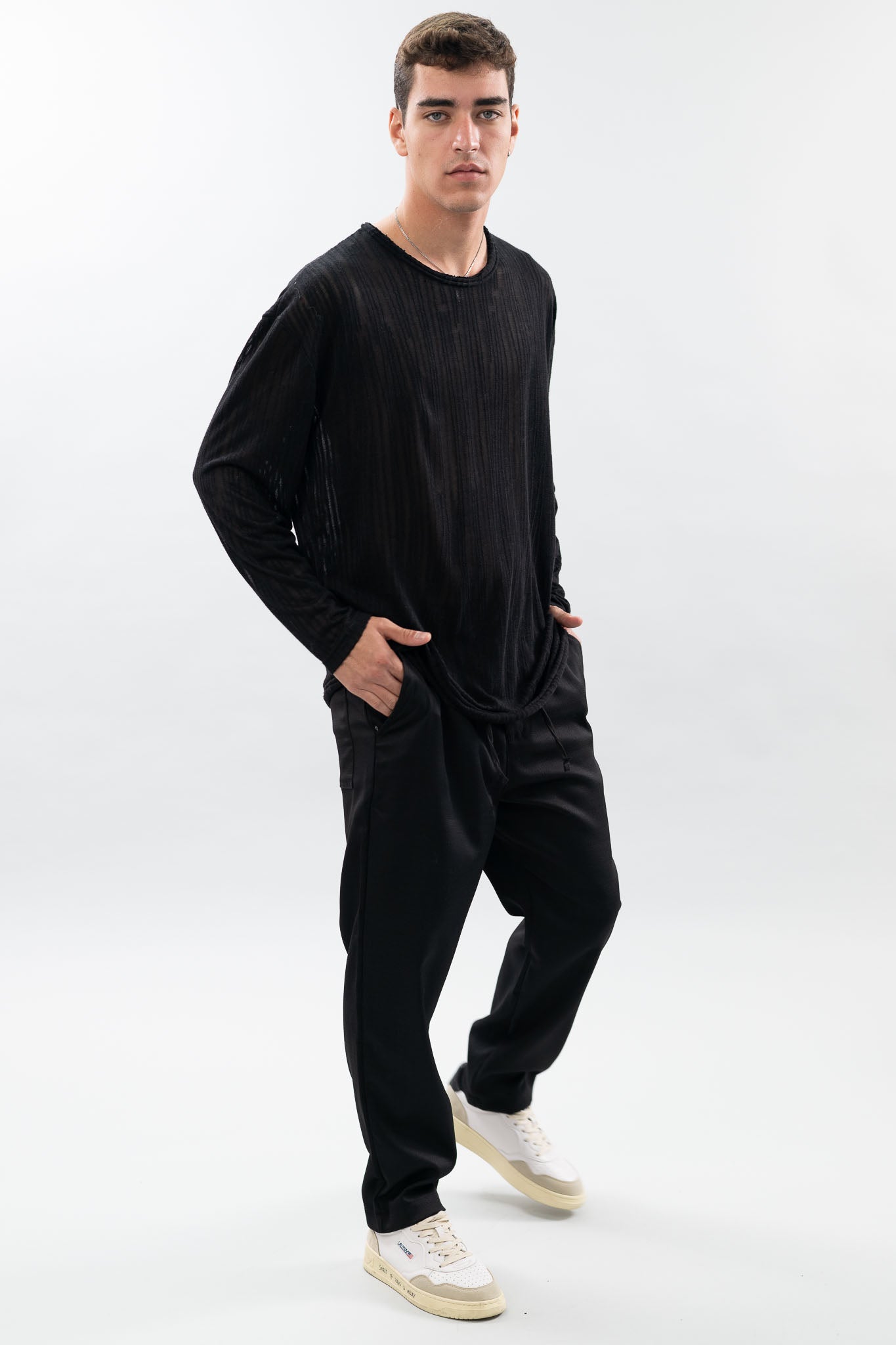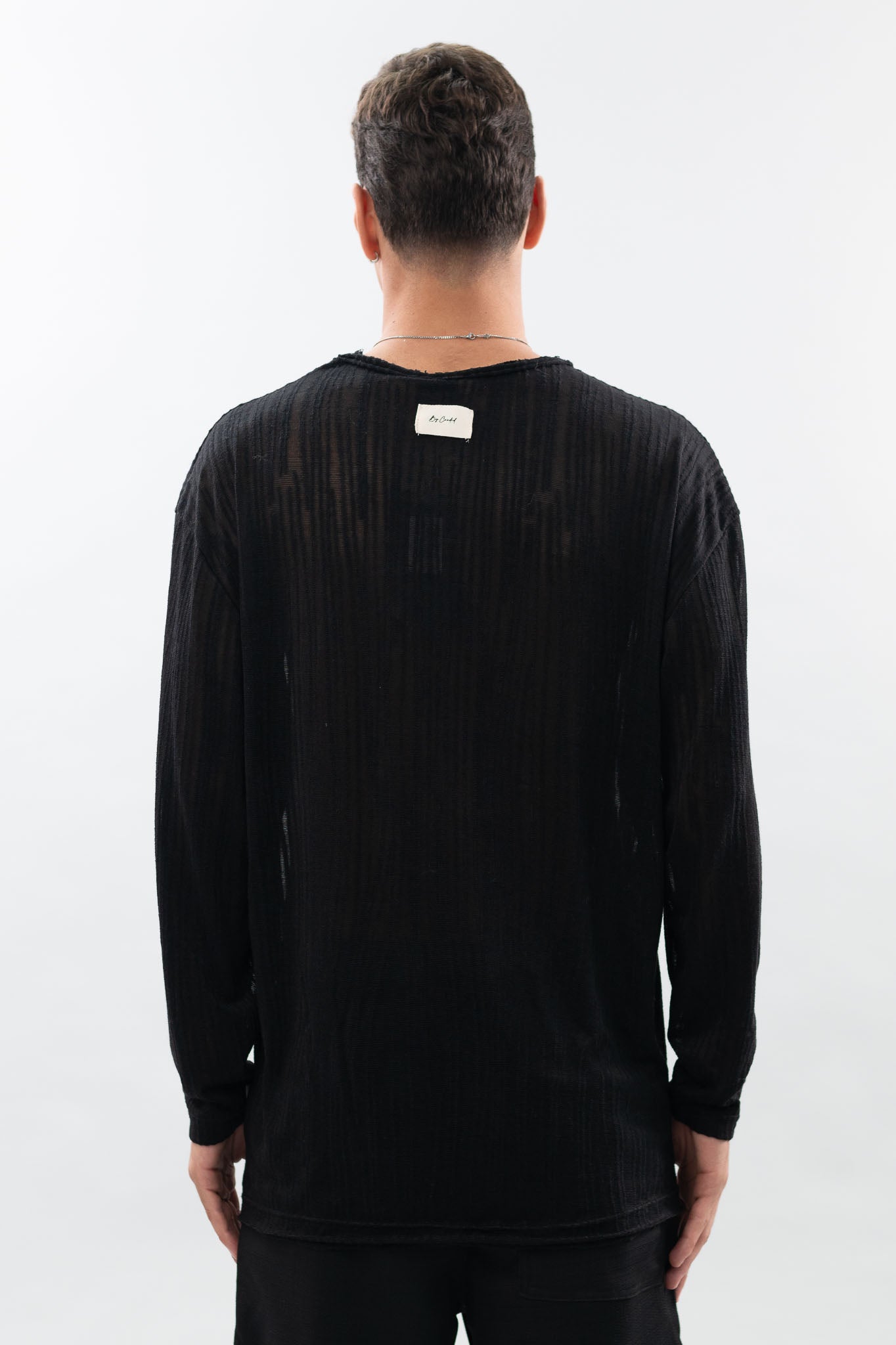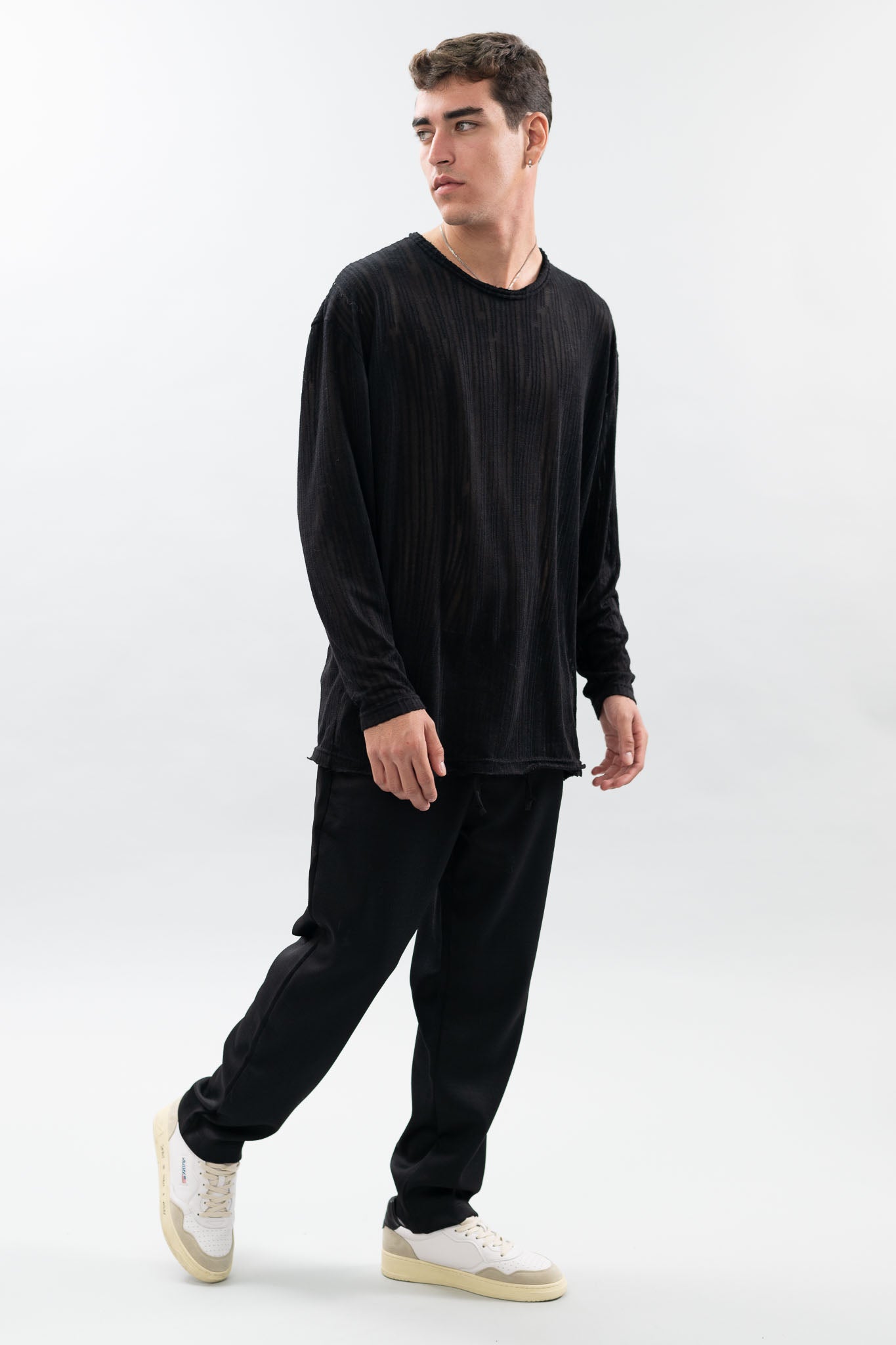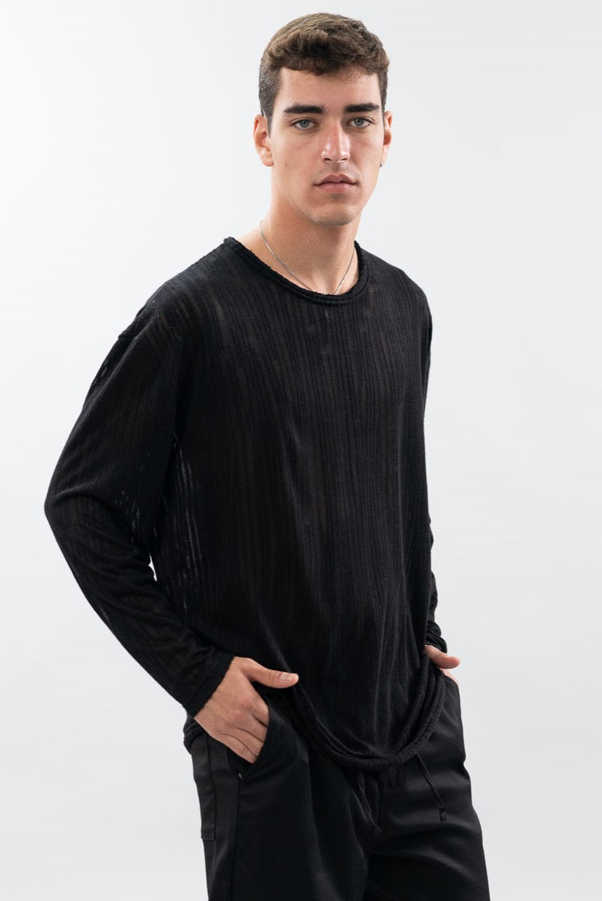 טי שרט עם שרוולים ארוכים, עשויה מבד סריג עם טקסטורה מיוחדת.