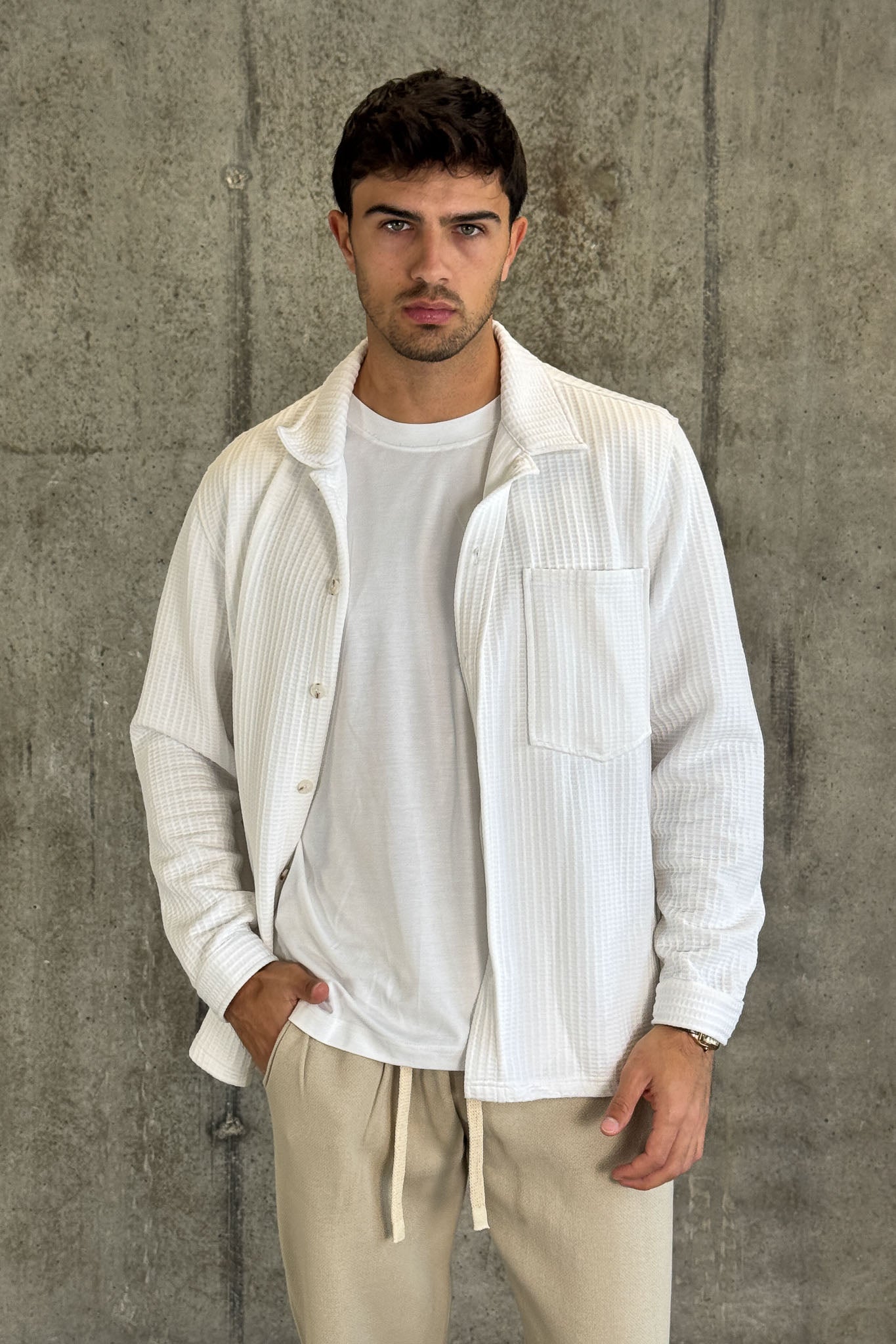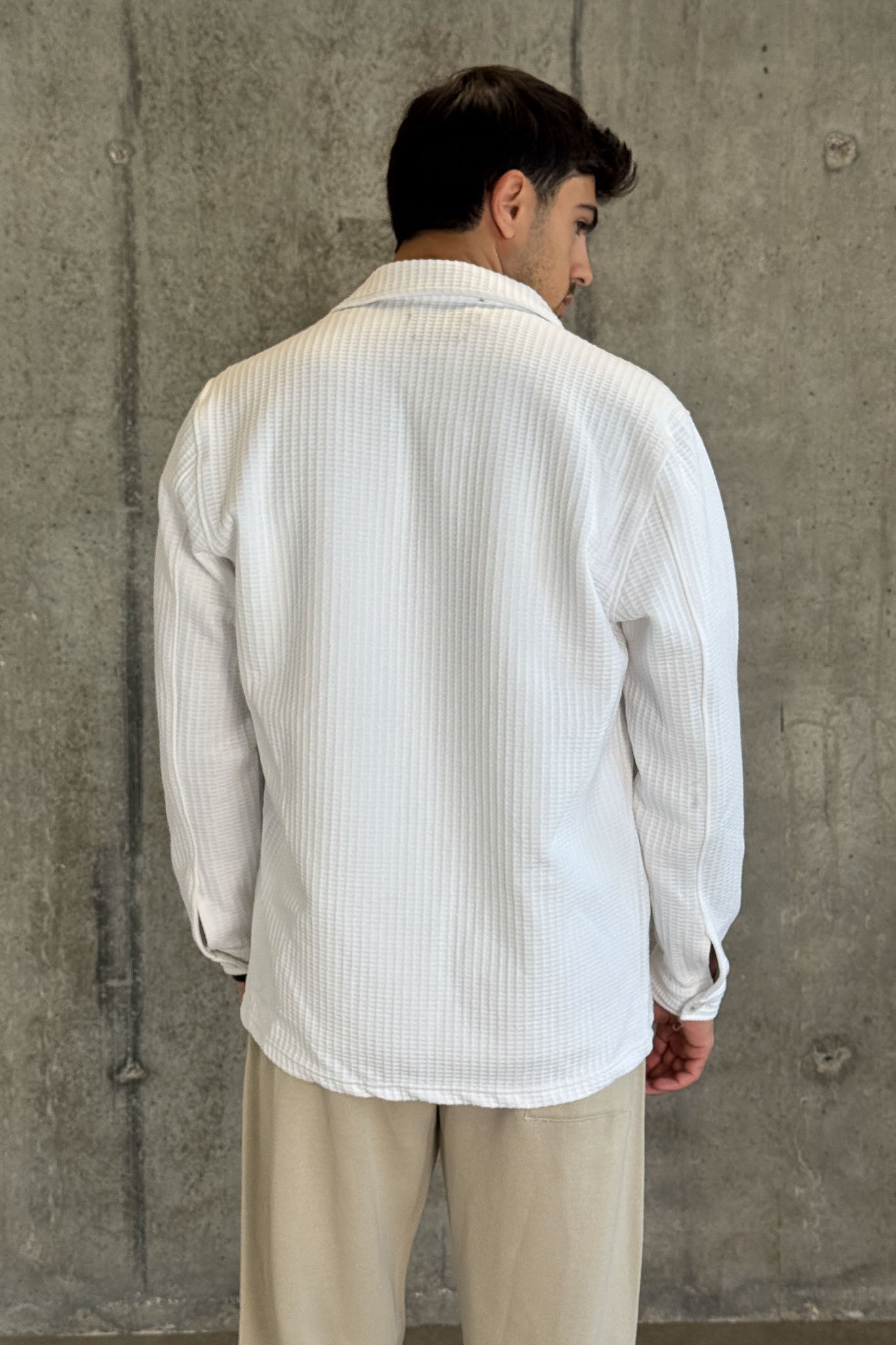 עליונית קלילה מבד וואפל בטקסטורה עדינה, משלבת מראה נקי ומודרני עם נוחות יומיומית. מתאימה לשכבה מעל טי או גופייה ומשדרגת כל הופעה בקלות.