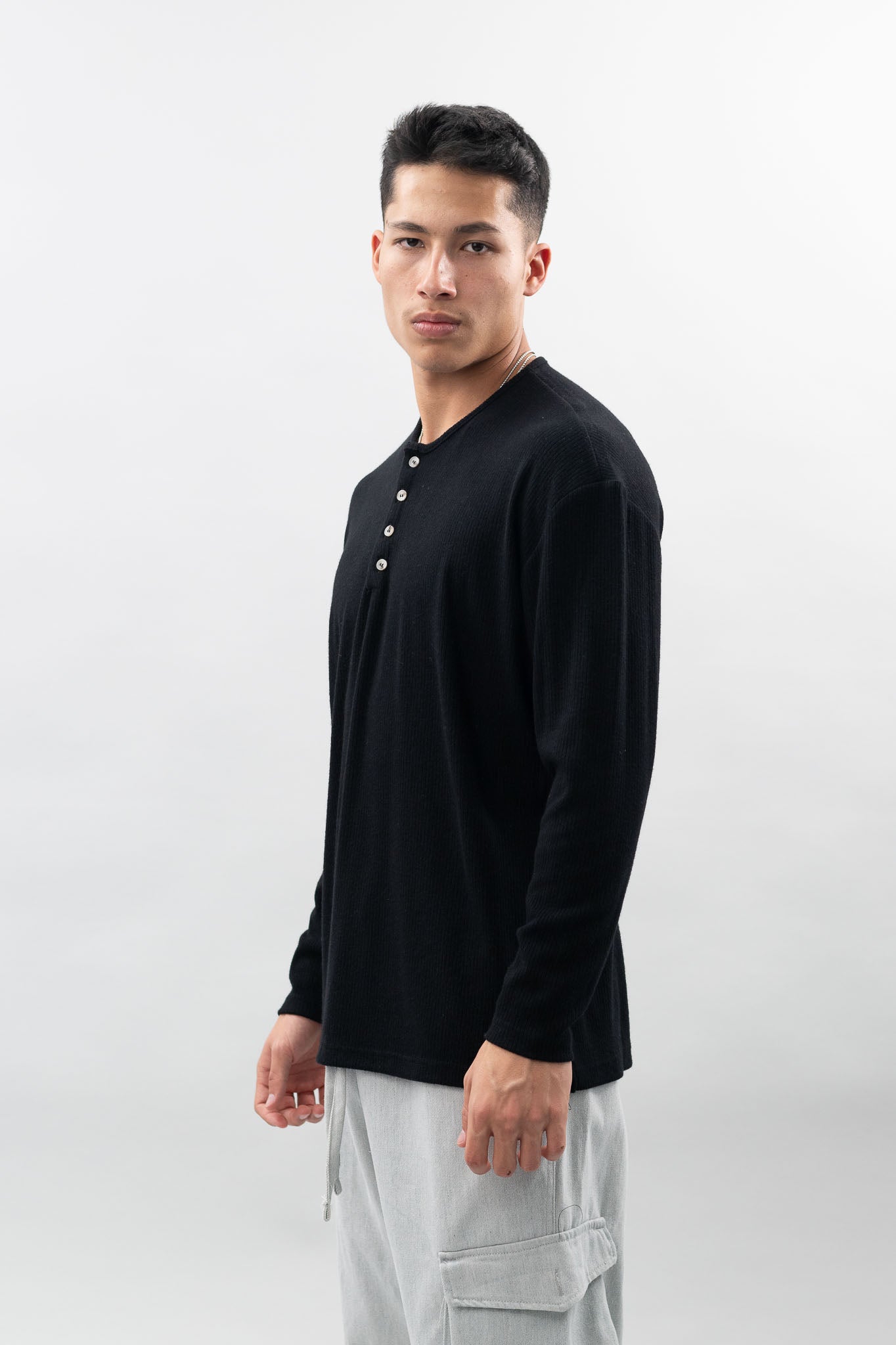 טי-שירט עם שרוולים ארוכים בגזרת אוברסייז, עשויה מבד סריג רך ונעים,שיושבת בצורה מושלמת על הגוף ויוצרת מראה נינוח ומחמיא.
