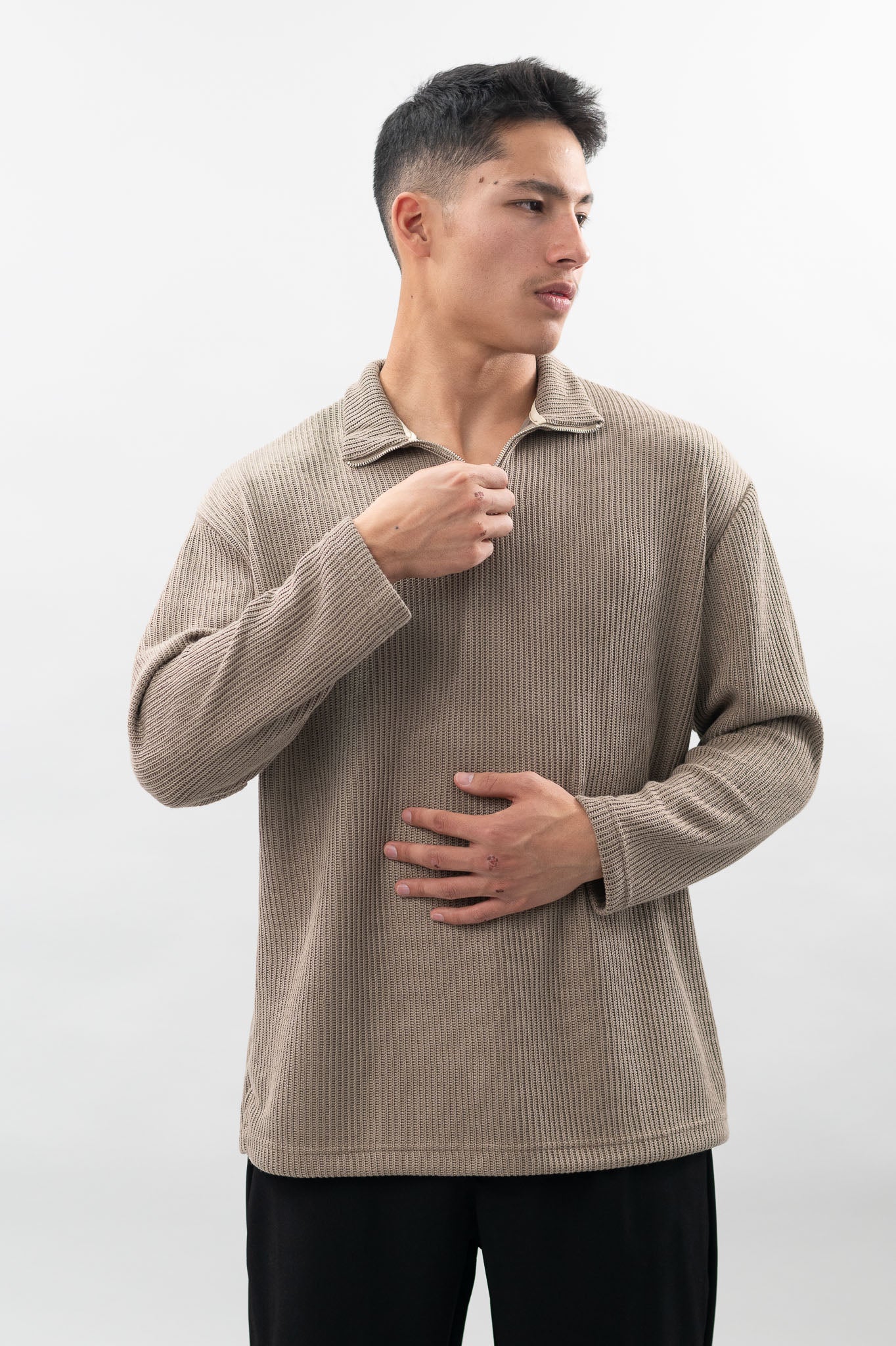 חולצת פולו עם שרוולים ארוכים, עשויה מבד סריג נעים, שיושבת בצורה מחמיאה על הגוף.