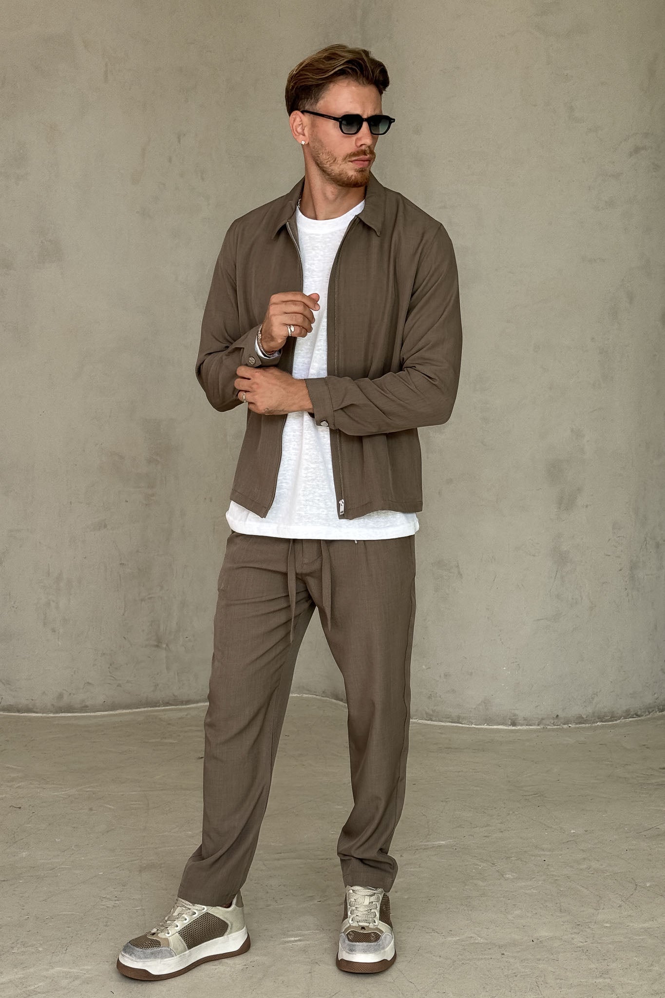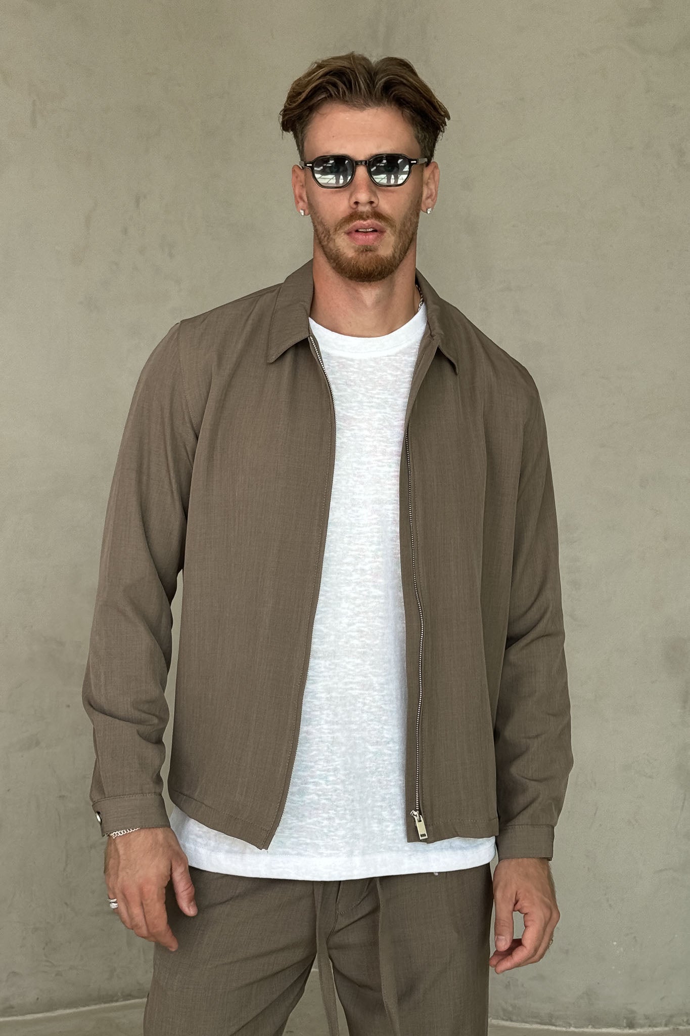 עליונית אלגנטית עם רוכסן מלא, עיצוב מינימליסטי ובד נעים למגע.