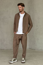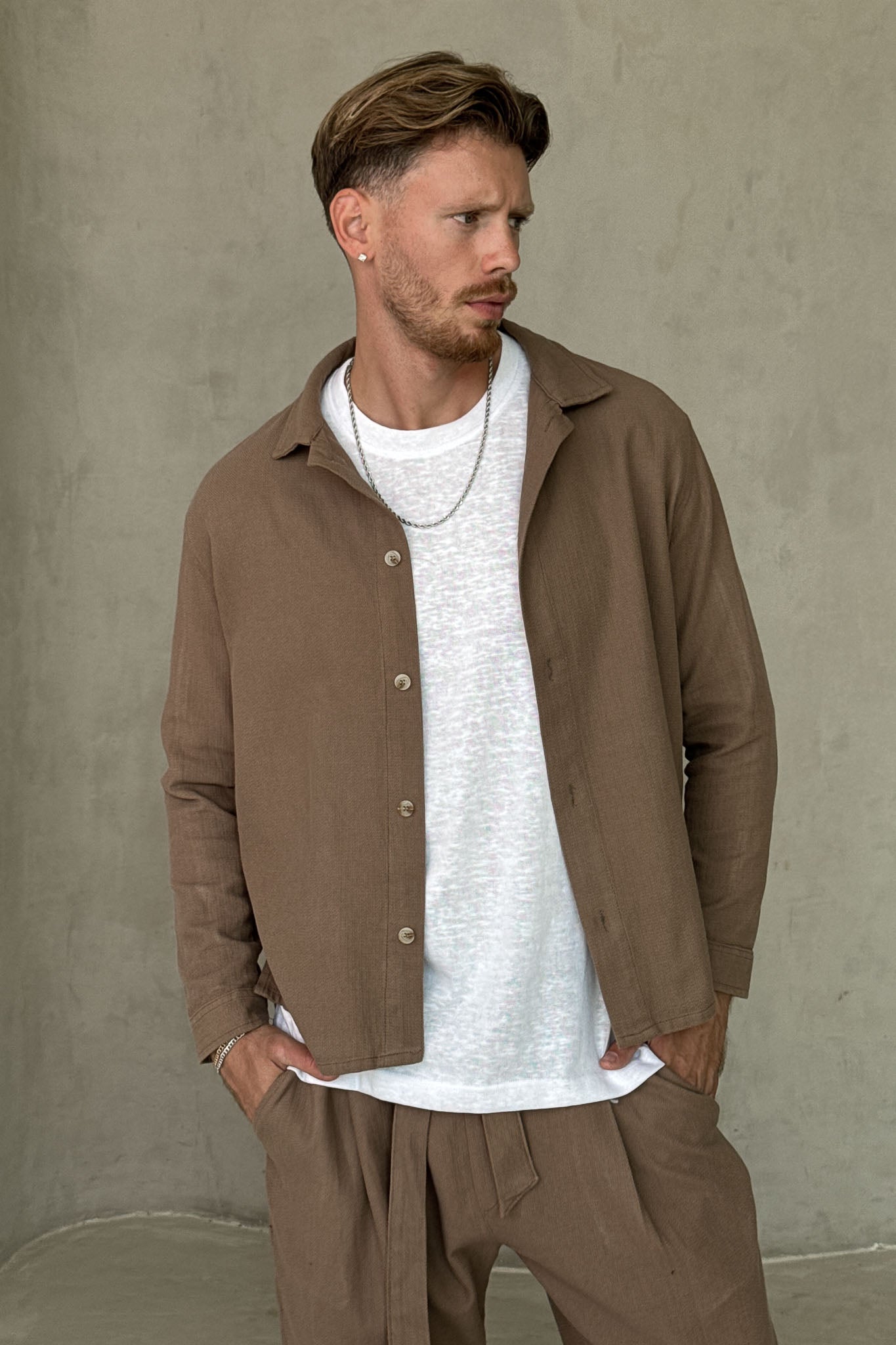 עליונית חומה עם כפתורים בעיצוב מינימליסטי ונקי, חלק מסט מלא.