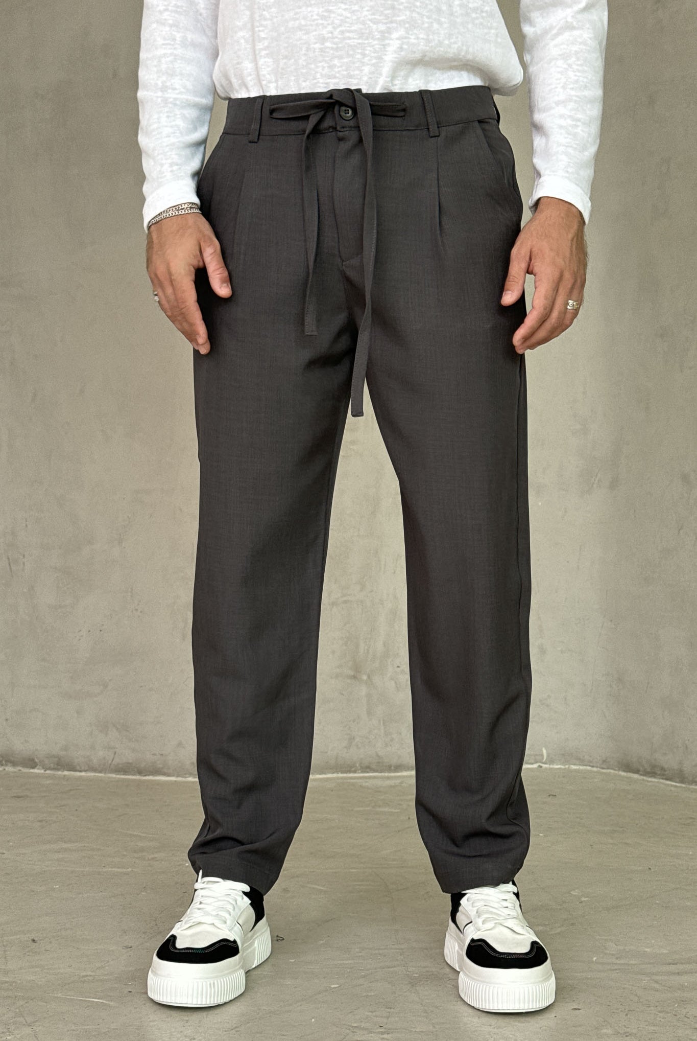 מכנס אלגנטי שחור עם קשירת מותן עדינה שמעניקה מראה נקי ויוקרתי.