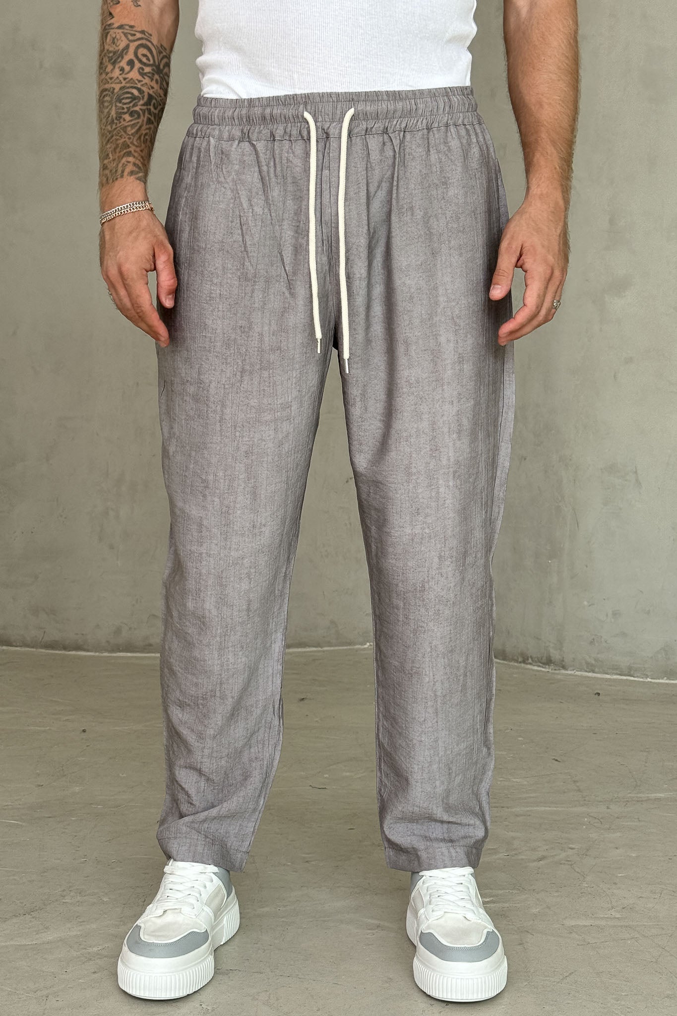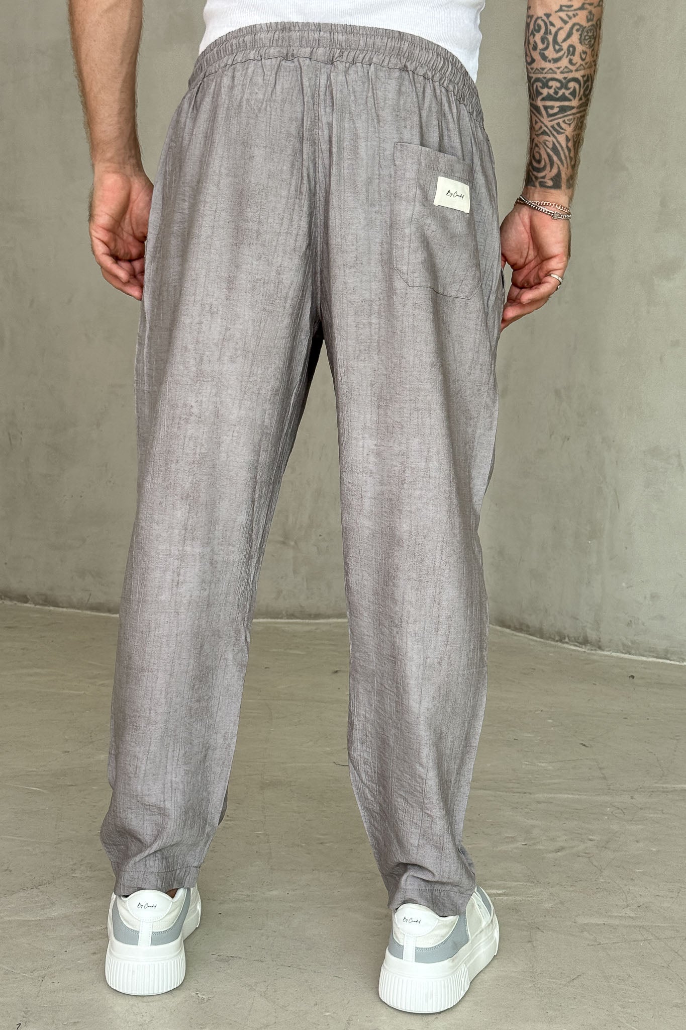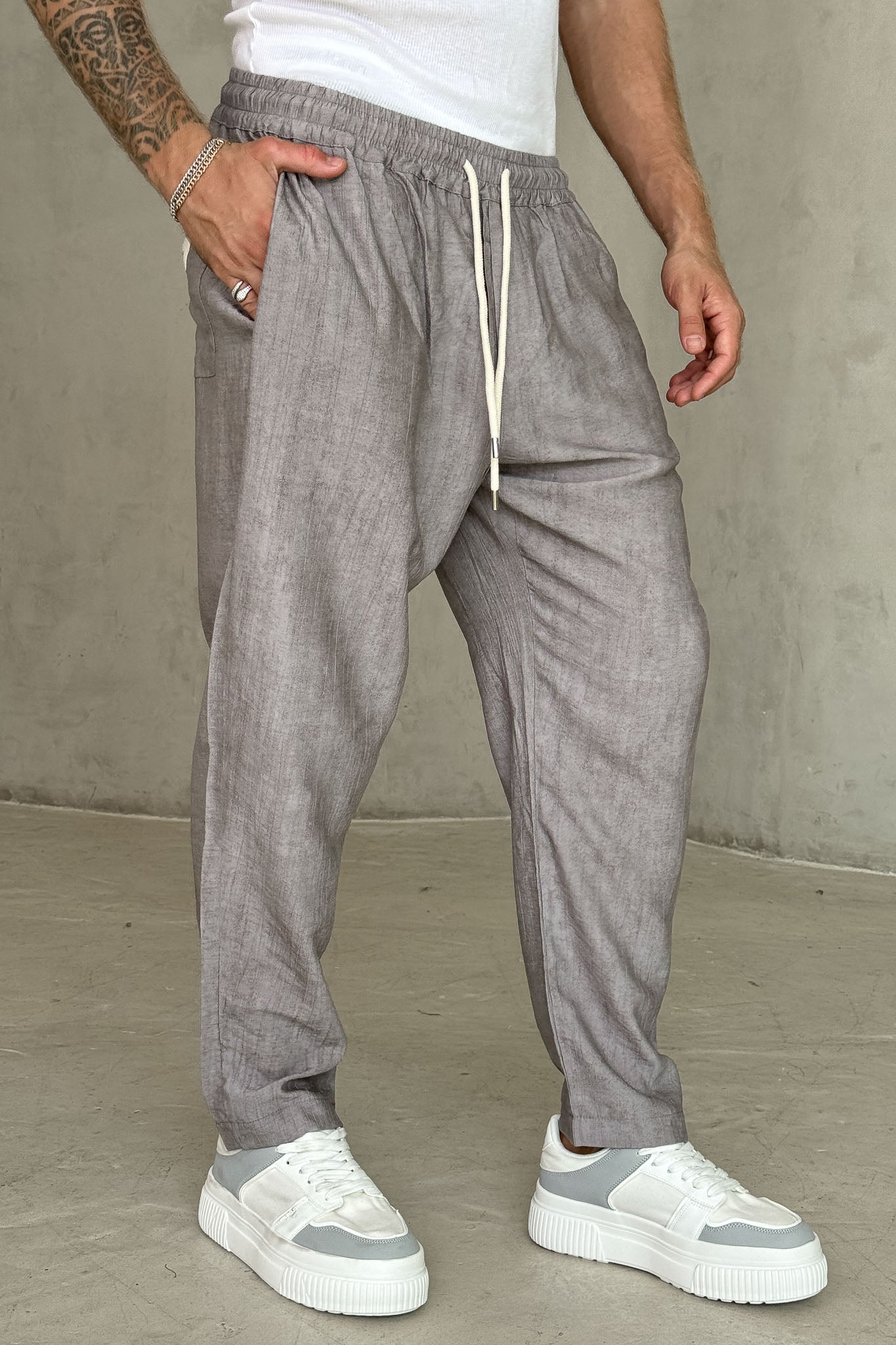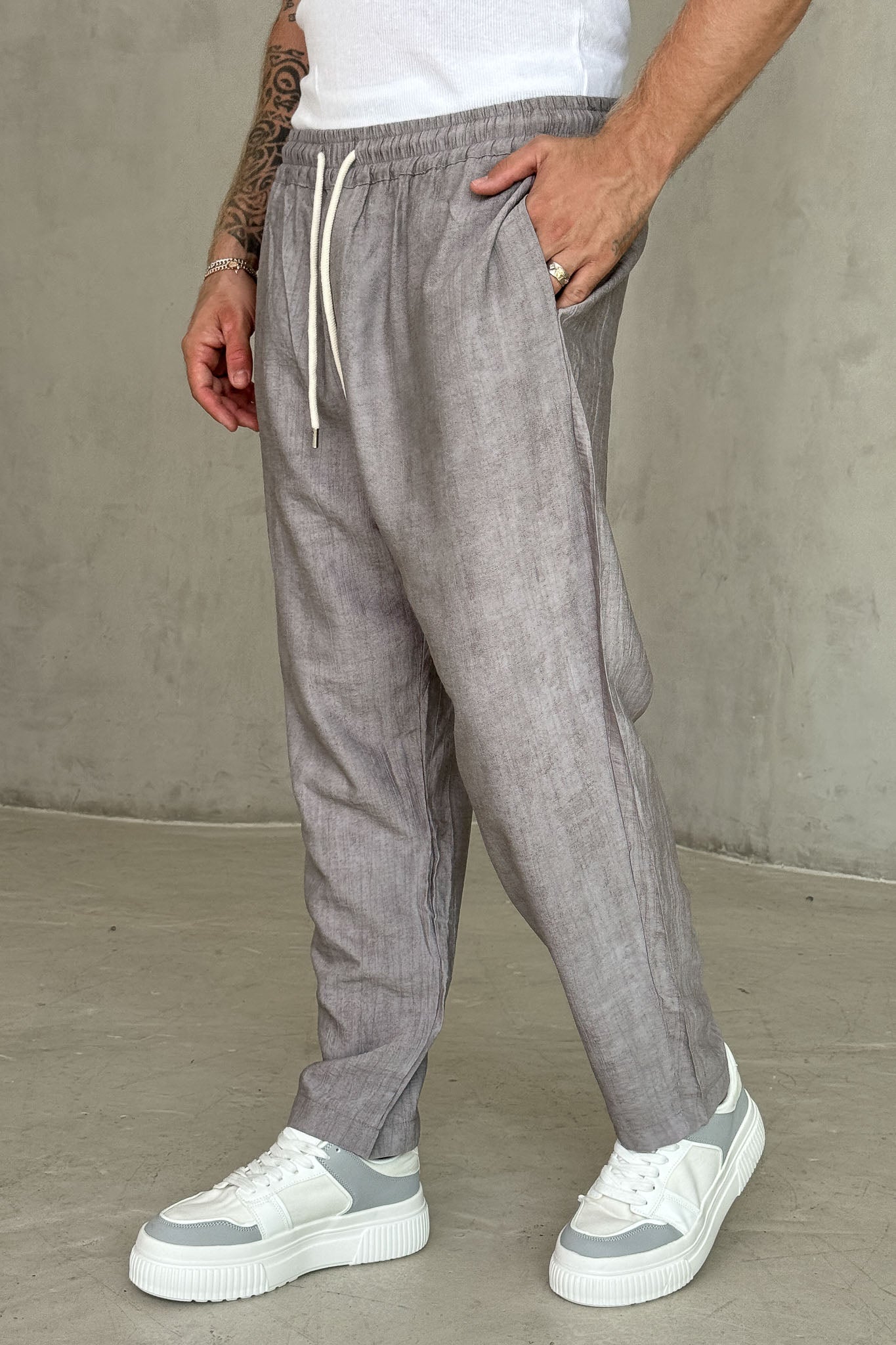 מכנס בגוון אפור בהיר מבד קל ונושם עם גזרה אוברסייז מושלמת לסטייל יומיומי משוחרר.