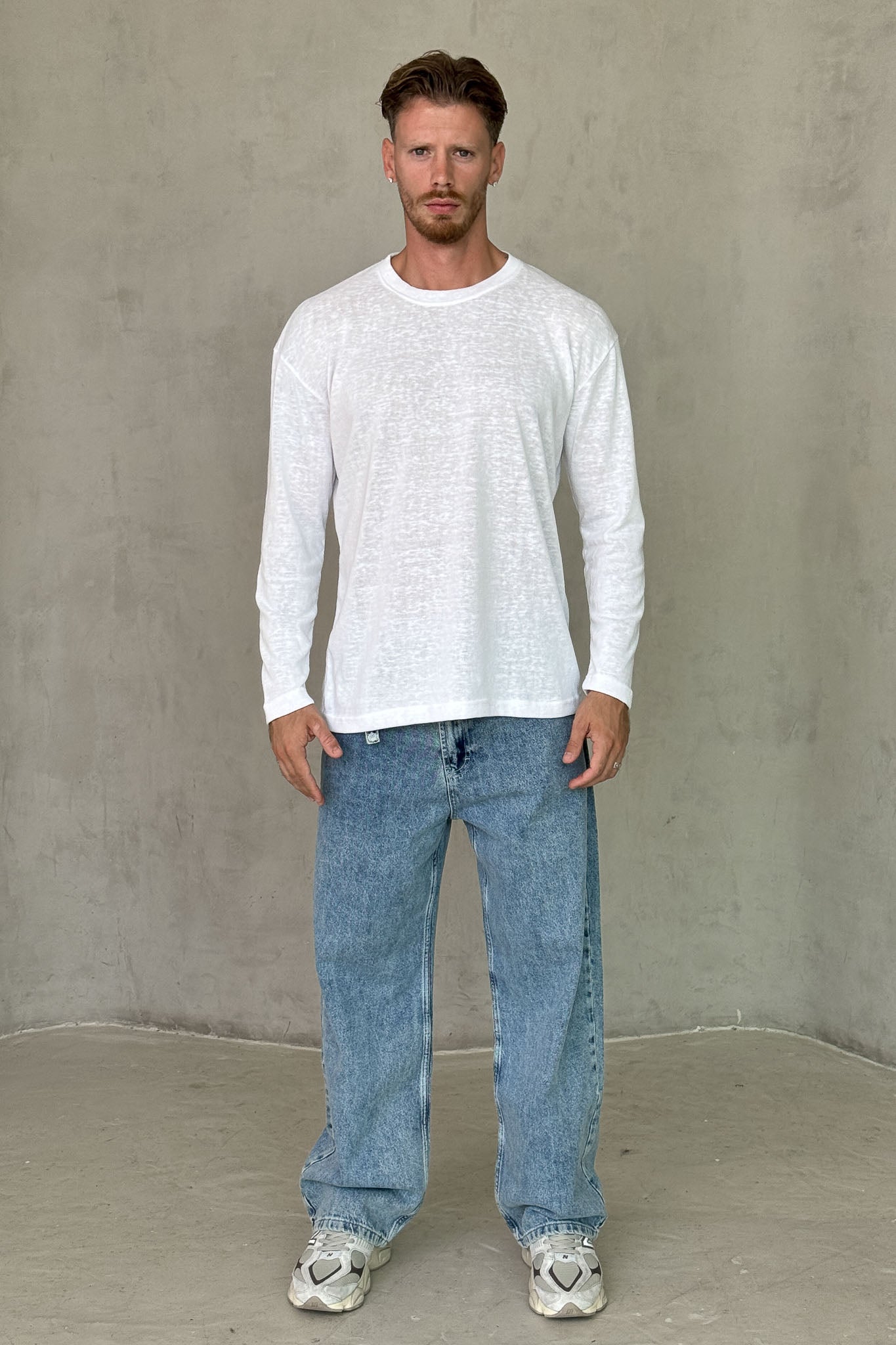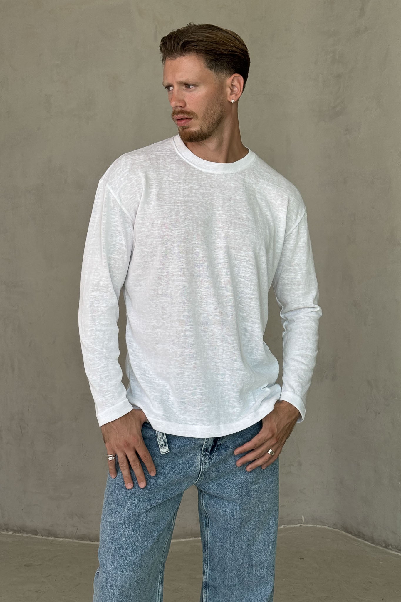 חולצה ארוכה מפשתן - Marlow (לבן)