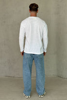 הדוגמן בגובה 1.87, משקל 84, לובש מידה L, גזרה סופר אוברסייז.