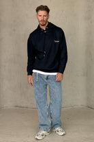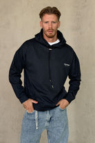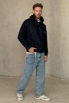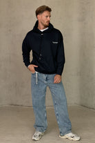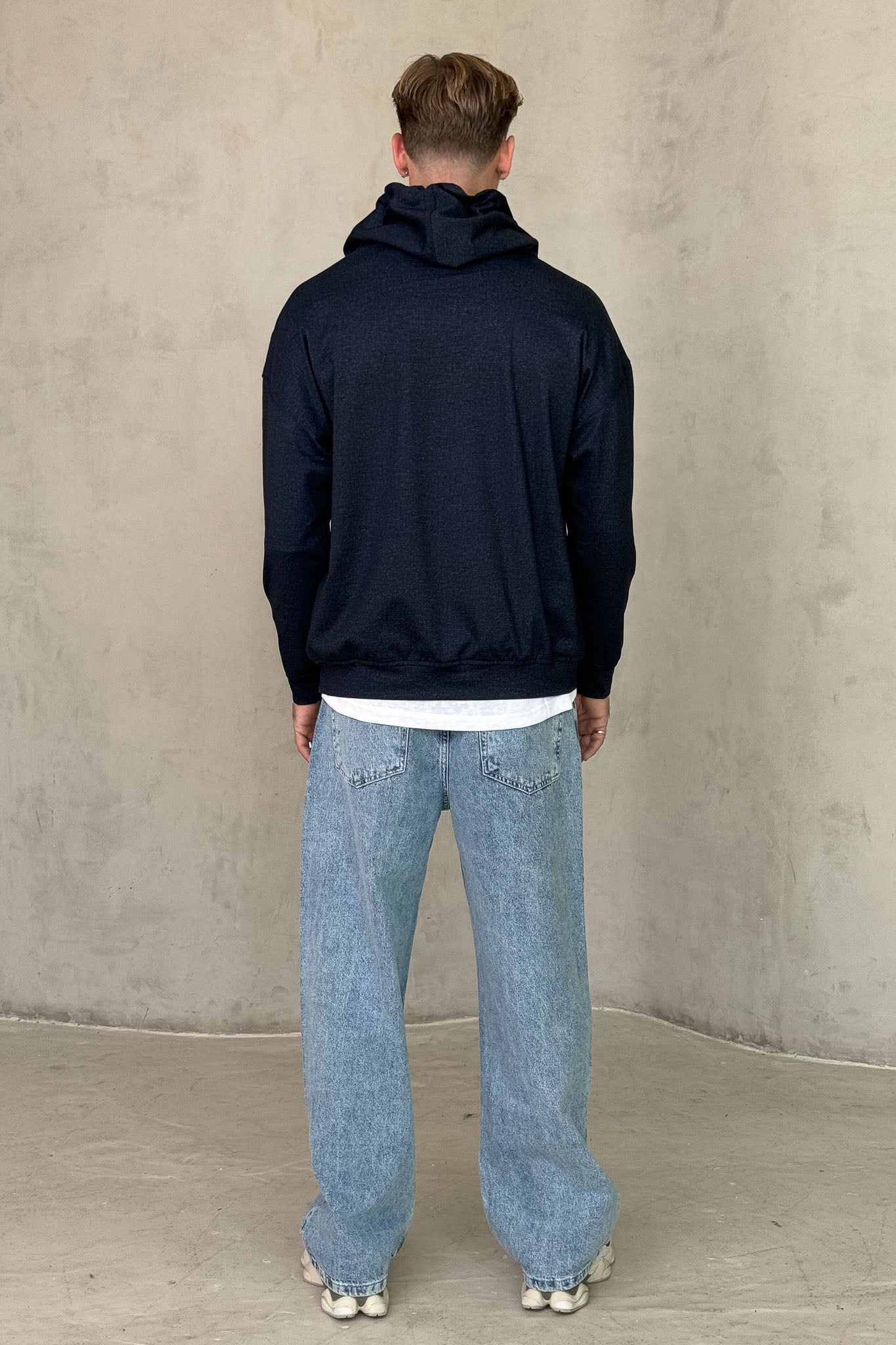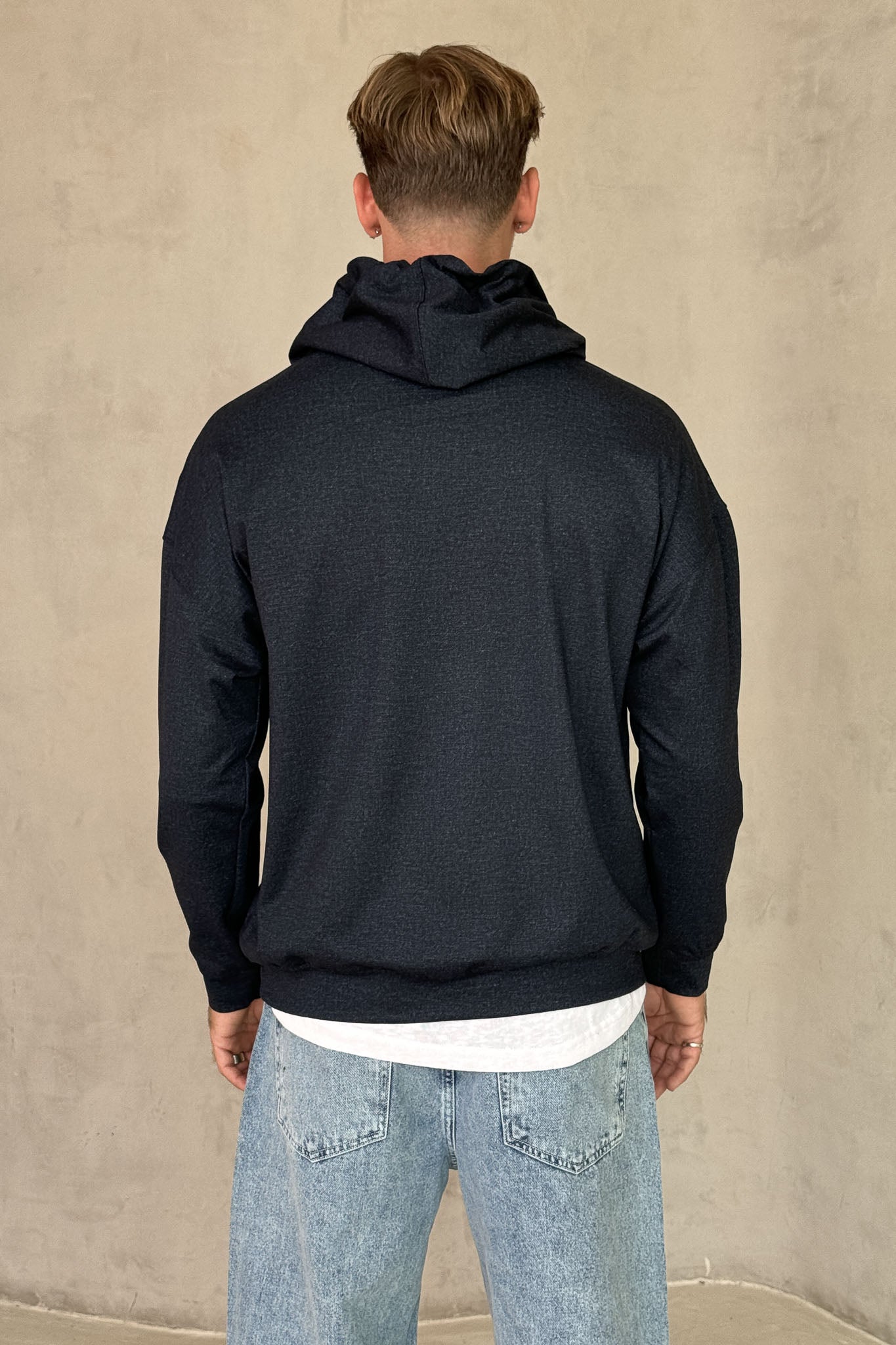 פוטר קפוצ׳ון קליל ונקי בגוון כחול כהה, עם שרוכים מעוצבים ולוגו קטן על החזה.