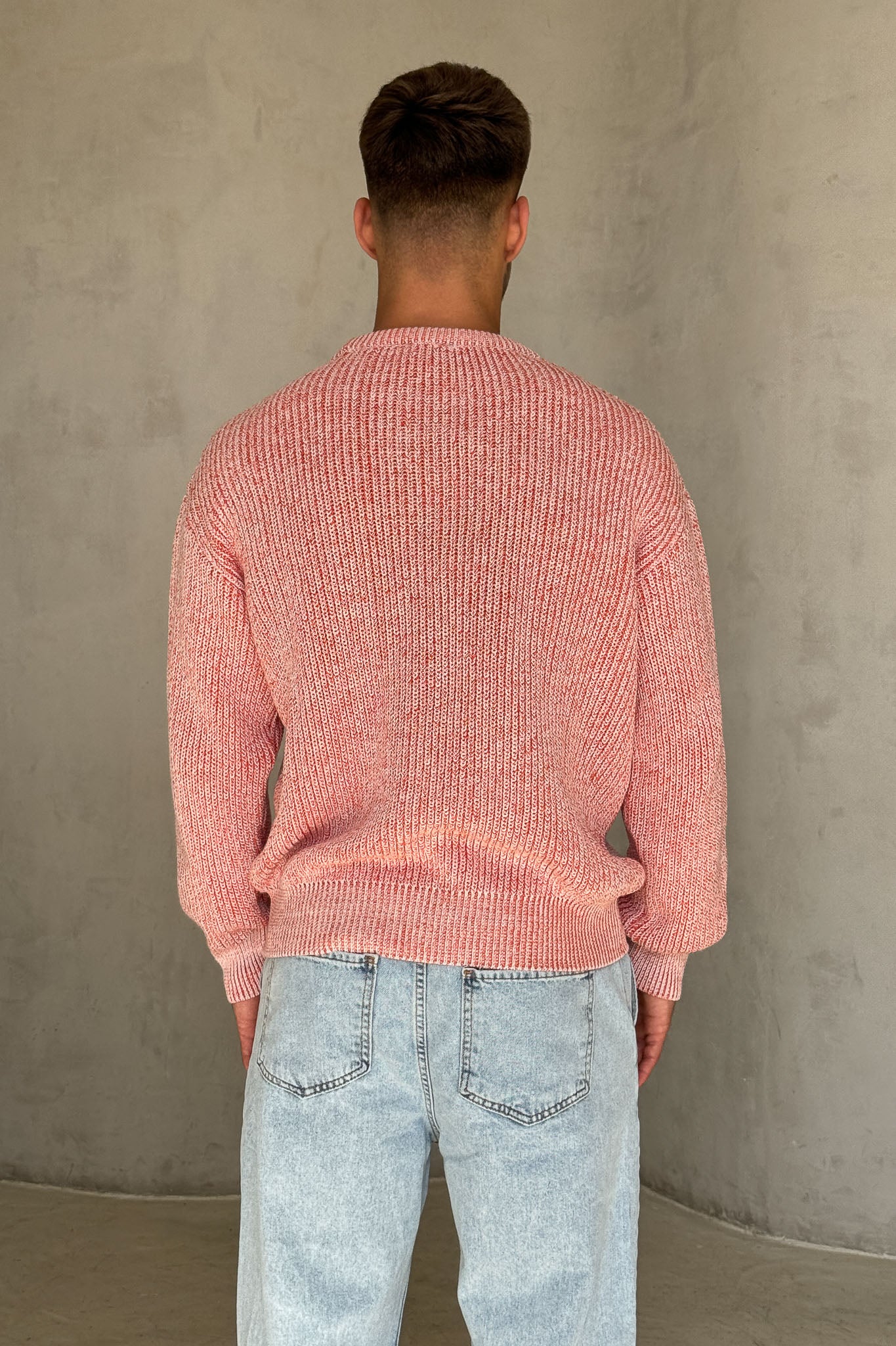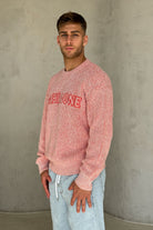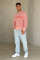 סריג ורוד בעל טקסטורה עמוקה ומראה ייחודי, עם כיתוב מודגש בחזית שמוסיף וייב צעיר ואורבני. הבד רך ונעים, יושב בצורה משוחררת ומעניק מראה חורפי-קליל מושלם ליום-יום. משתלב מצוין עם ג׳ינס בהיר או מכנסי בד לסטייל נקי ומדויק.