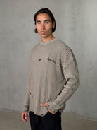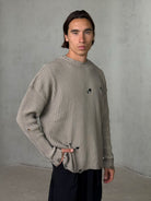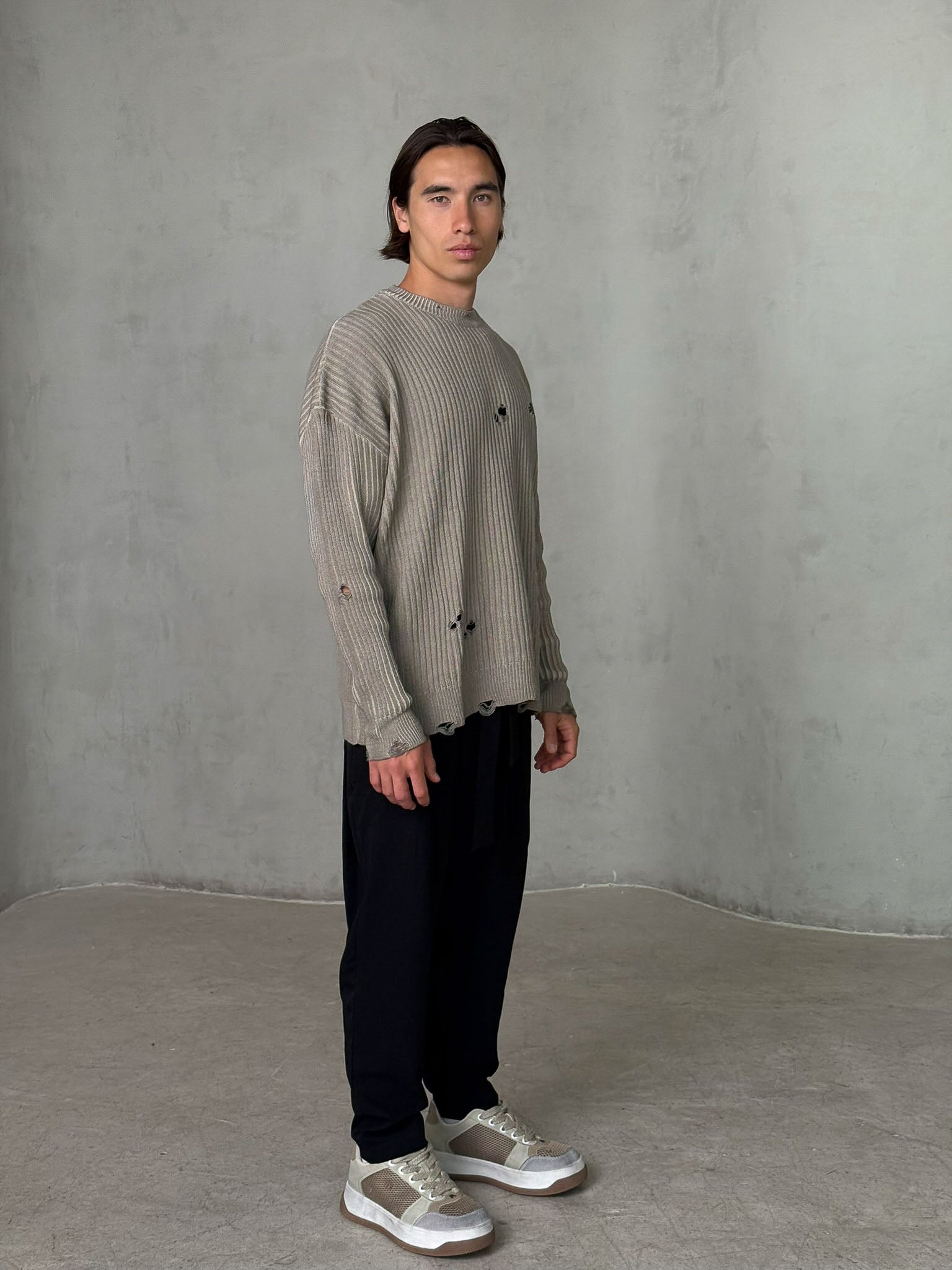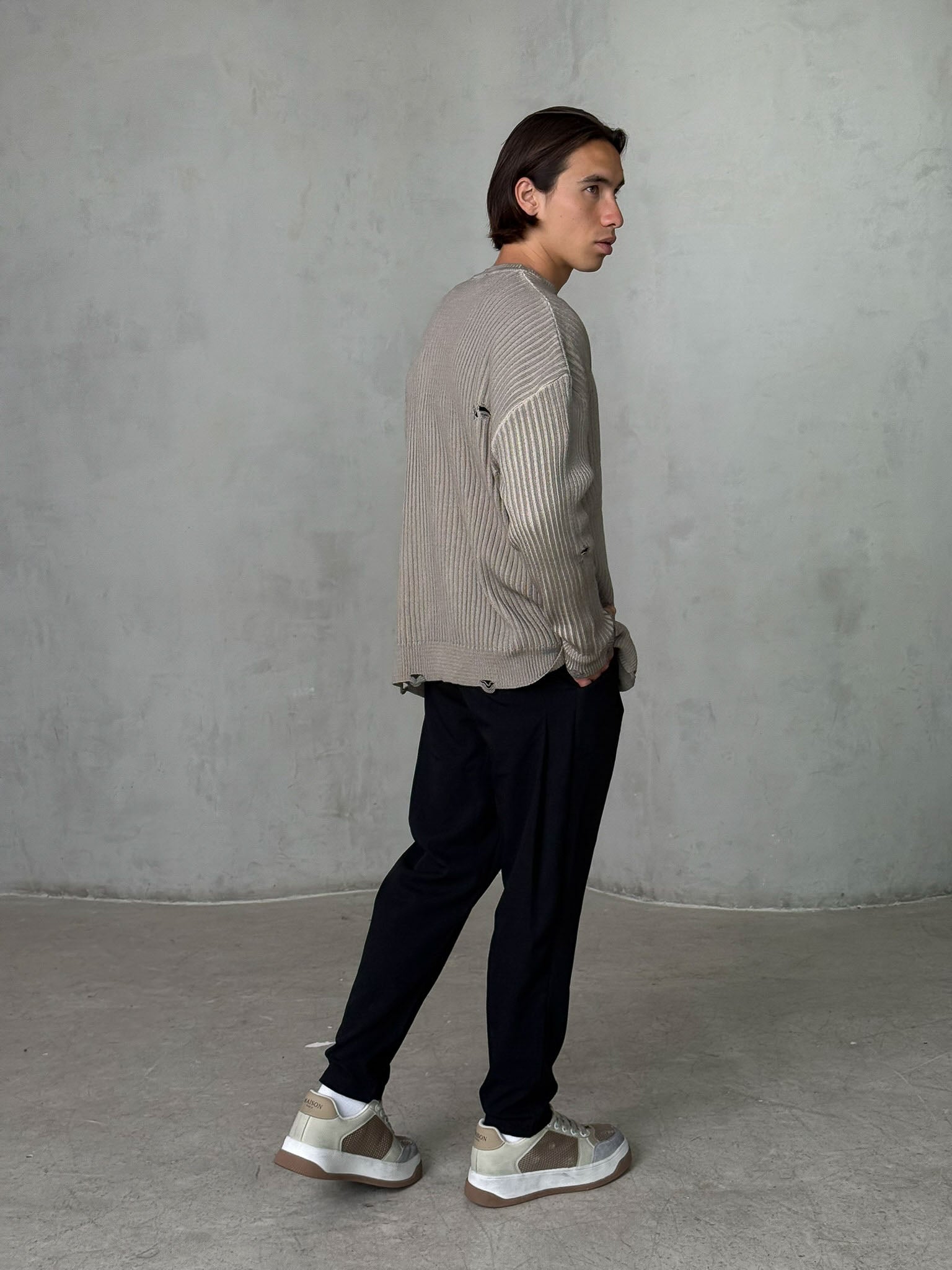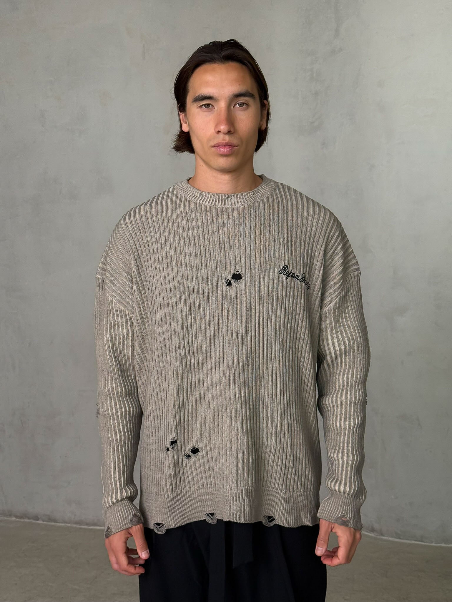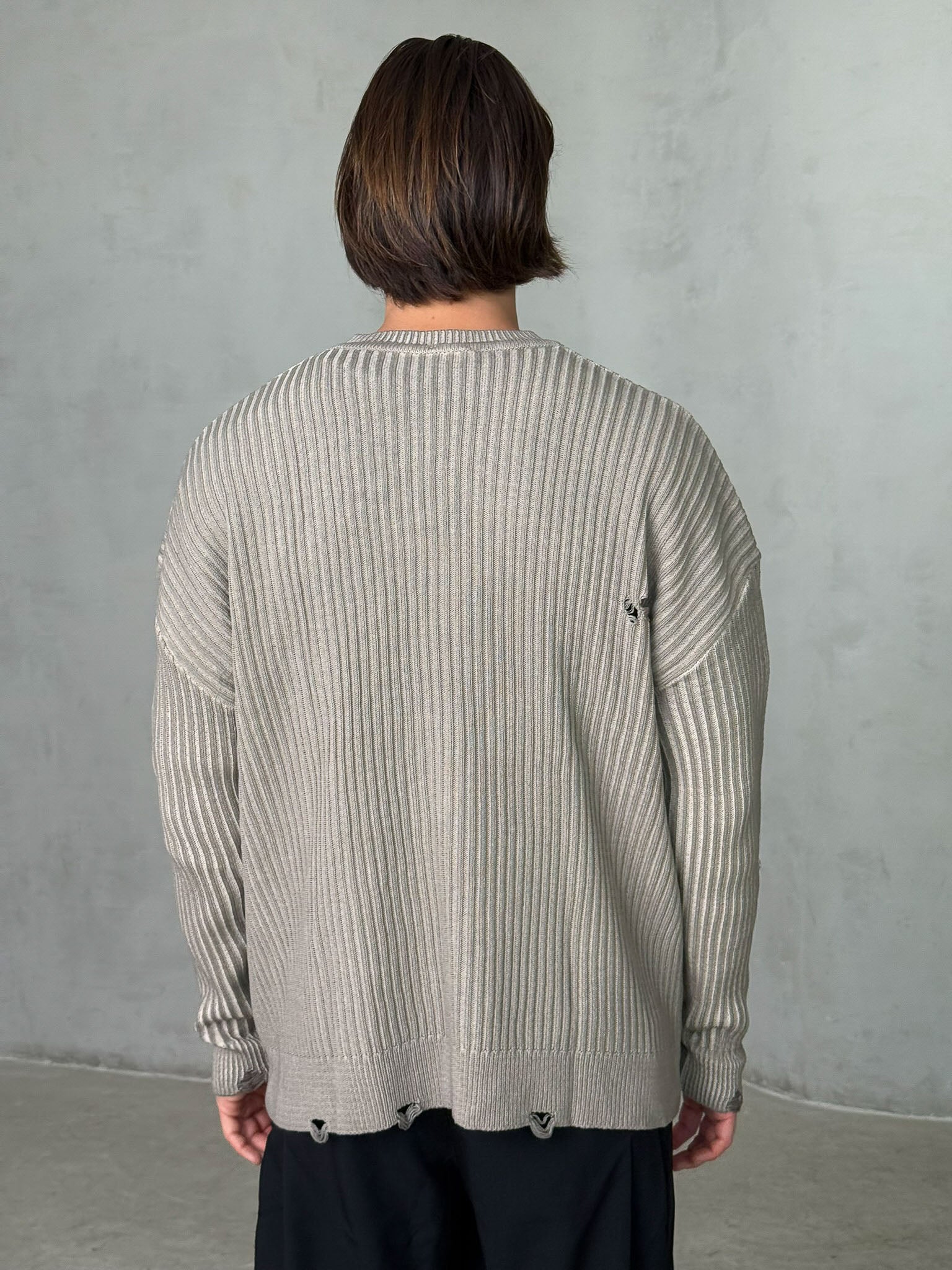 סריג ריב בגזרת אוברסייז עם מראה וינטג’ שטוף.