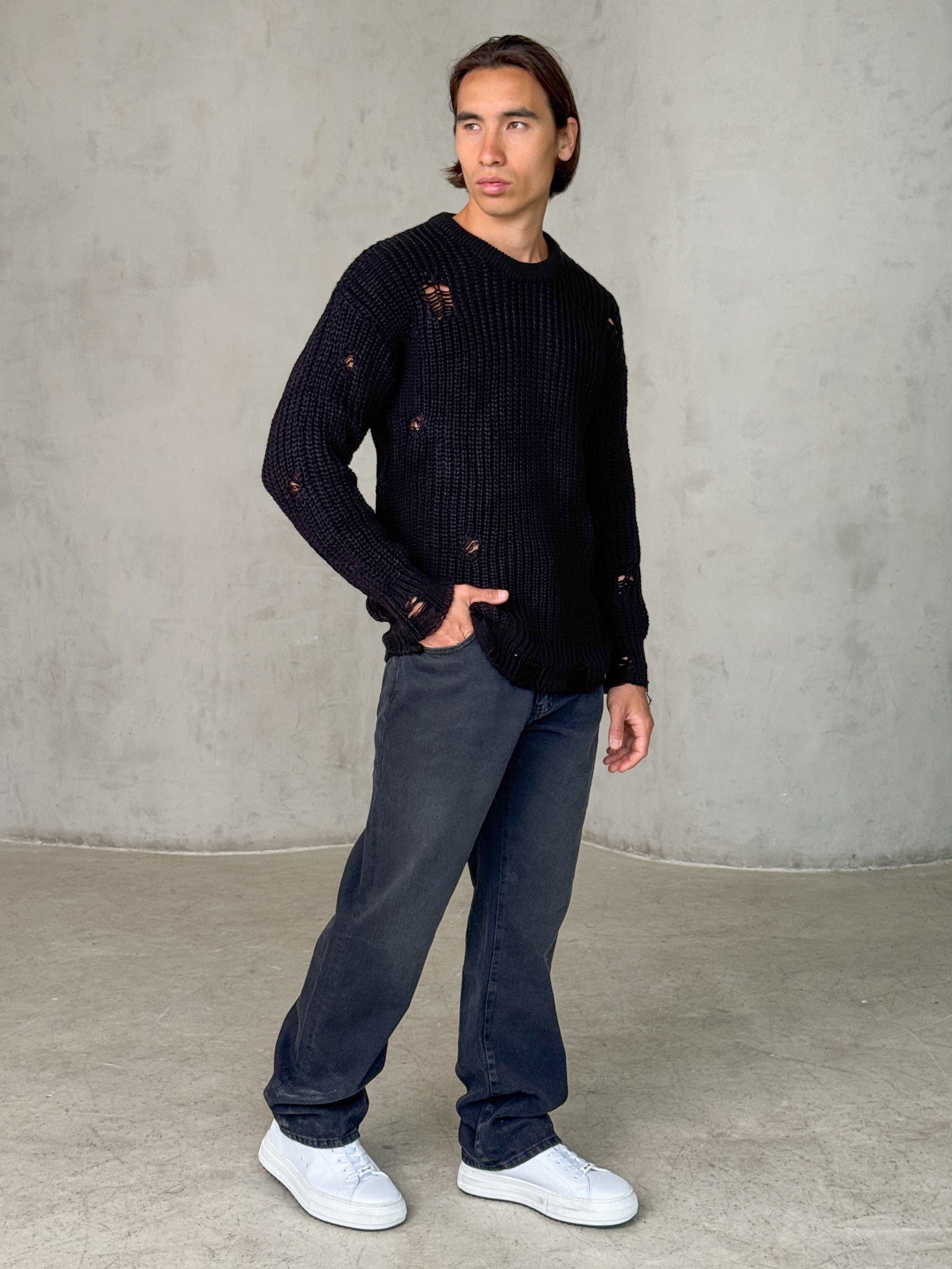 סריג קרוע קלאסי – Desert Knit (שחור)