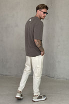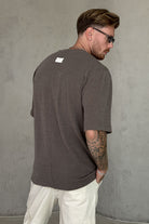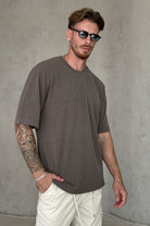 הדוגמן בגובה 1.87, משקל 84, לובש מידה L (גזרה סופר אוברסייז).