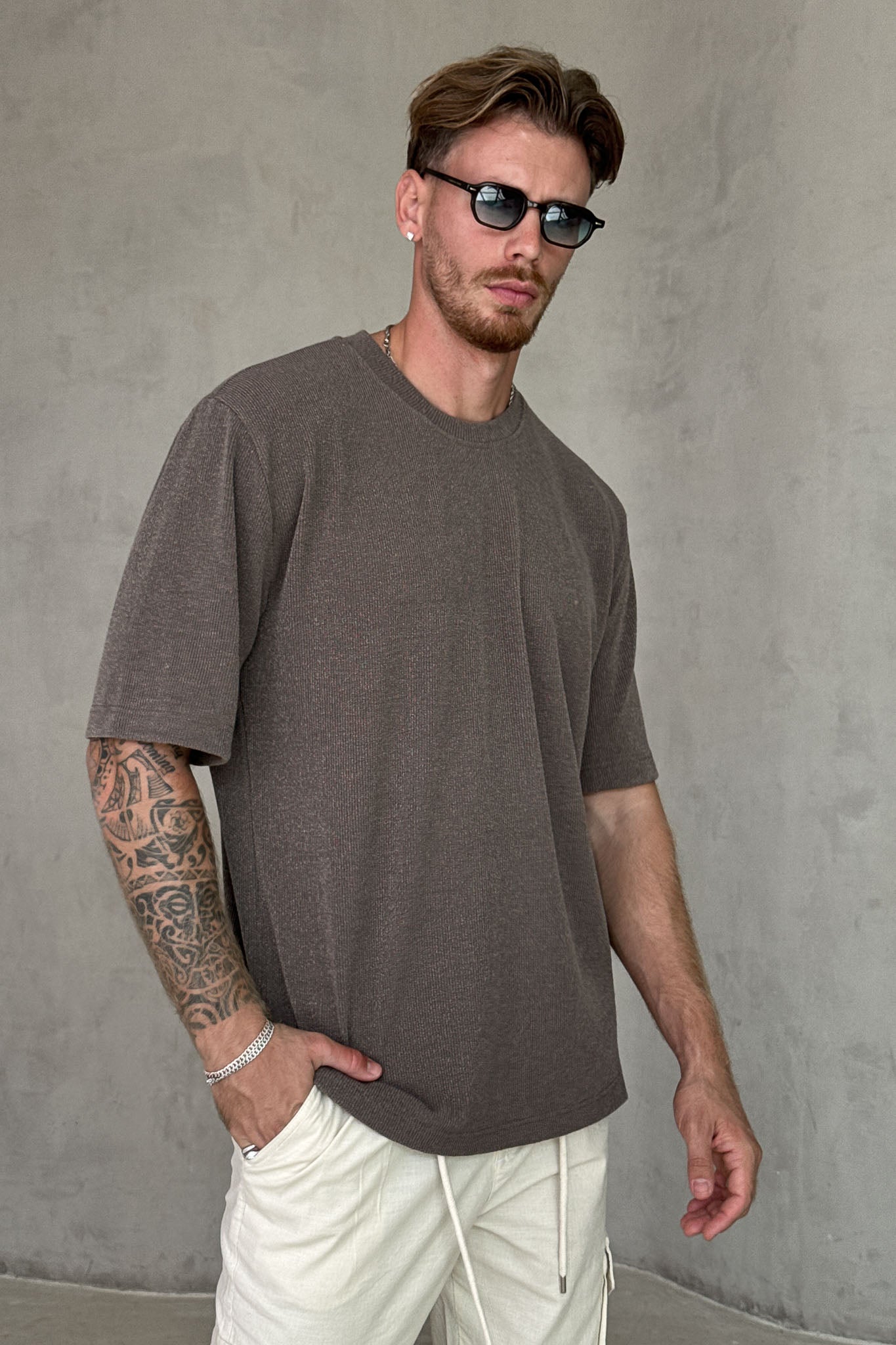 חולצת סריג בגוון חום עמוק עם בד רך, מחמם ונעים על הגוף.