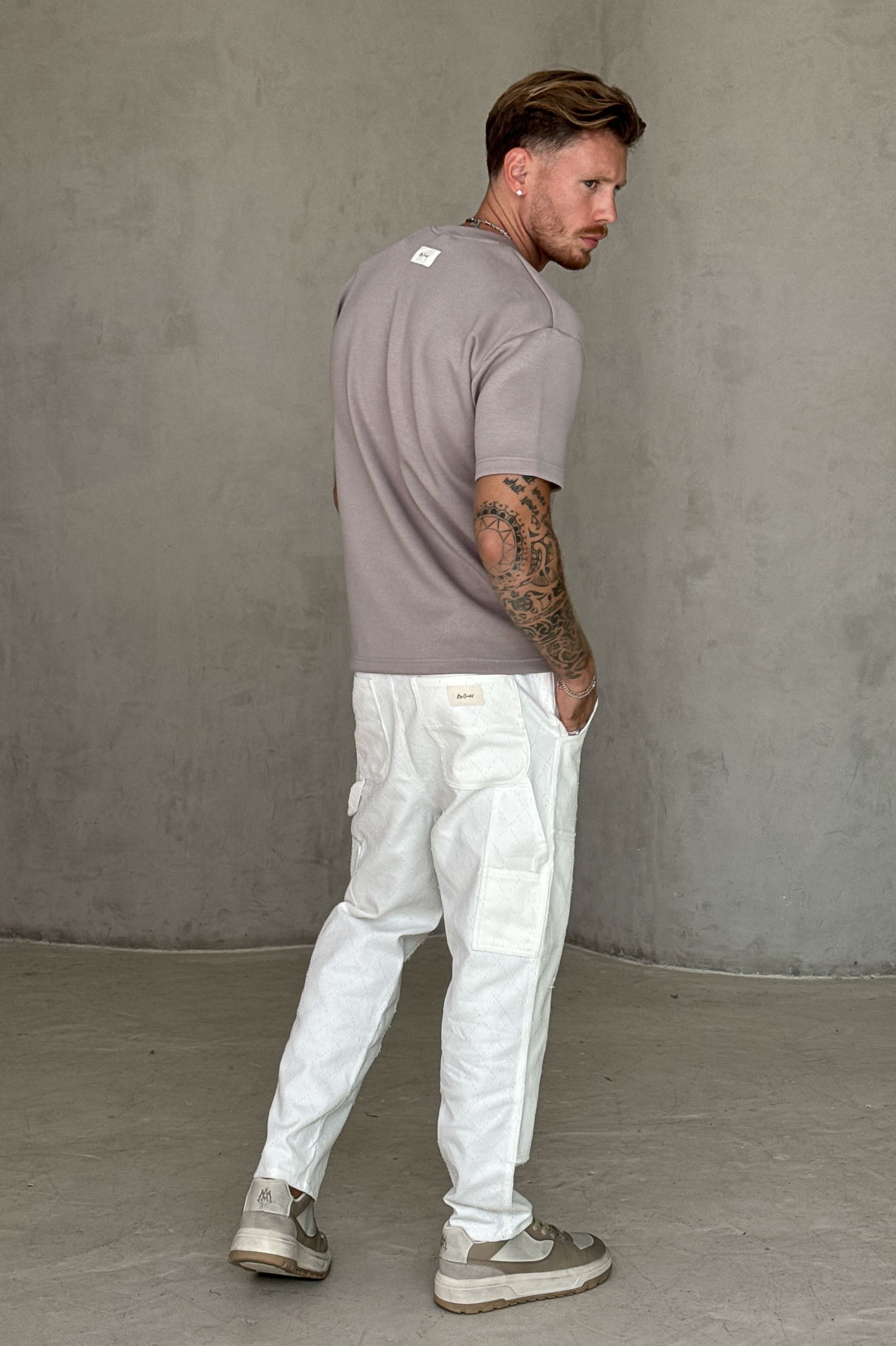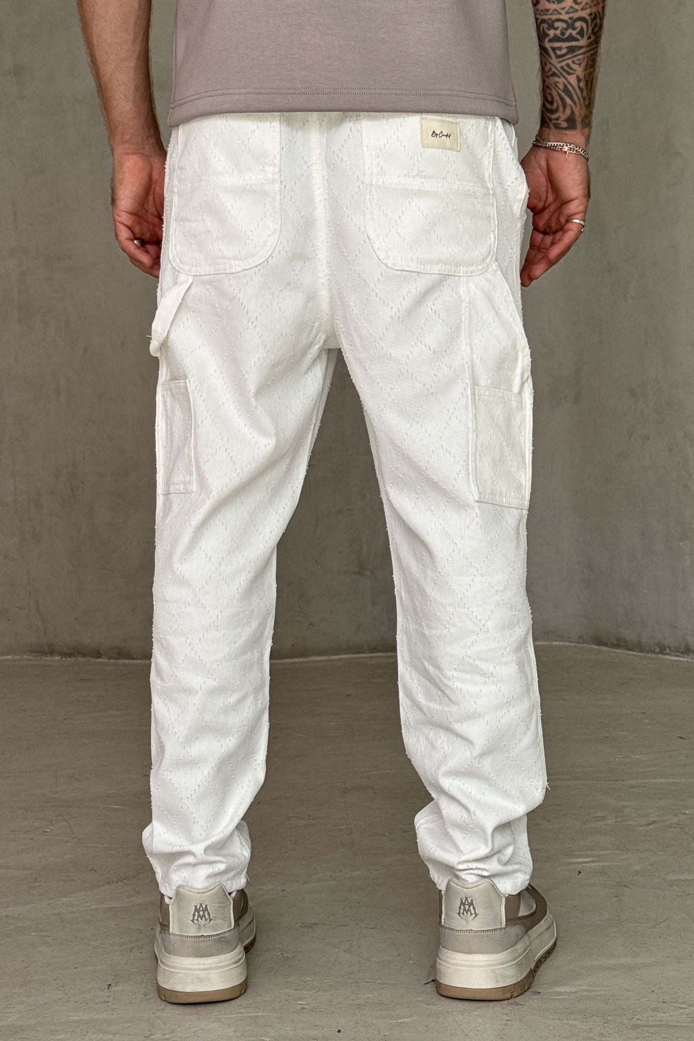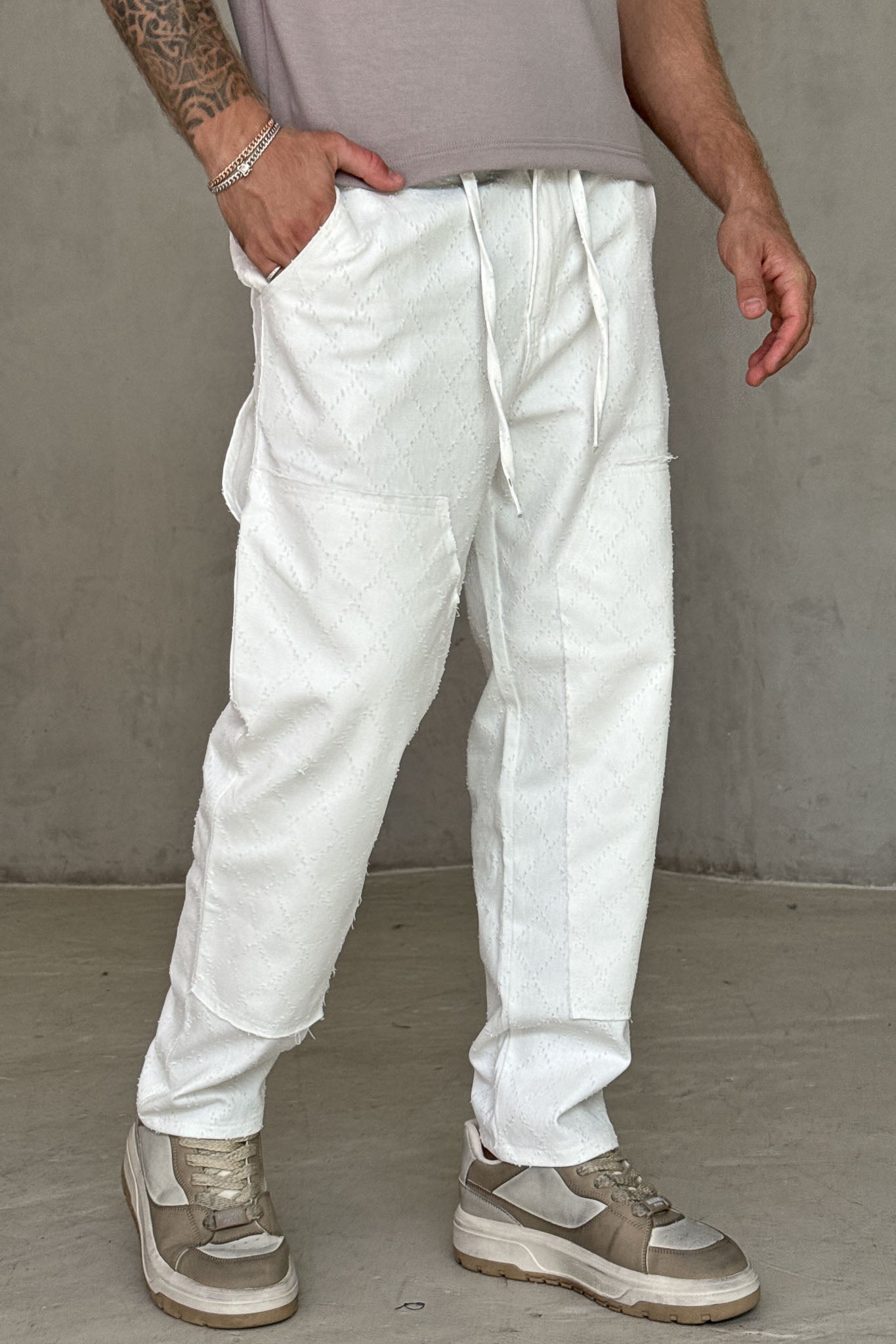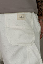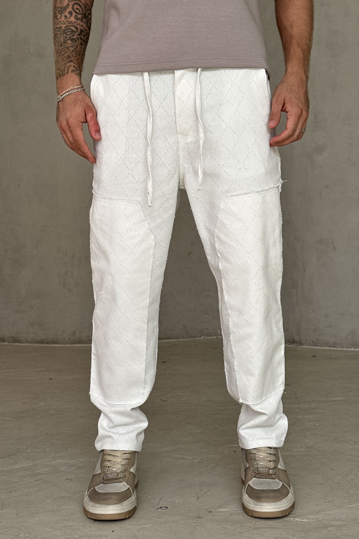 ג׳ינס לבן עם טקסטורה מעודנת ותפירה דקורטיבית שמעניקה לו לוק ייחודי ומוקפד.