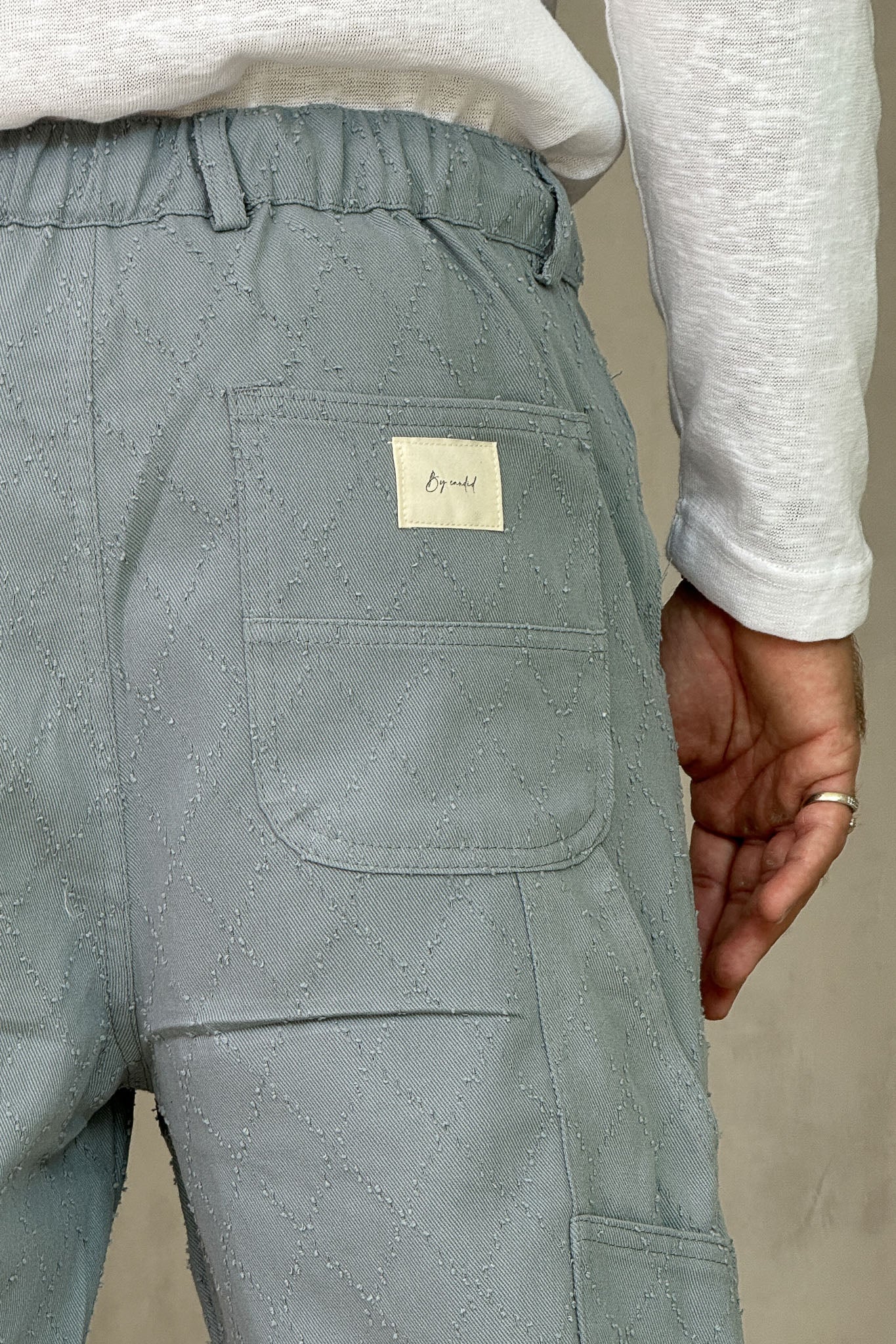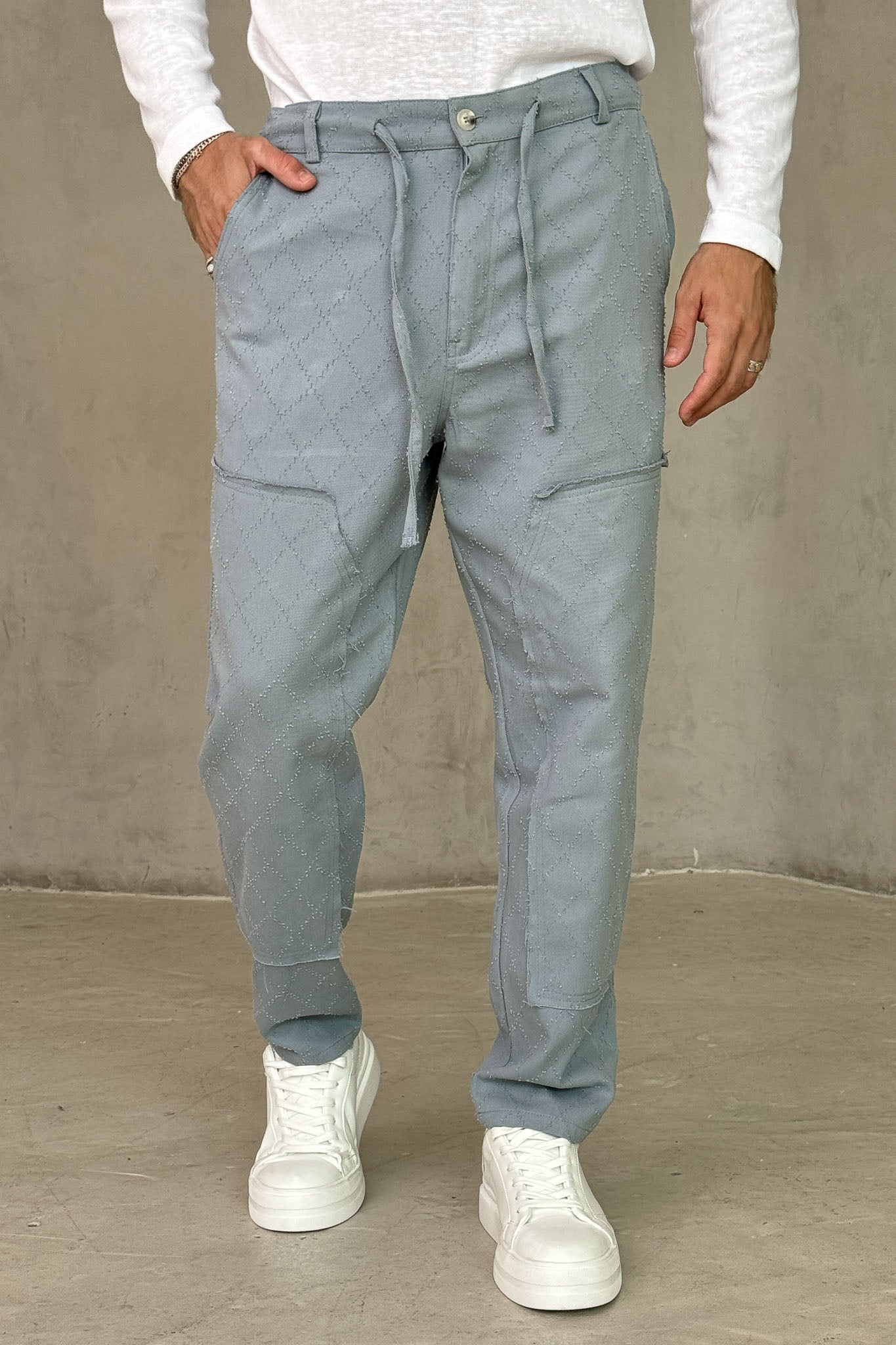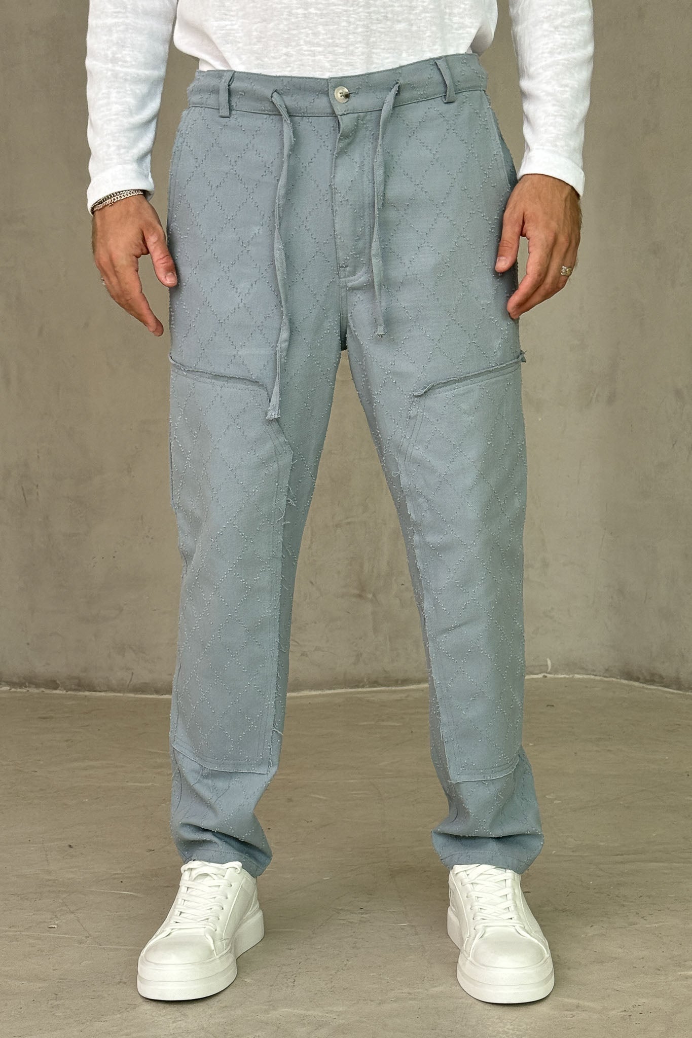ג׳ינס בגוון תכלת עם טקסטורה מעודנת ותפירה דקורטיבית שמעניקה לו לוק ייחודי ומוקפד.