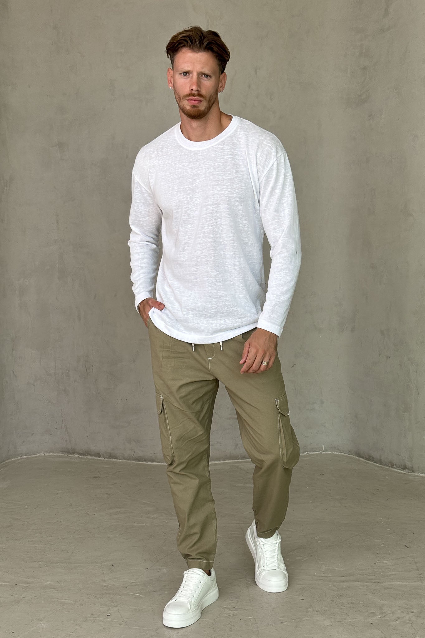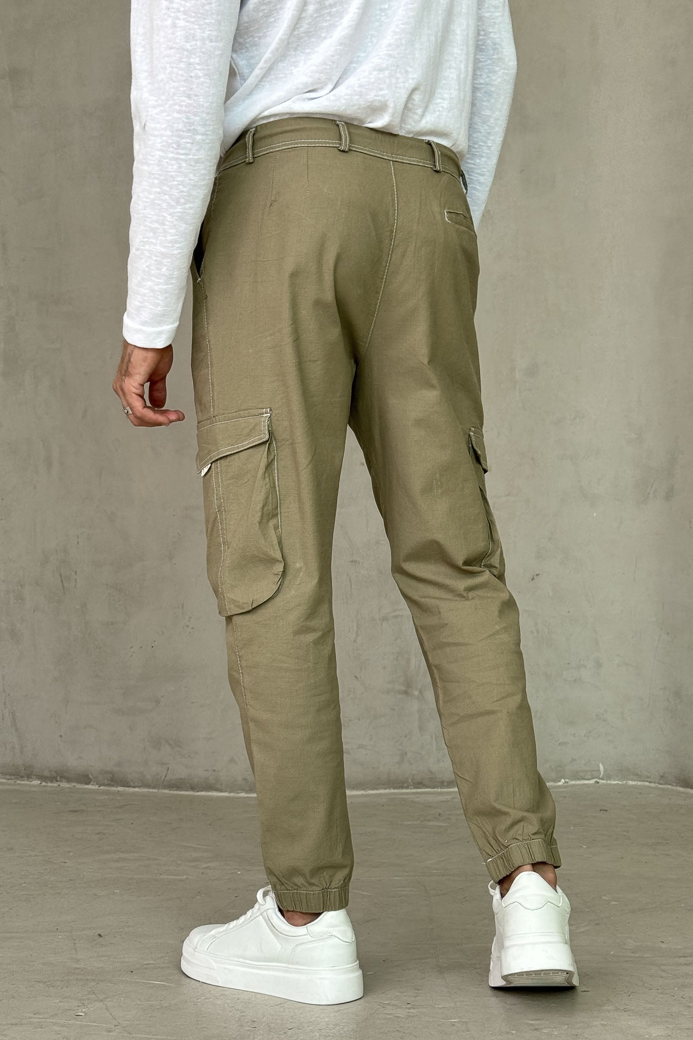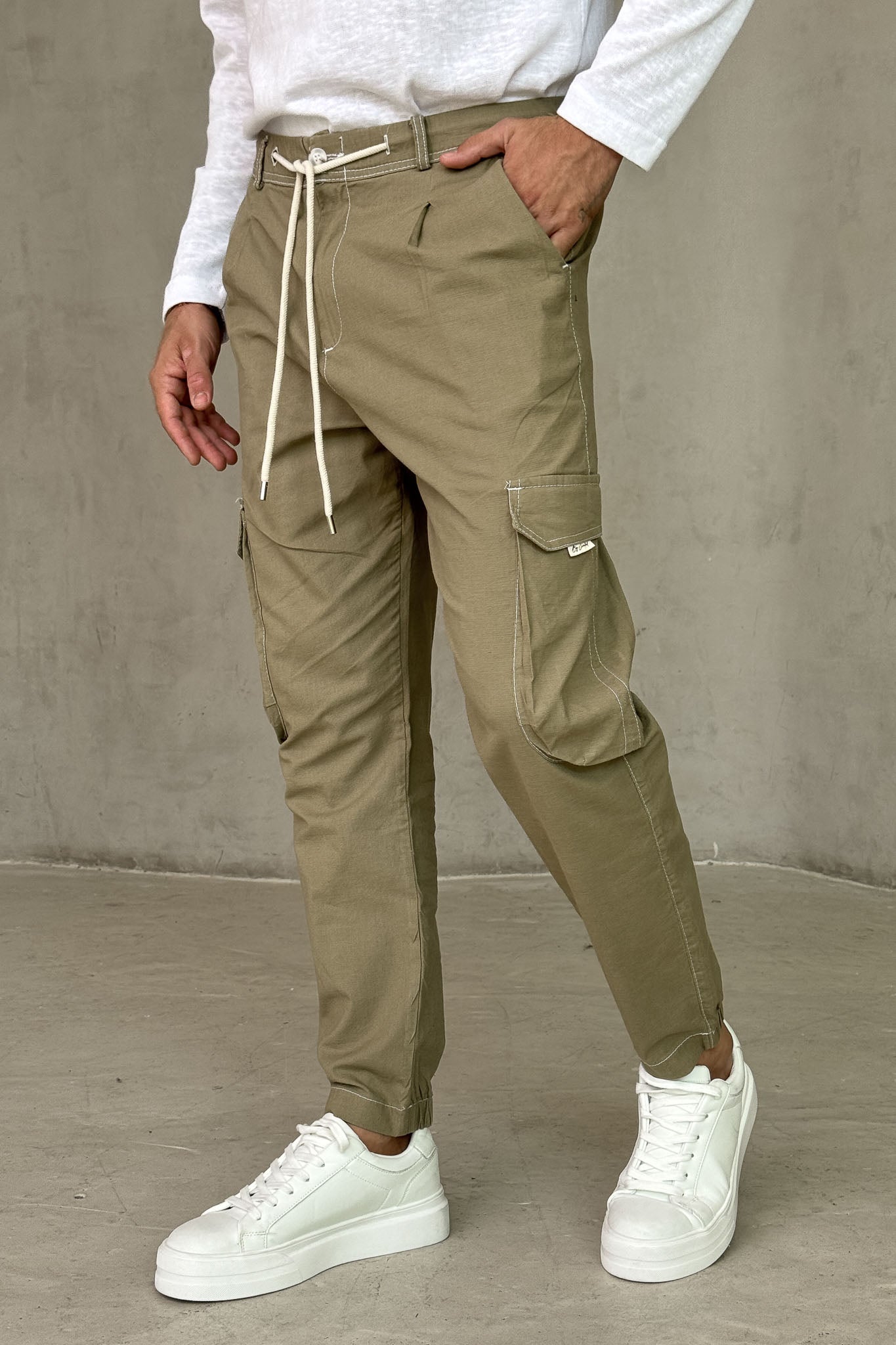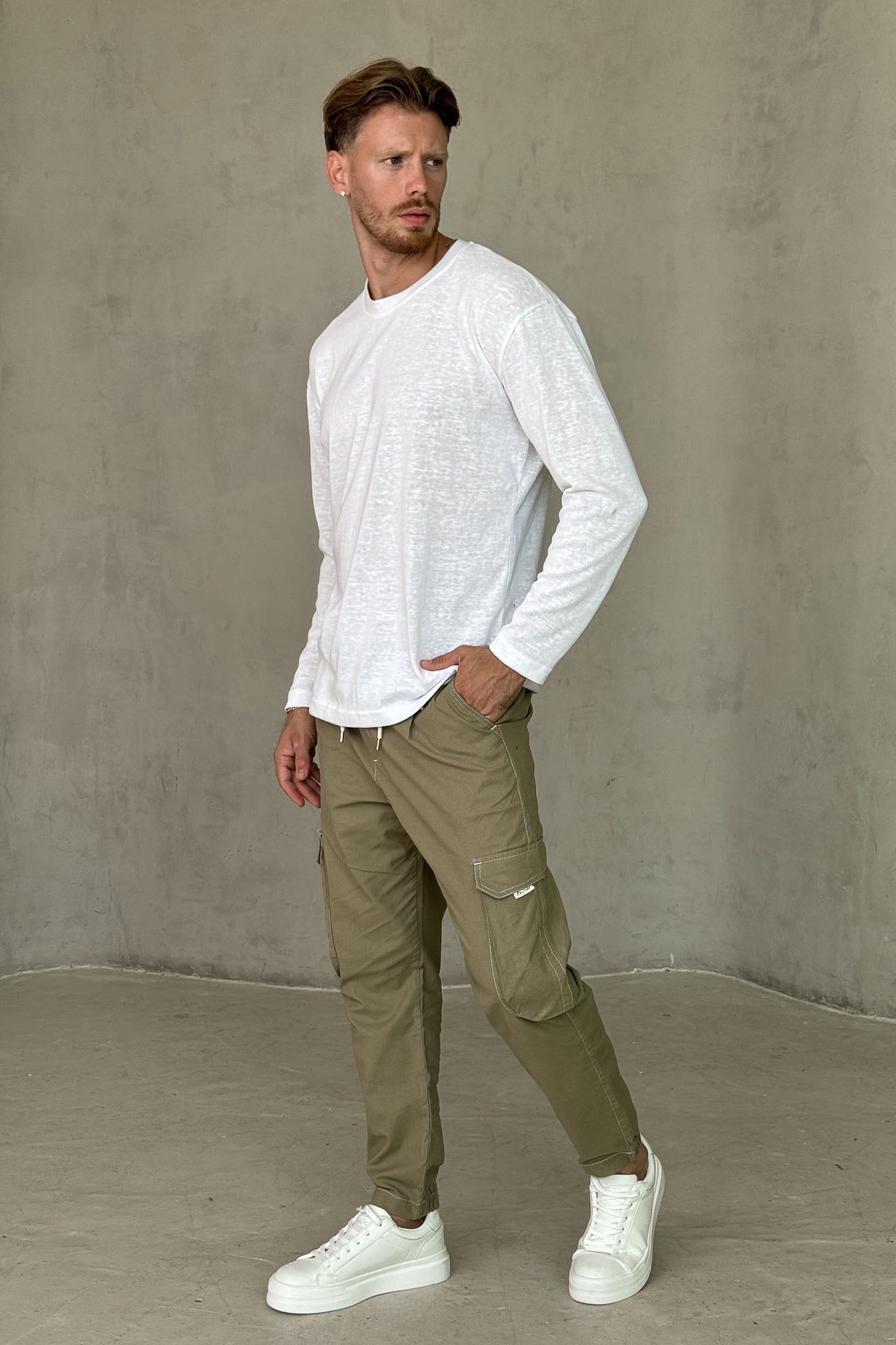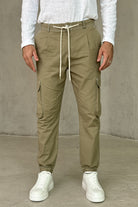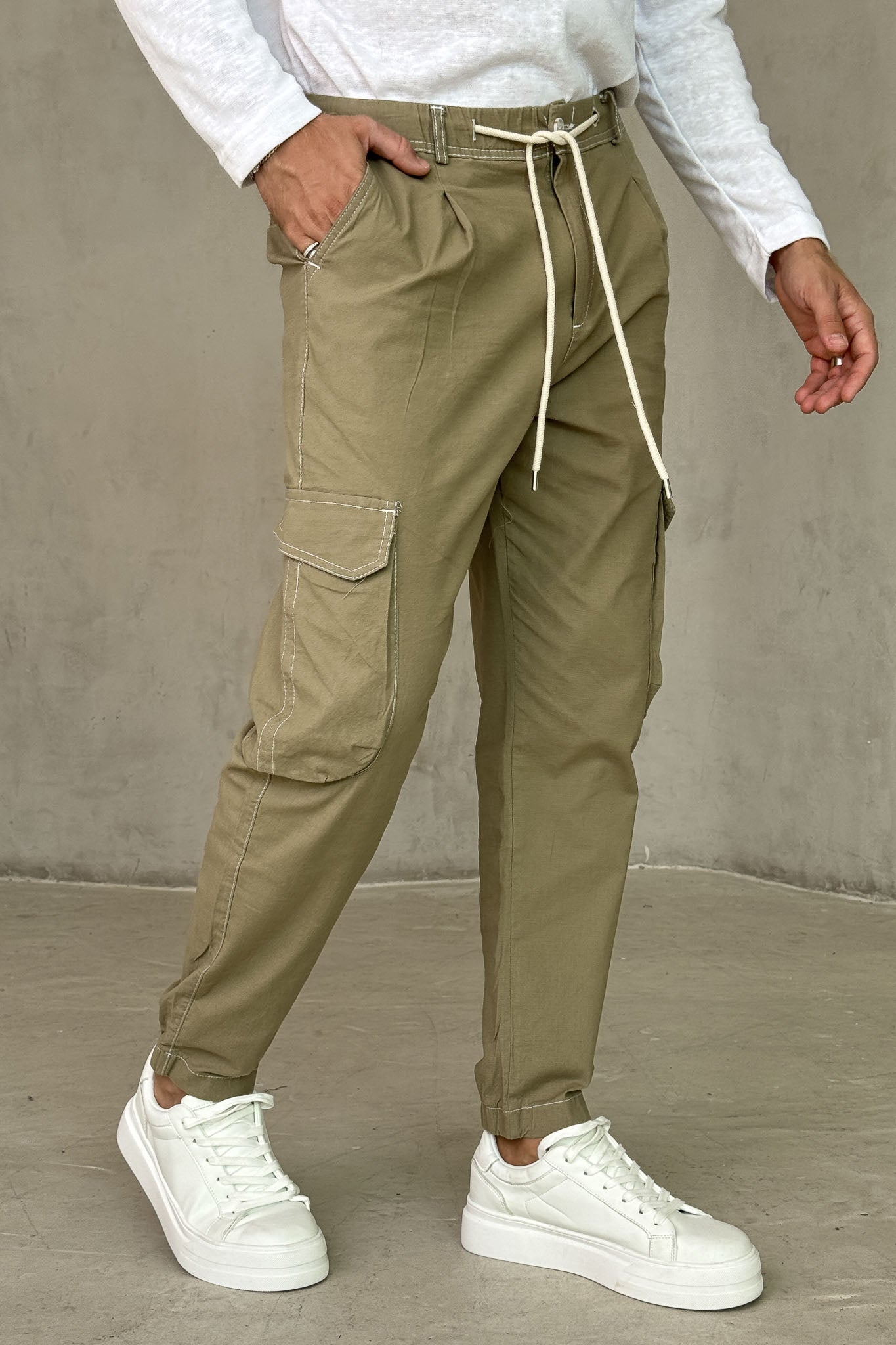 ג׳וגר בגוון זית עם כיסי צד פרקטיים ושרוך מותן לבן שמוסיף טאץ׳ נקי ומדויק.