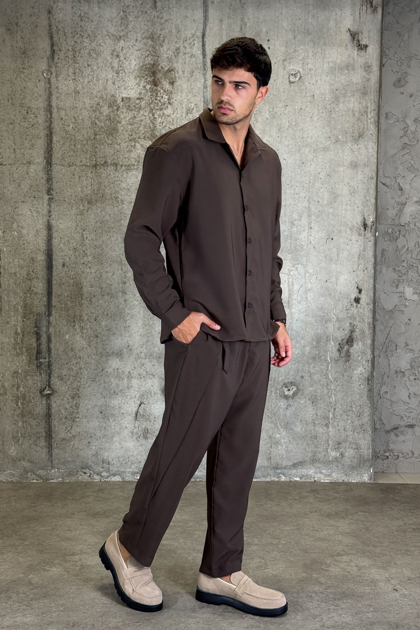 מכנס אלגנט בצבע חום כהה