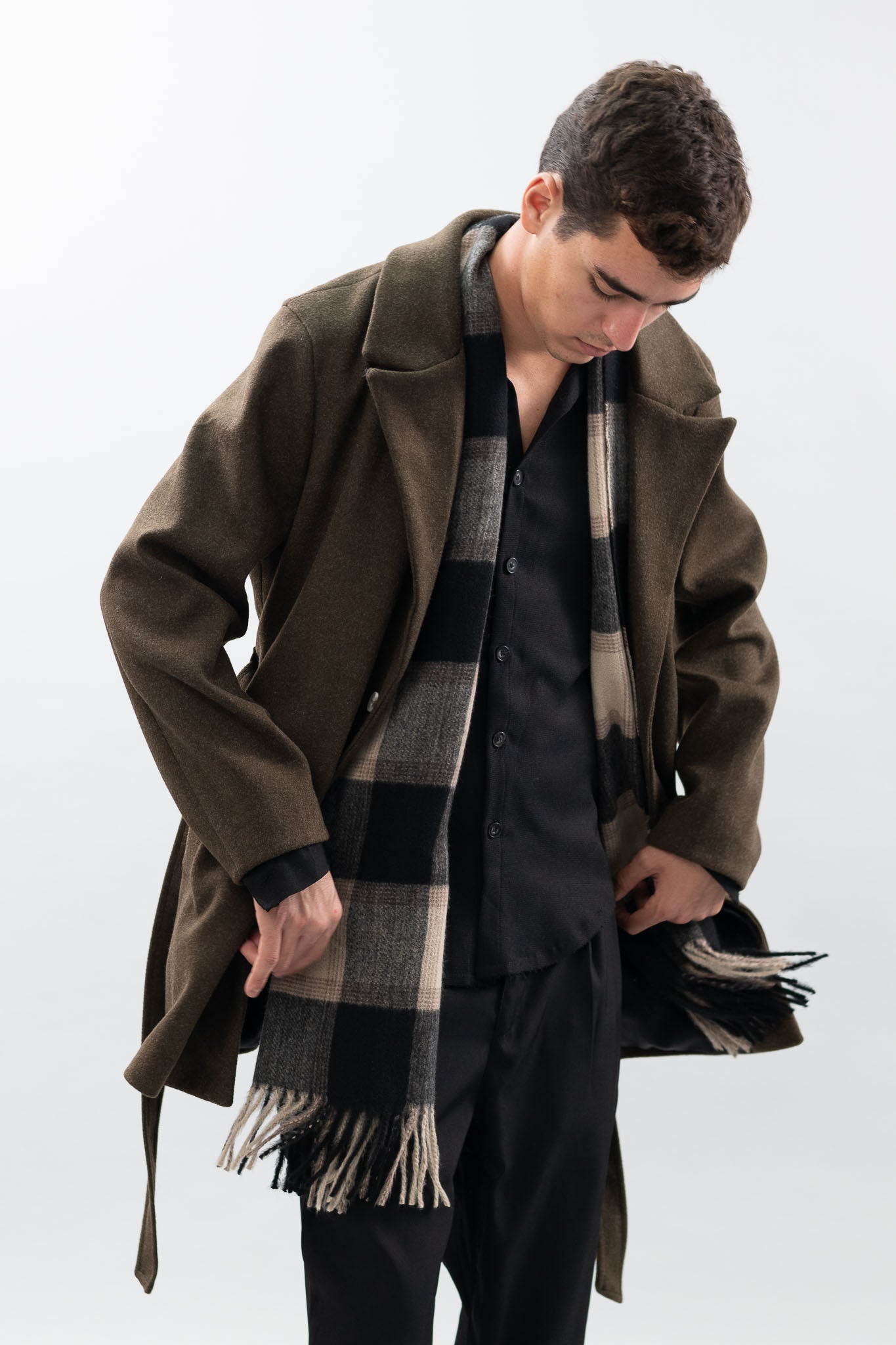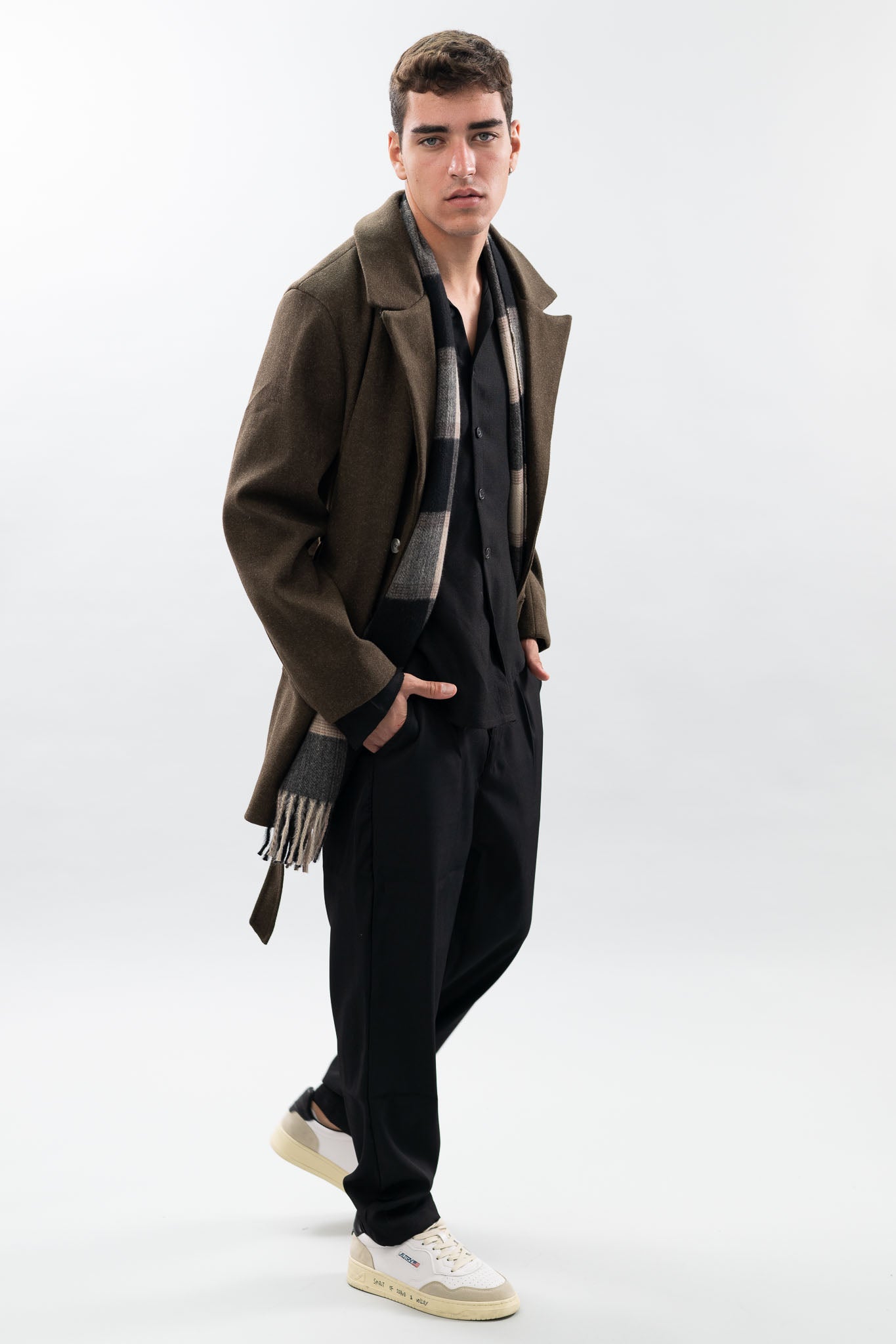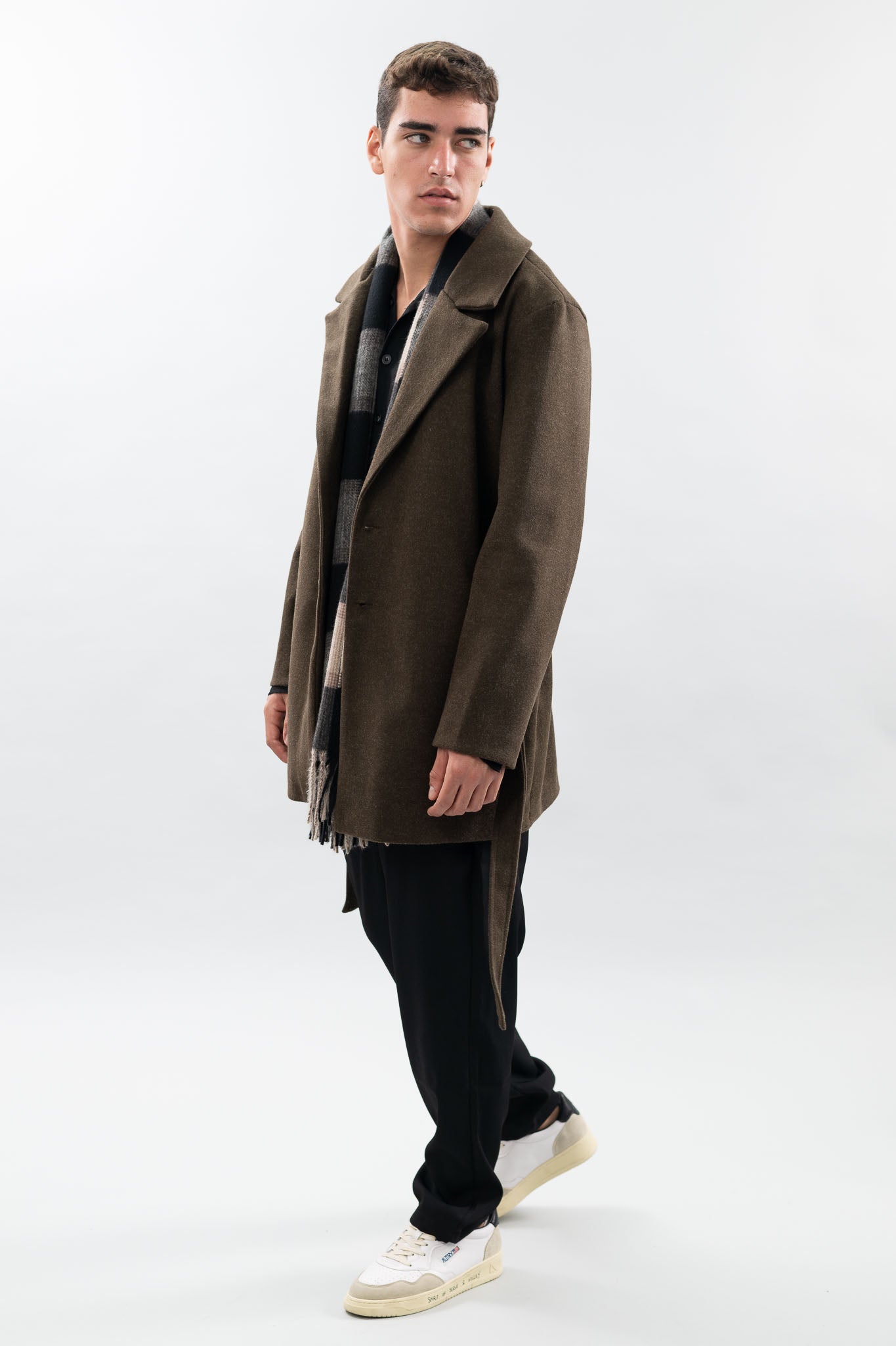 מעיל קלאסי בסטייל מיוחד שמשדר מראה אלגנטי ונעים. למעיל קיים חגורה וכיסים במותניים,
