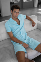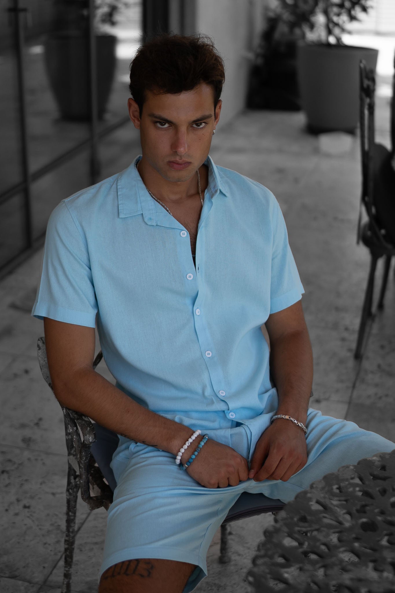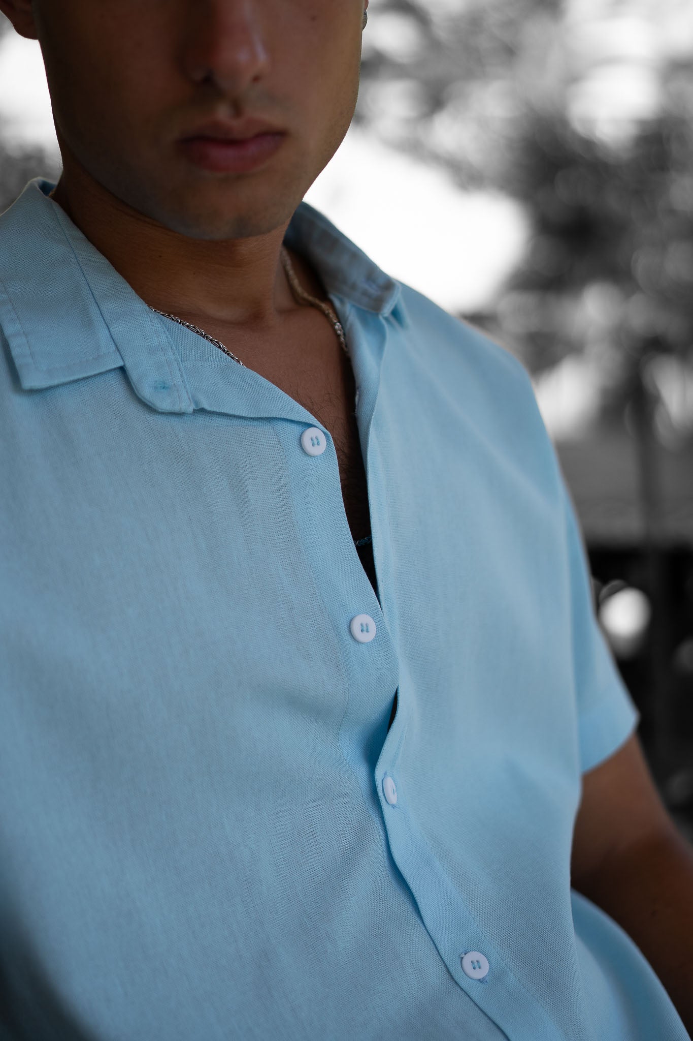 מכופתרת קזואל קצרה בגזרת slim fit מבד פשתן רך ואוורירי.