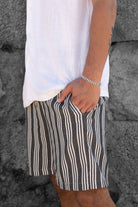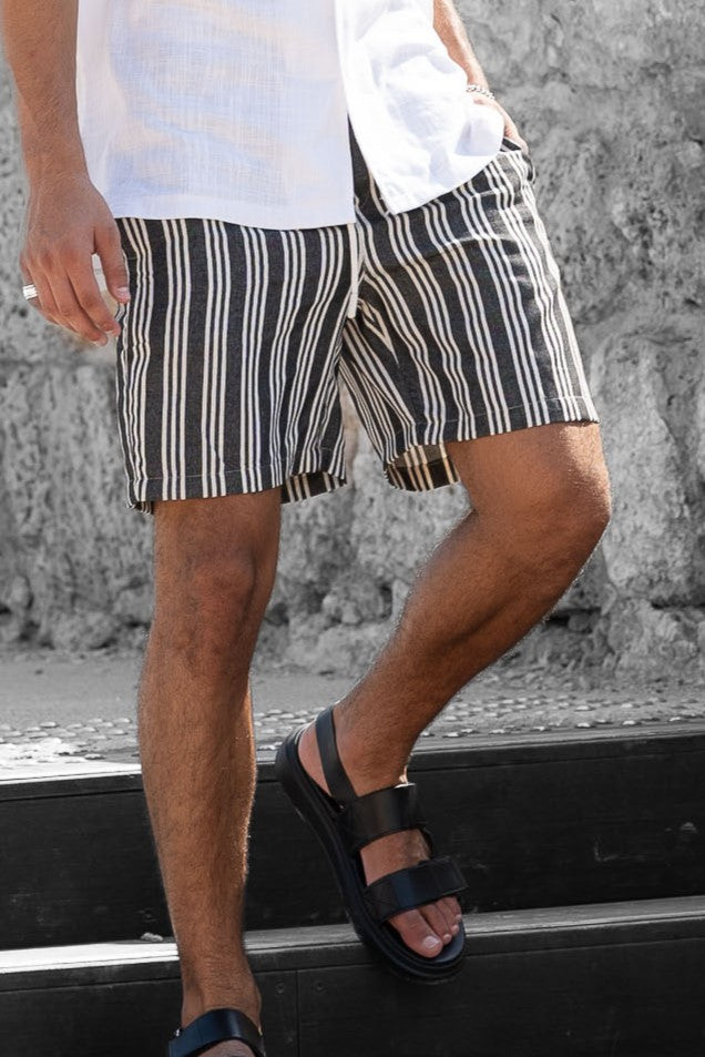 מכנס קצר עם הדפס פסים אופנתי עם שרוך מתכוונן למתן התאמה מושלמת.
