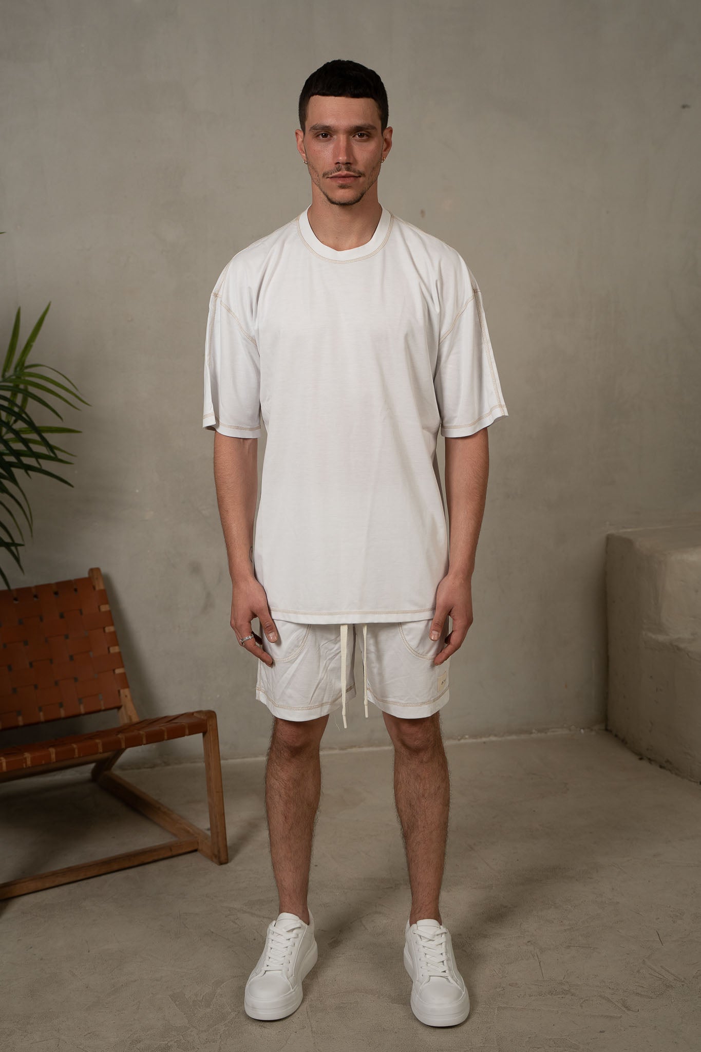 עם תפרים בצבע בז׳ שמוסיפים נגיעה של עיצוב ייחודי ומבליטים את הקווים של החולצה ,