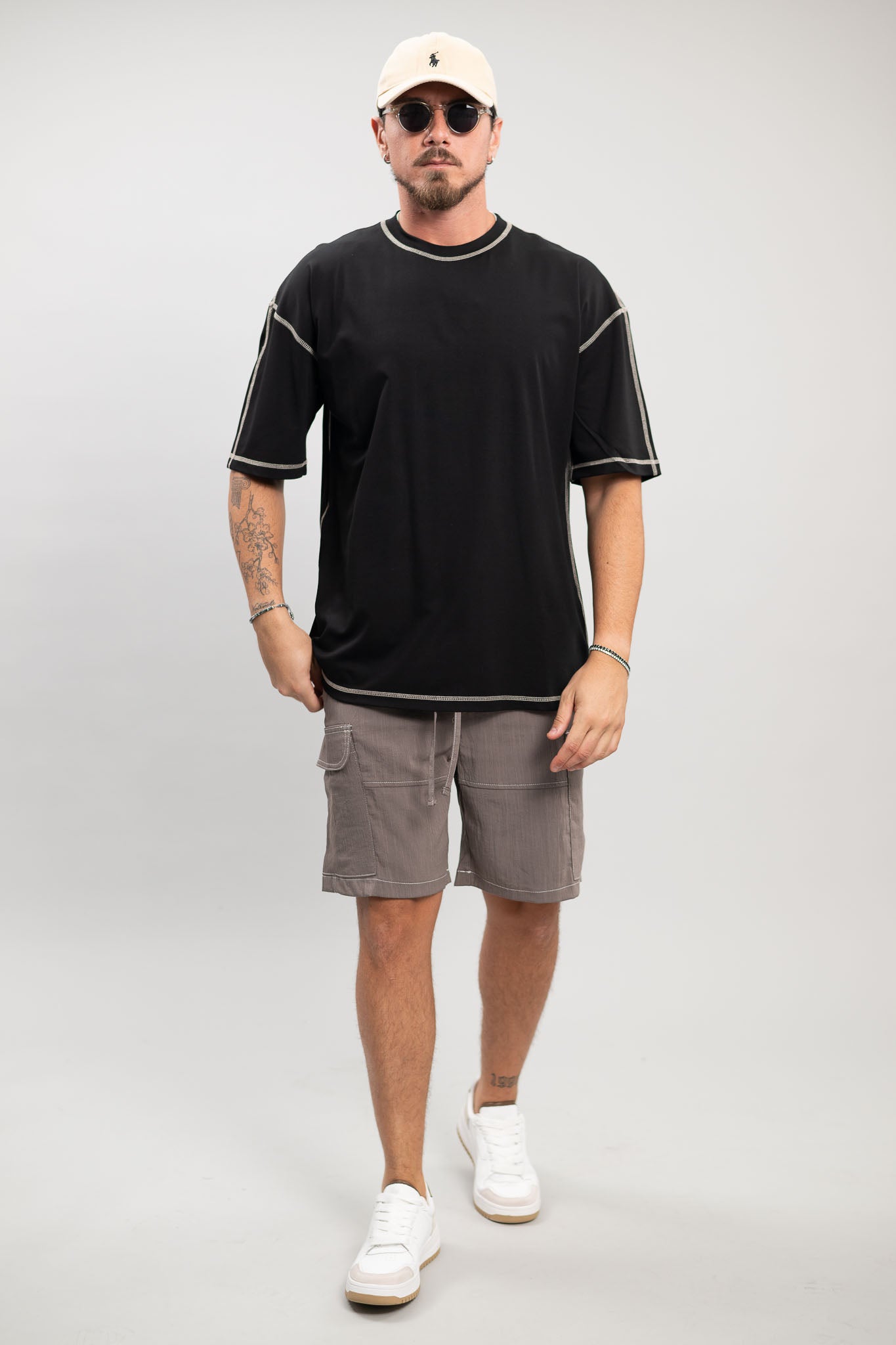 עם תפרים בצבע בז׳ שמוסיפים נגיעה של עיצוב ייחודי ומבליטים את הקווים של החולצה ,