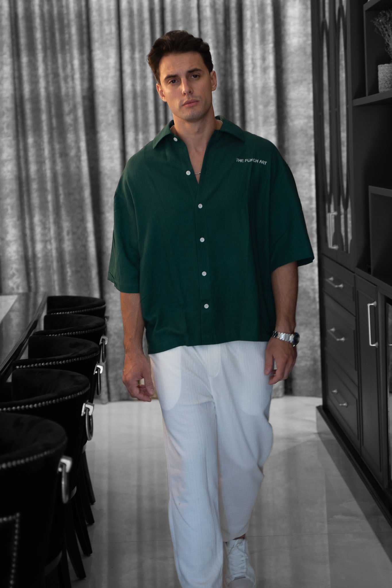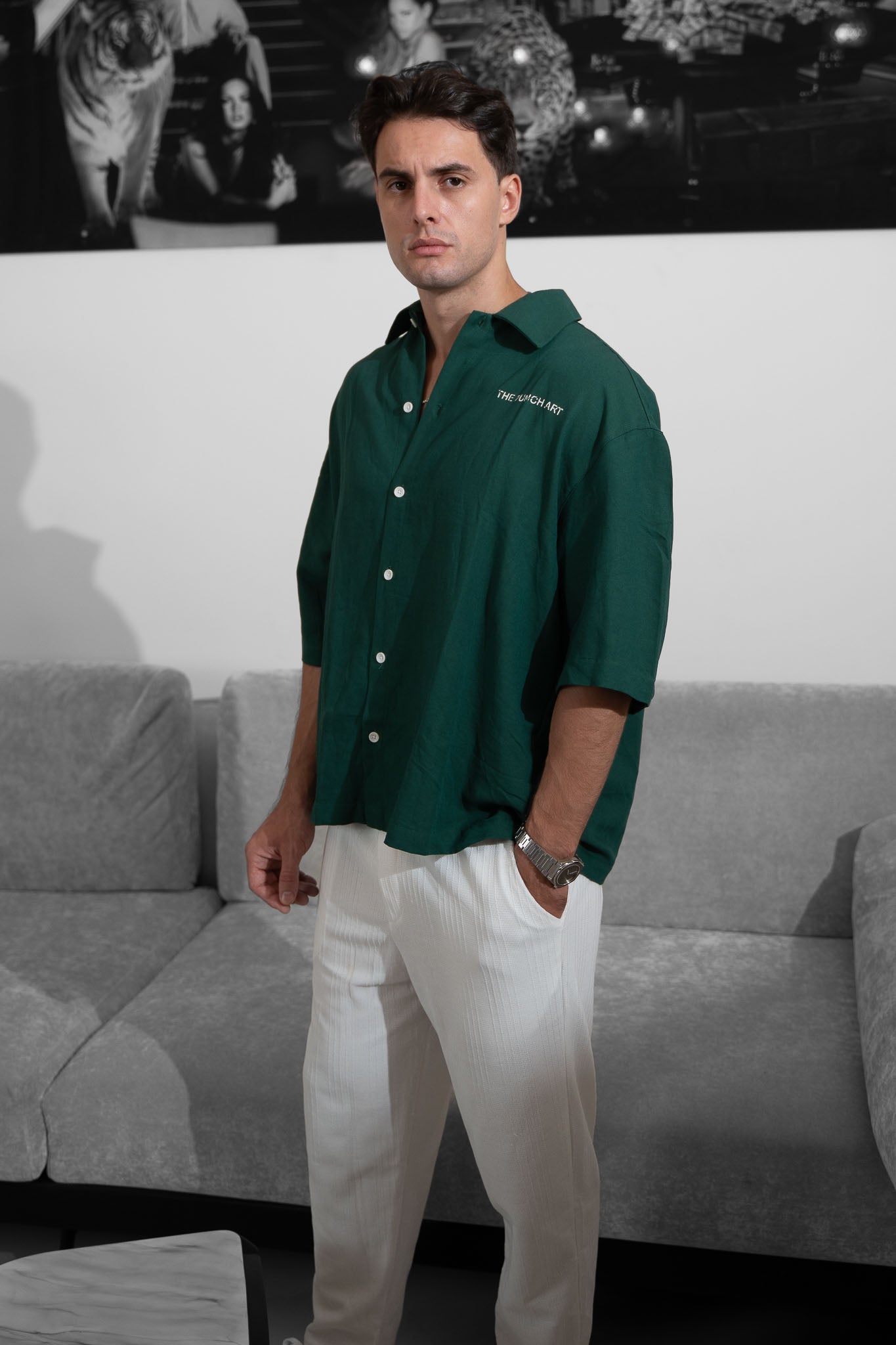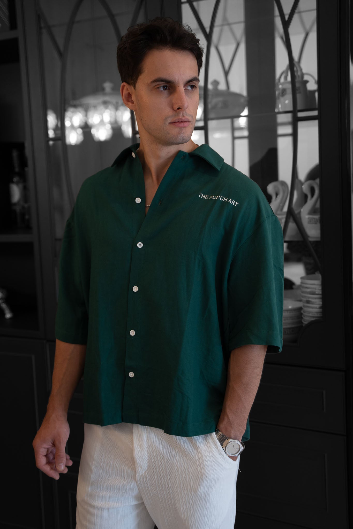 מכופתרת קצרה אוברסייז - The Pucnch Art (ירוק בקבוק)