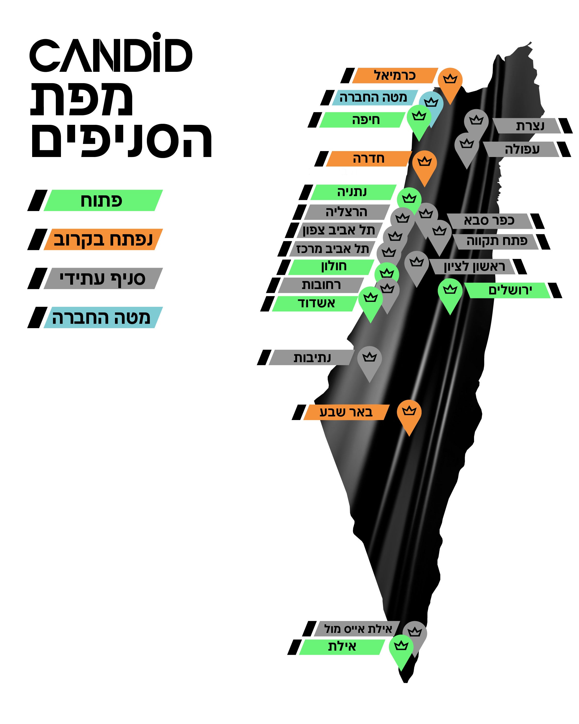 CANDID הוא מותג ישראלי ויחיד מסוגו המונה מספר סניפים בפריסה ארצית, אתר מכירות מצליח ועוד מספר סניפים בהקמה בימים אלו.