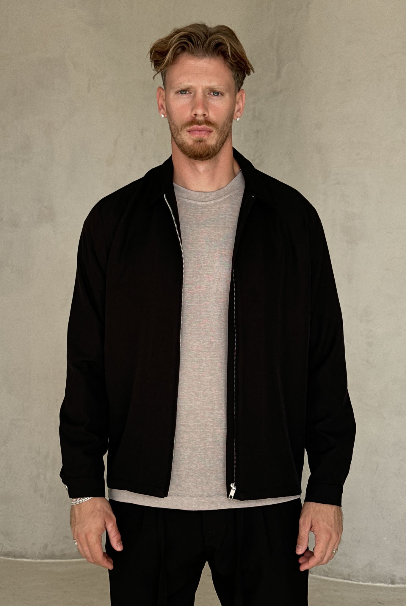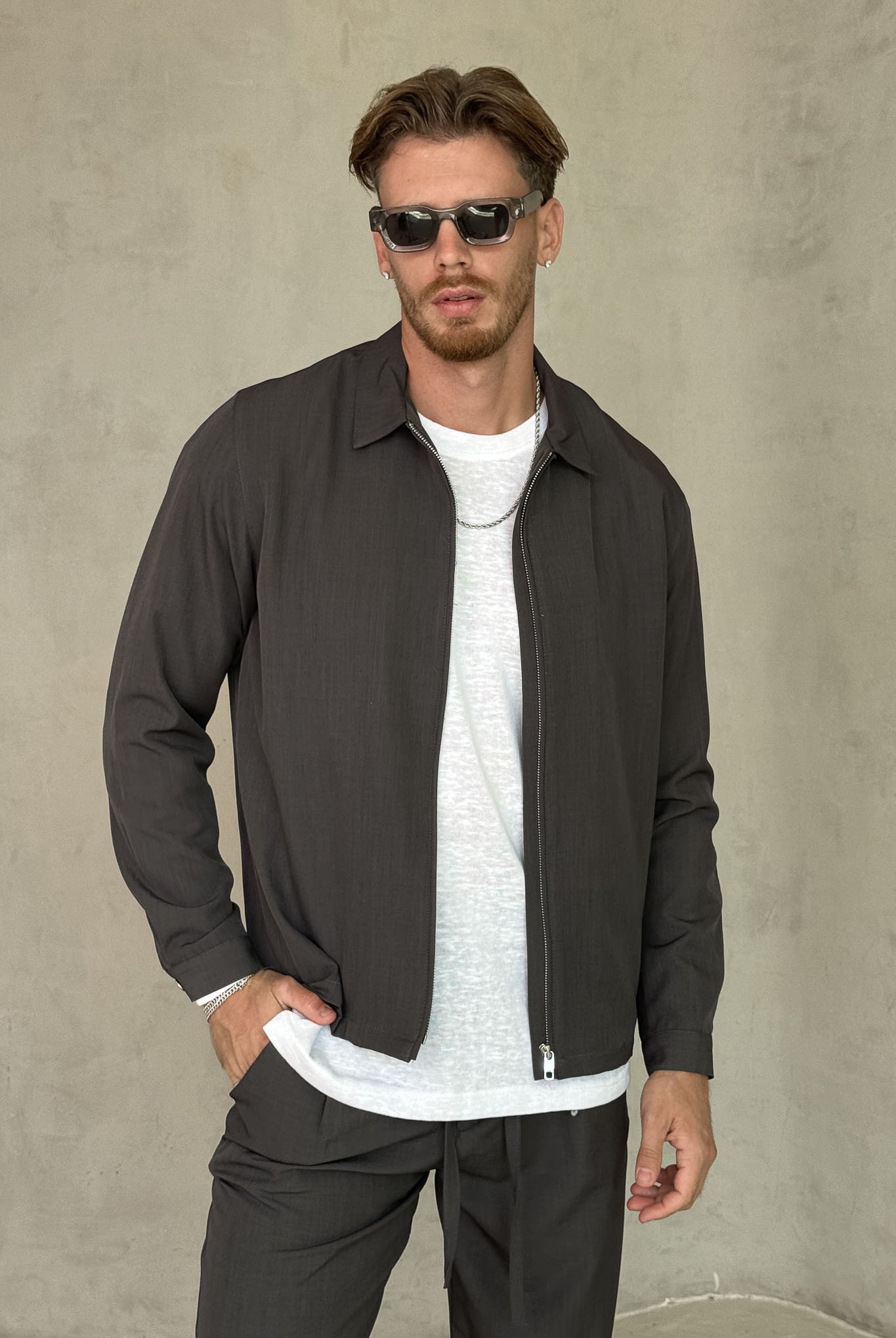 עליונית אלגנטית עם רוכסן מלא, עיצוב מינימליסטי ובד נעים למגע.
