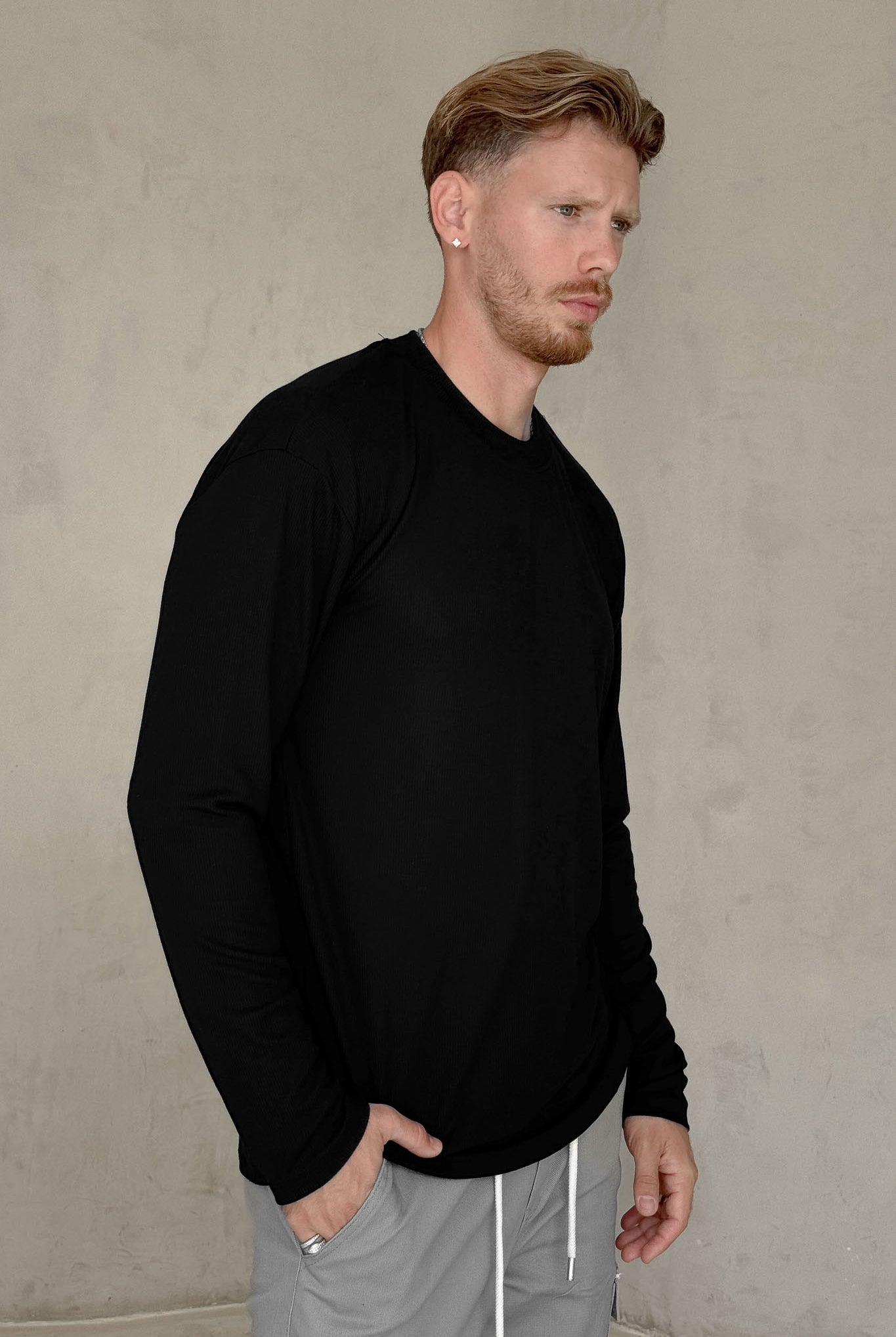 הדוגמן בגובה 1.87, משקל 84, לובש מידה L (גזרה רגילה ונעימה על הגוף).