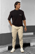טי שרט בגזרת oversize עם טוויסט מיוחד מלפנים של הטישרט שמוסיף אלמנט של סטייל ועיצוב ייחודי ,