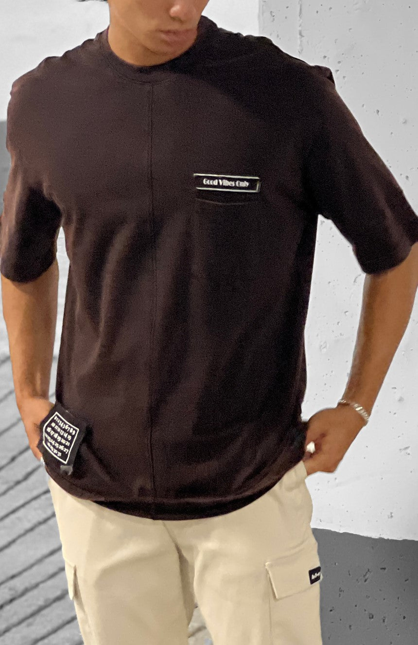 חולצה בגזרת אוברסייז - Good Vibe (שחור-בורדו)