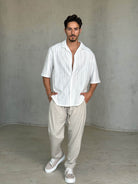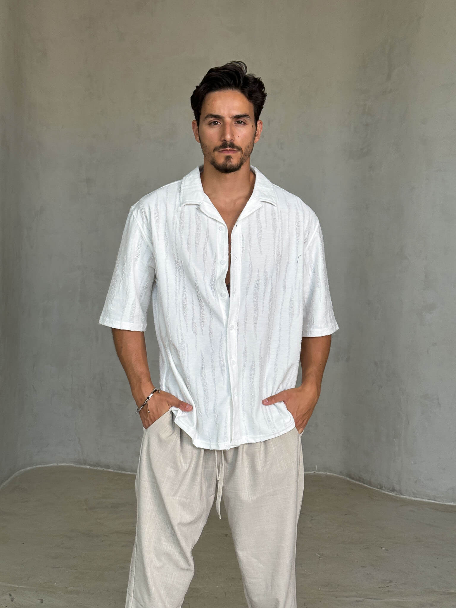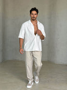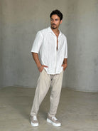 חולצת מכופתרת קצרה בגזרת סופר אוברסייז – משוחררת, נושמת ועם לוק מדויק.