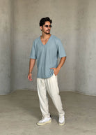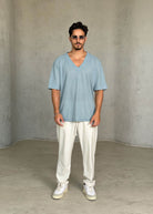 חולצה קצרה אוברסייז - Tate (תכלת)