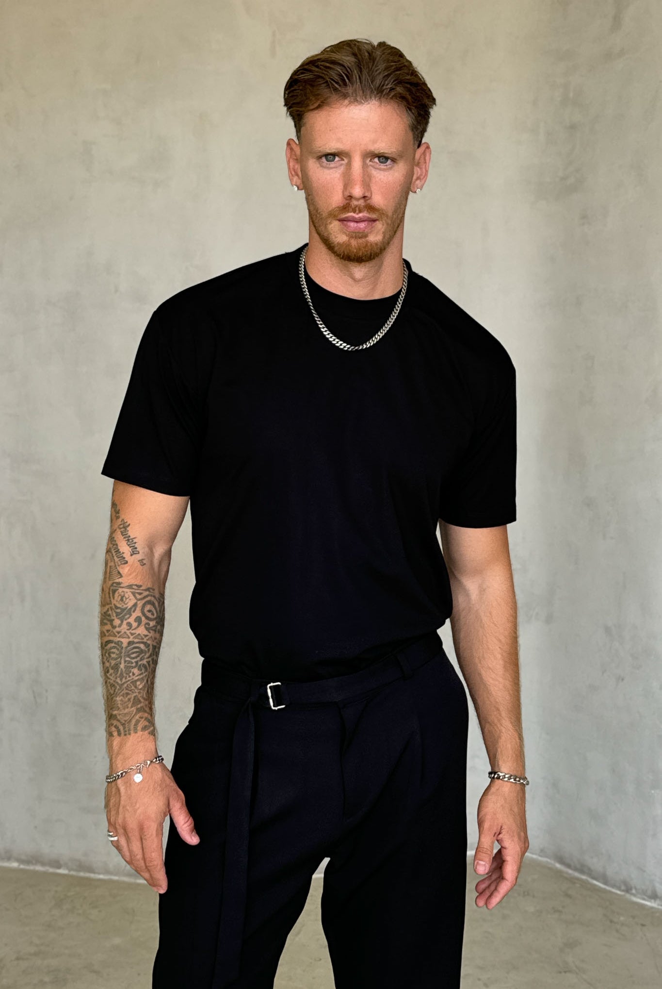 חולצת בייסיק קלאסית מבד נעים ורך שנצמד לגוף בצורה מושלמת. מתאימה לכל מראה יומיומי – מהליכה בעיר ועד ערב רגוע. הגזרה הפשוטה והנקייה מאפשרת שילוב קל עם כל פריט בארון, והיא חובה לכל מי שאוהב לוק מינימליסטי אך מלא סטייל.
